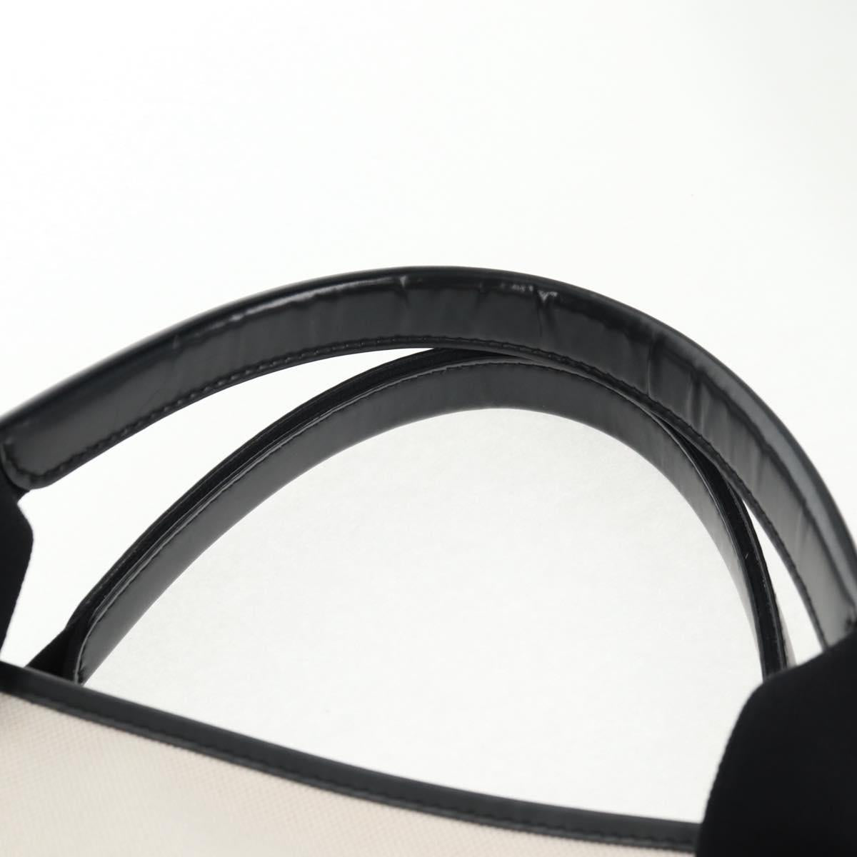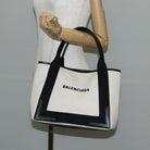 BALENCIAGA Navy Cabas S Bag Canvas Leather White Black 339933 Auth BA6186M