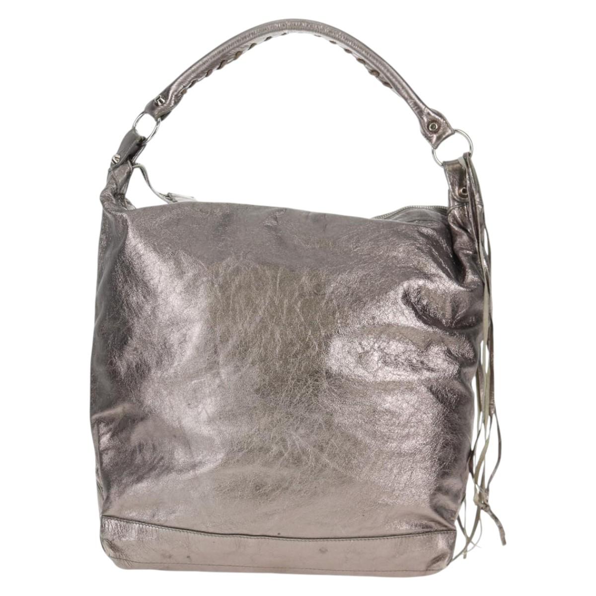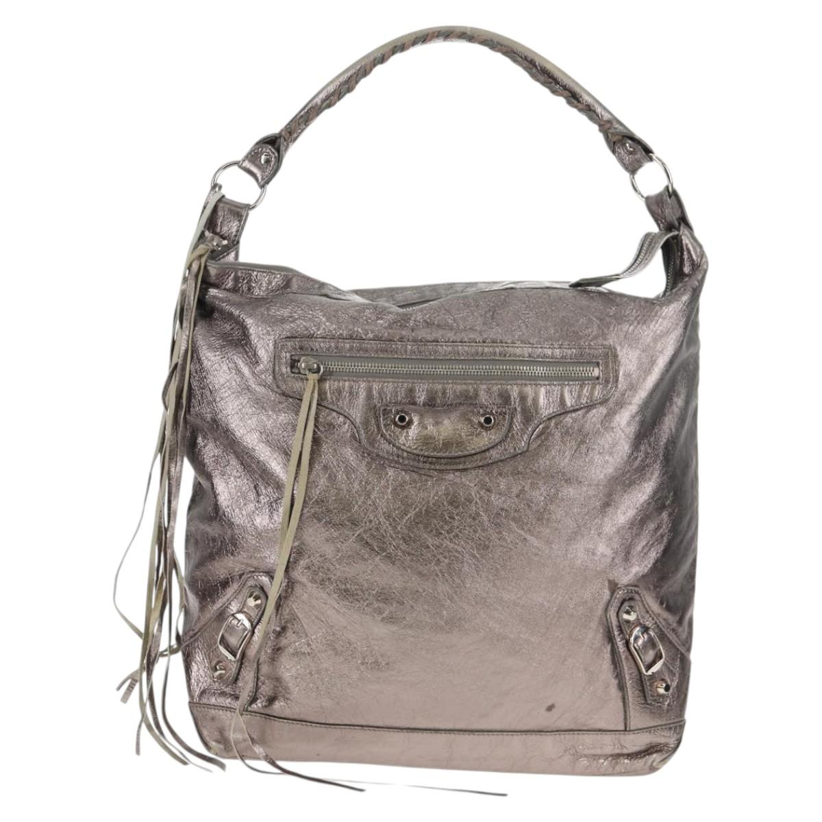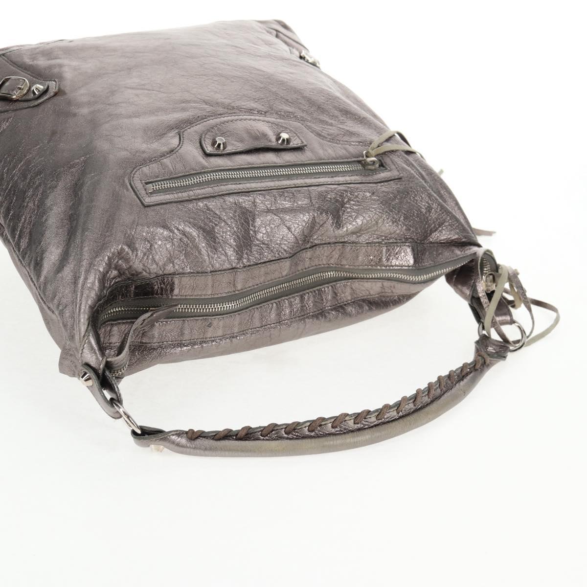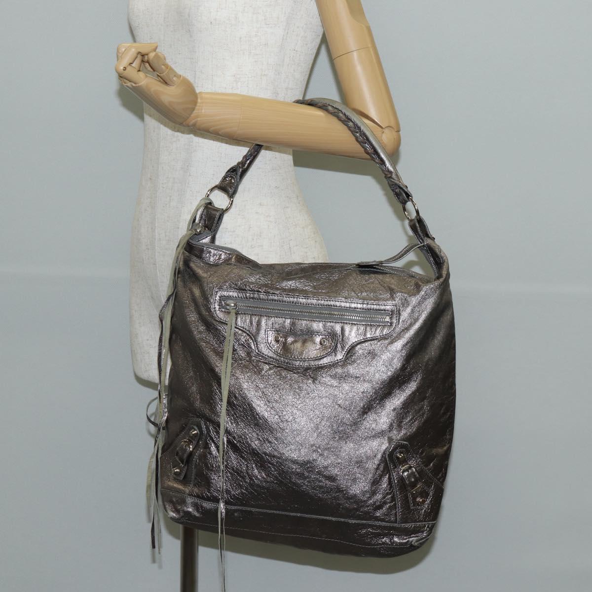 BALENCIAGA The Day Shoulder Bag Leather Silver 140442 Auth 143787V