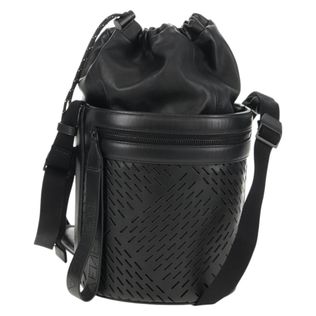BOTTEGA VENETA Bucket Shoulder Bag Punching leather Black Auth BA6816M