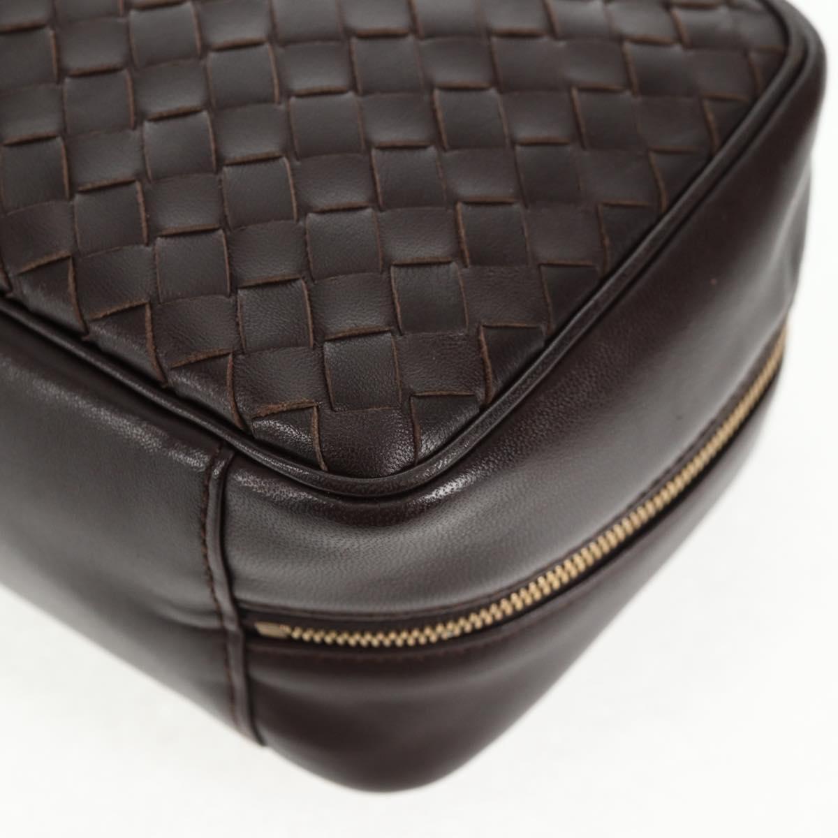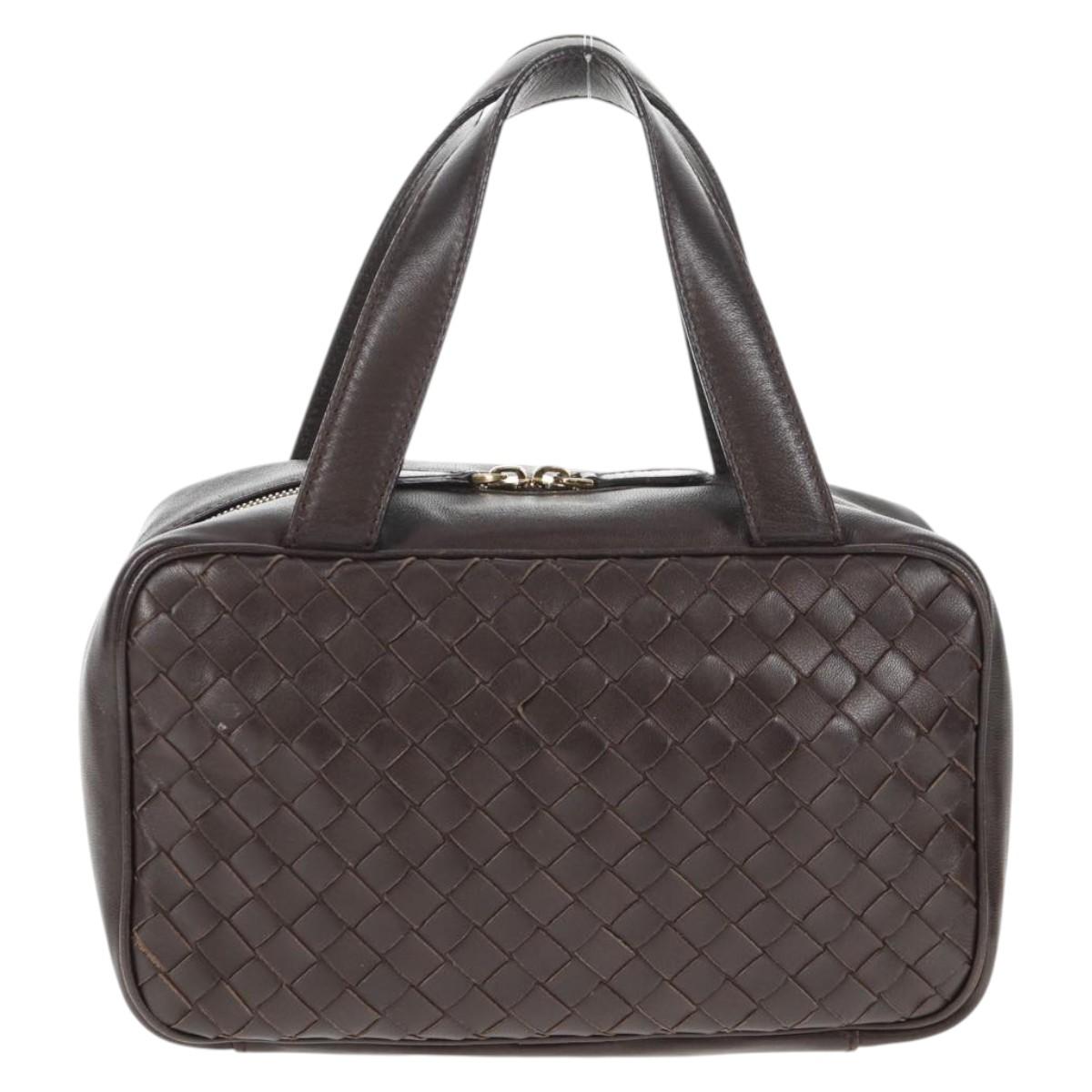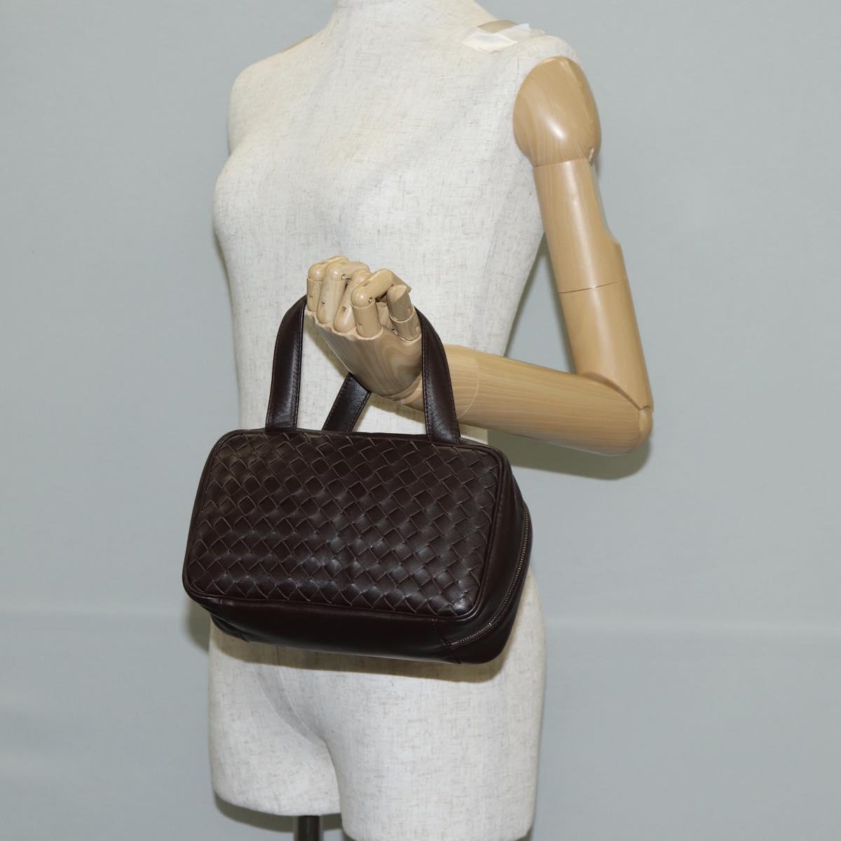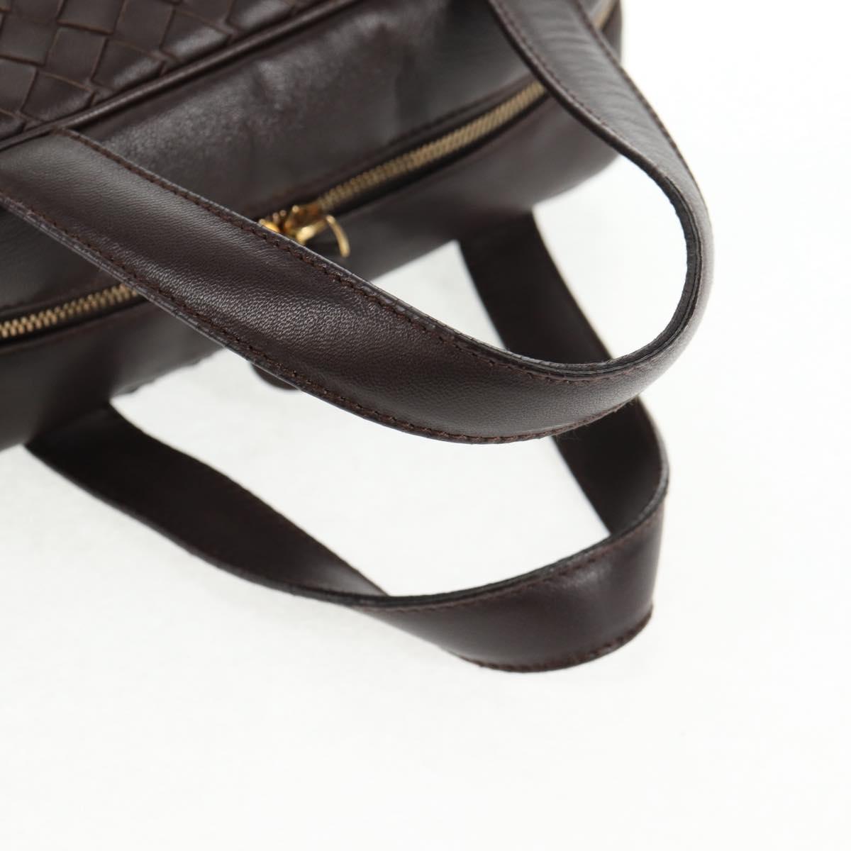 BOTTEGA VENETA INTRECCIATO Hand Bag Leather Dark Brown Gold Auth 144444V