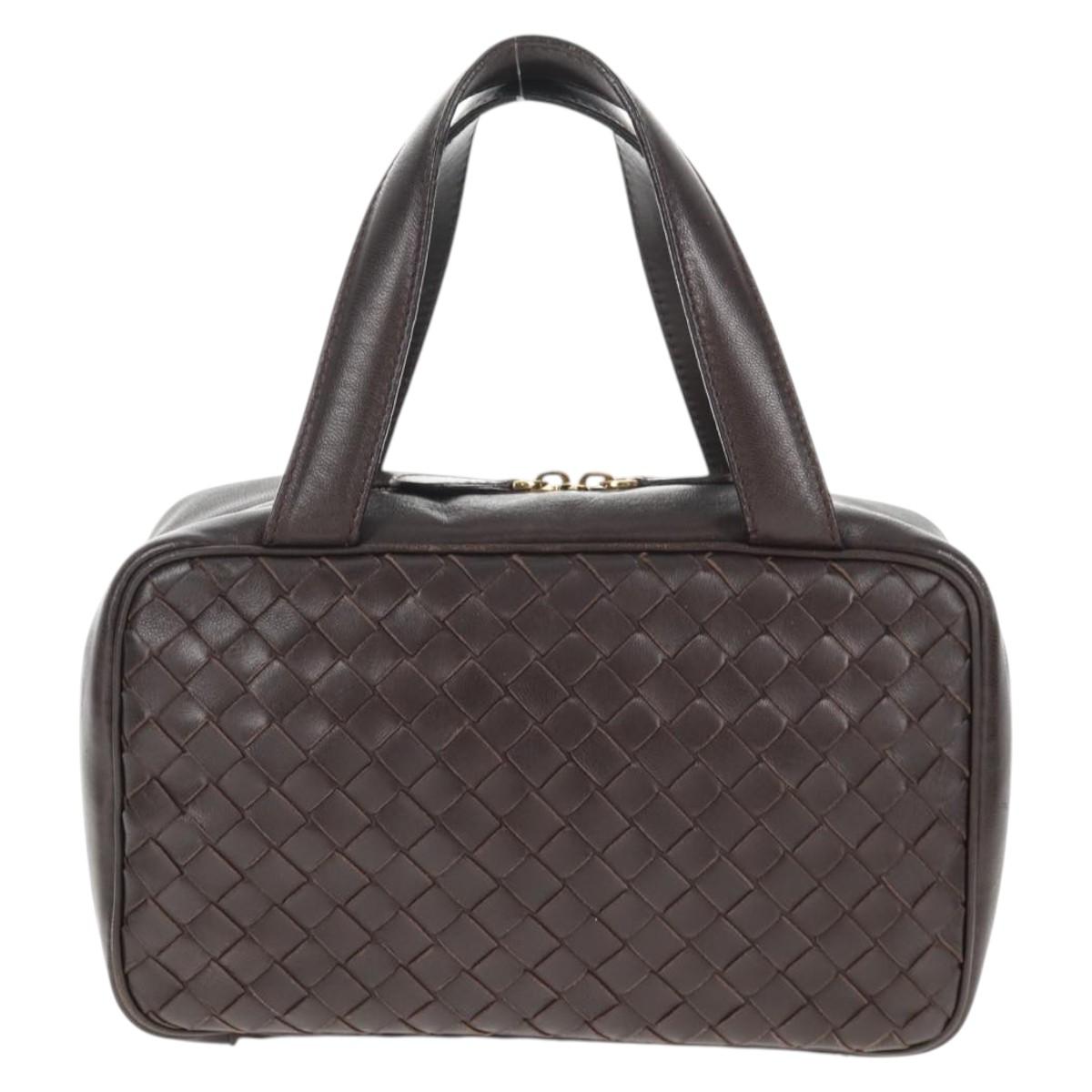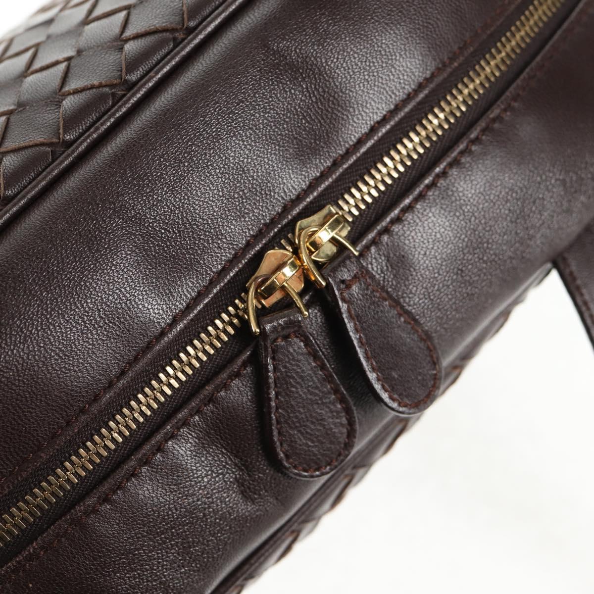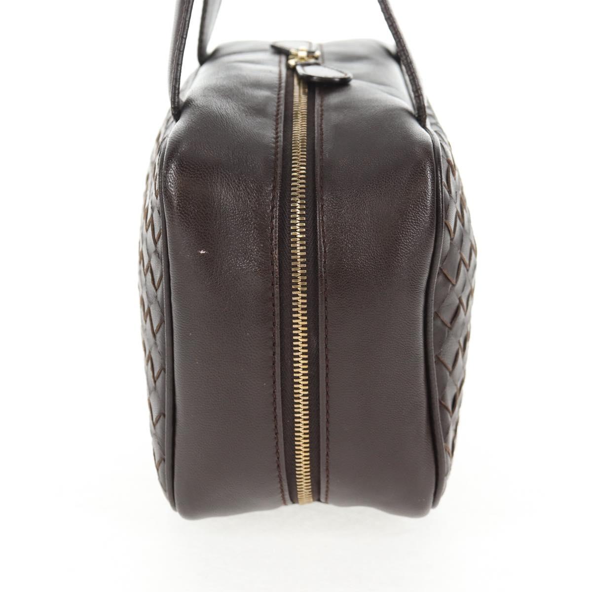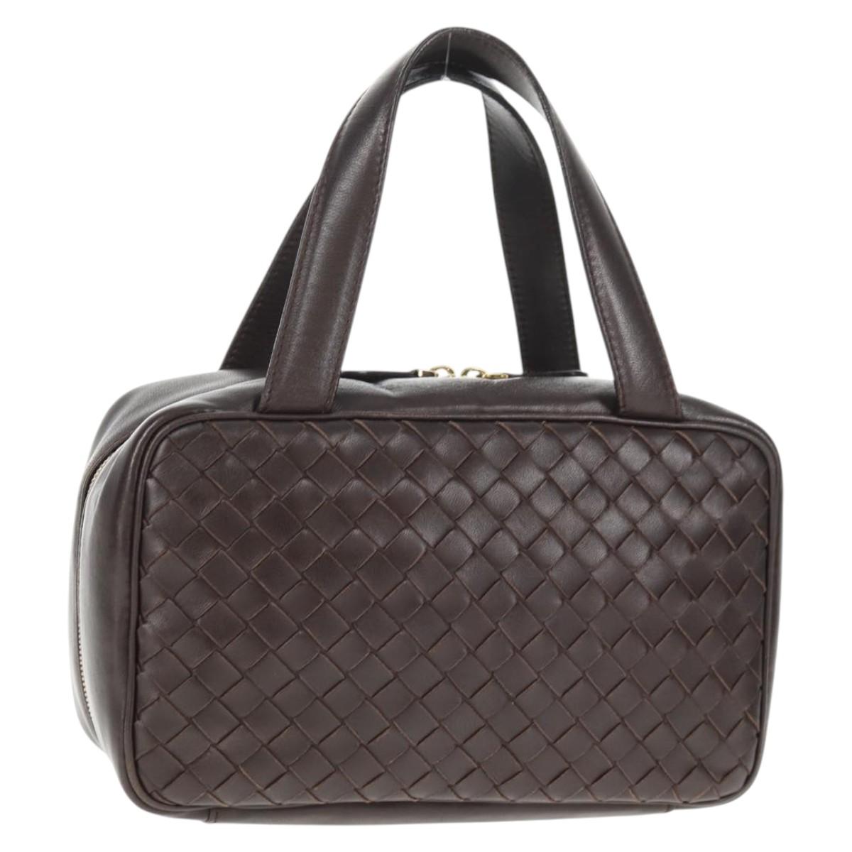 BOTTEGA VENETA INTRECCIATO Hand Bag Leather Dark Brown Gold Auth 144444V