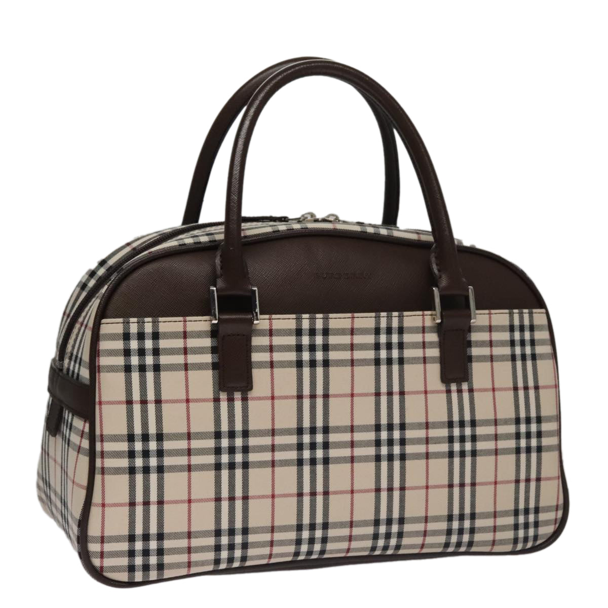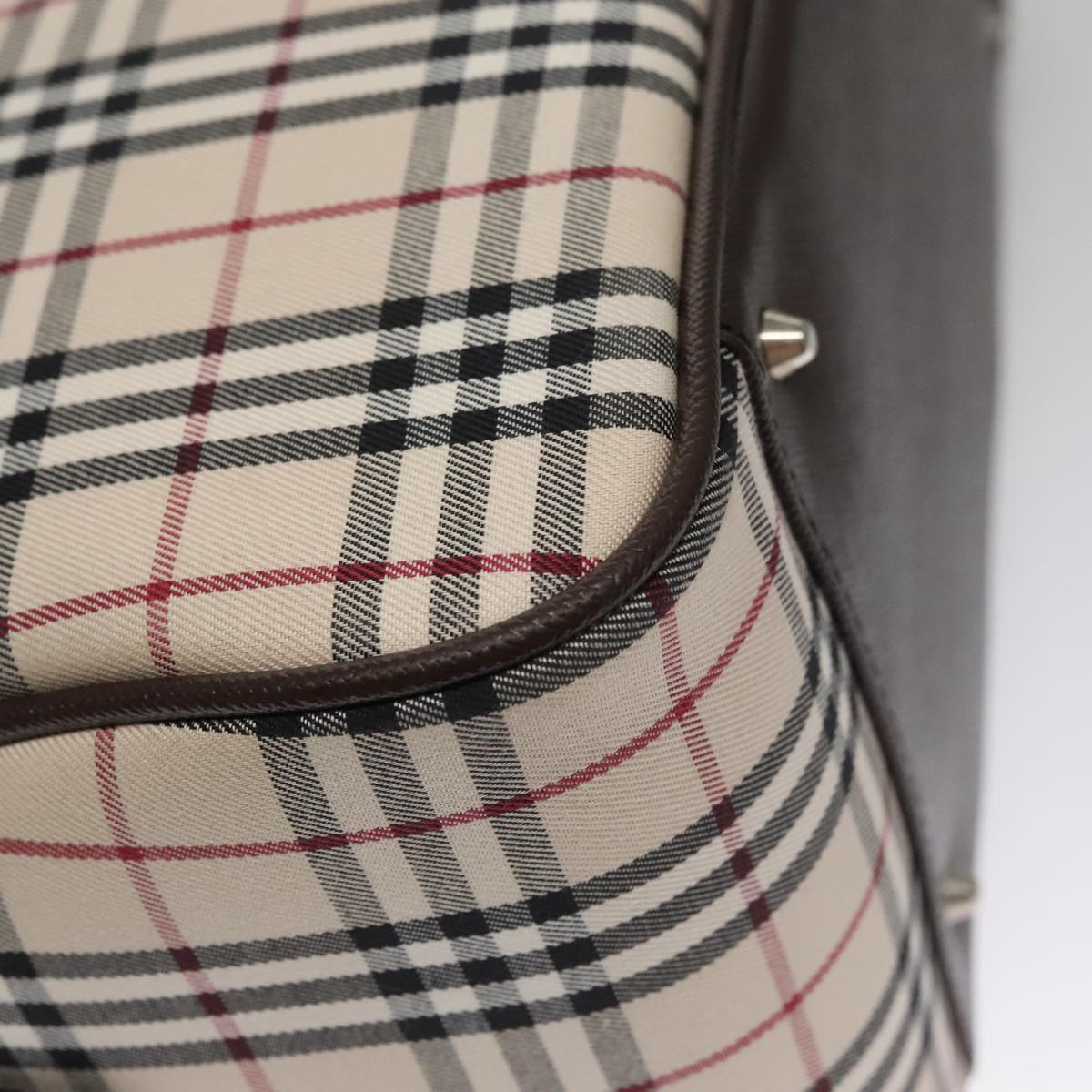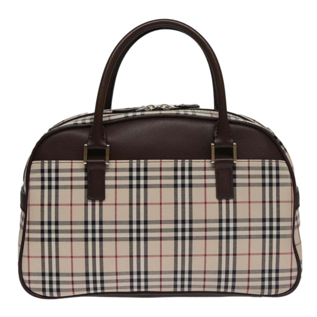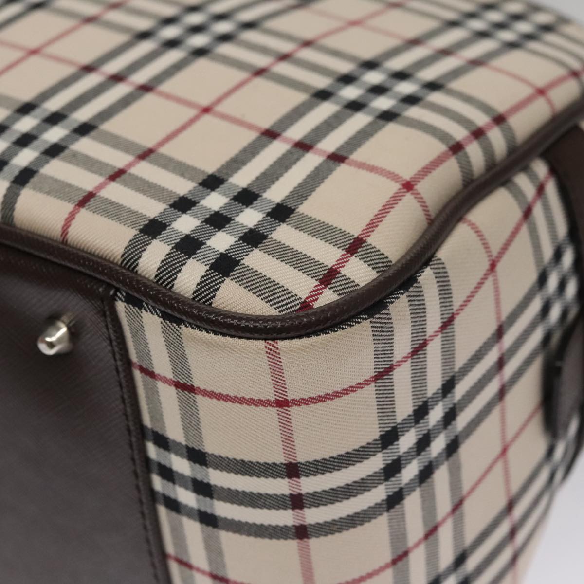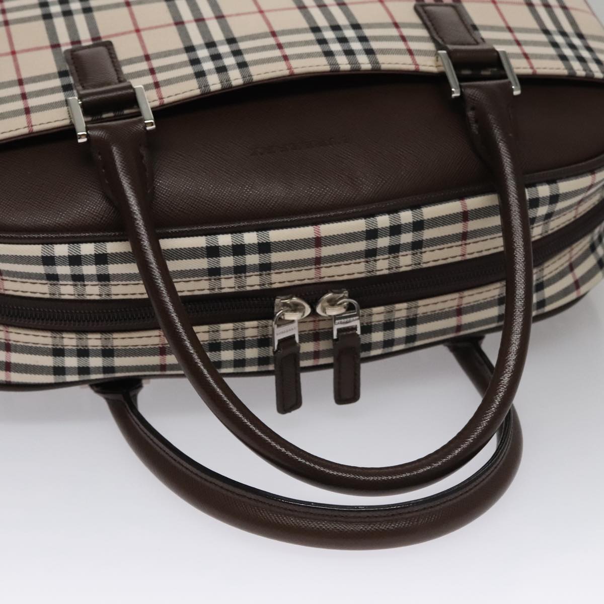BURBERRY Nova Check Hand Bag Canvas Beige Silver Auth FF4243V