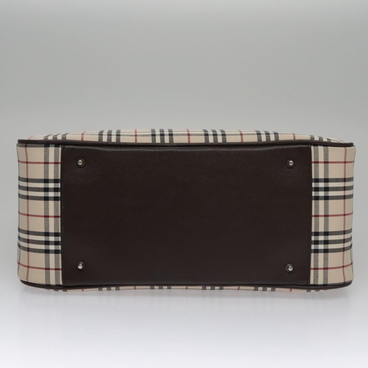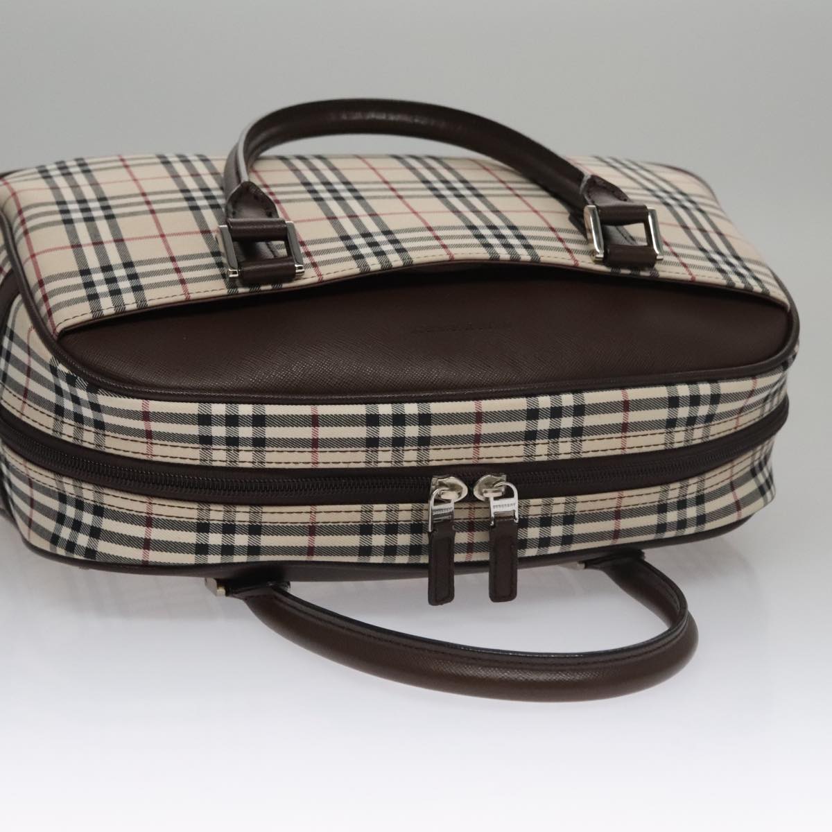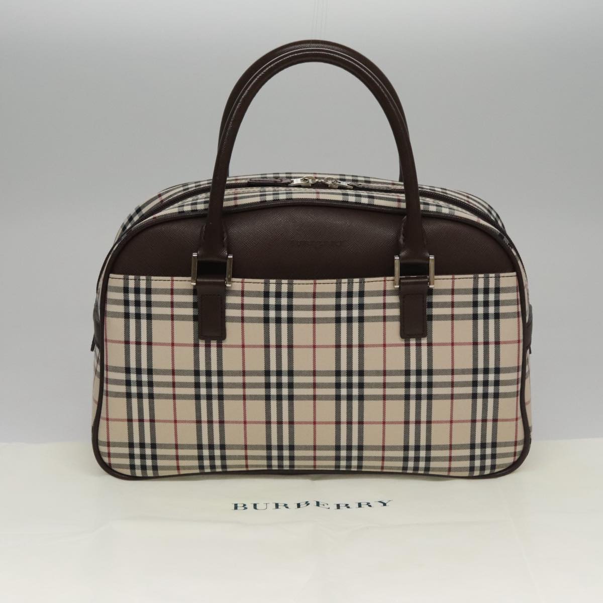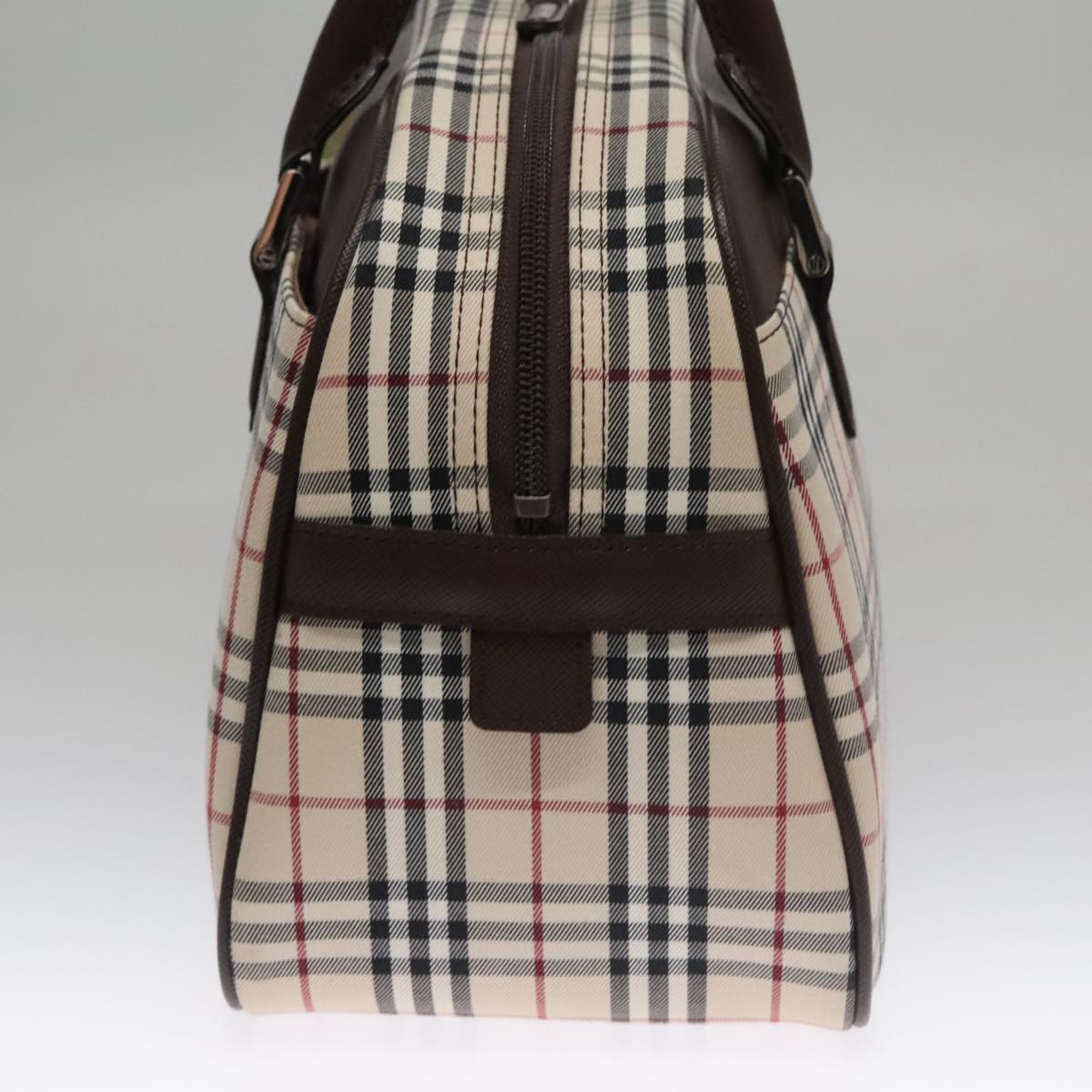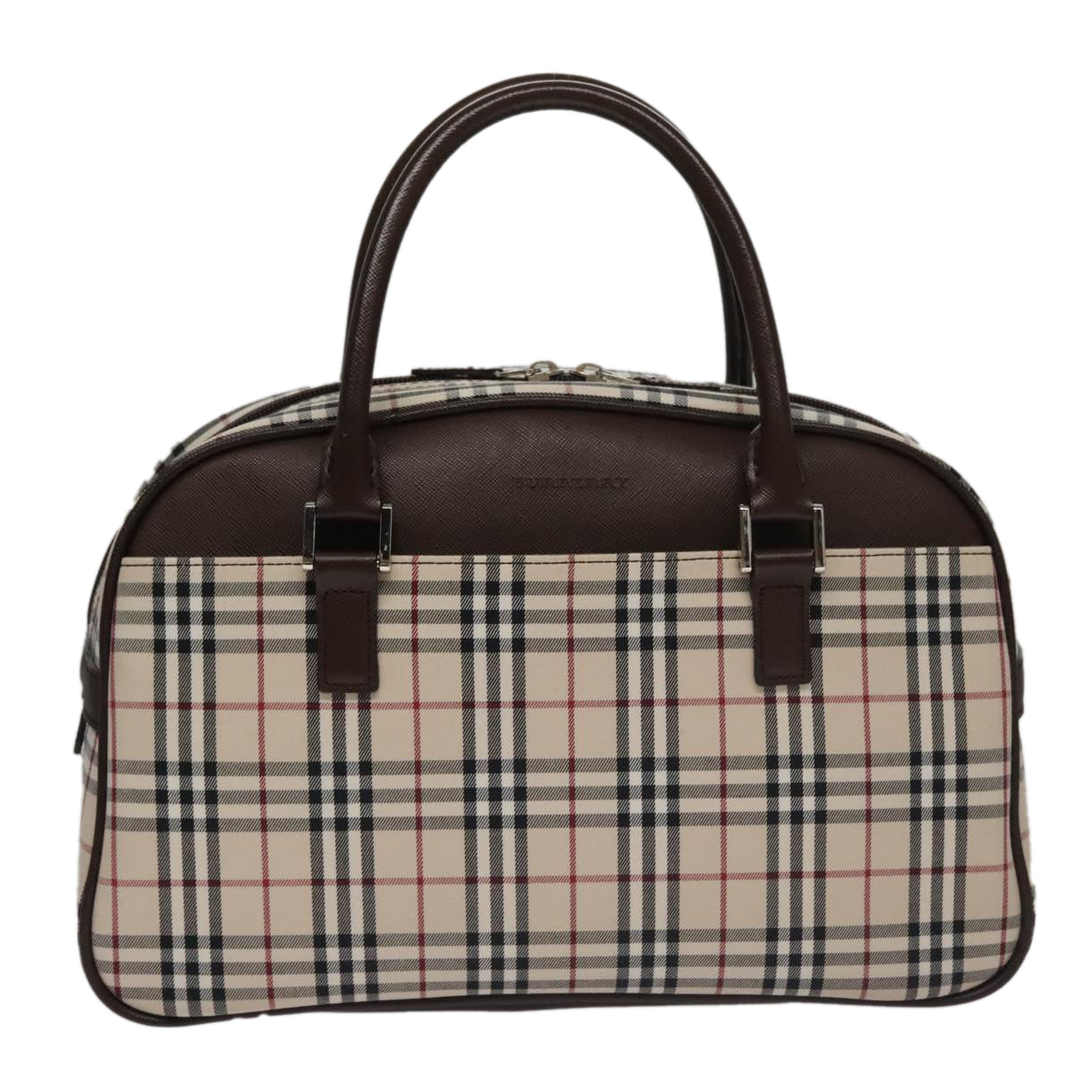 BURBERRY Nova Check Hand Bag Canvas Beige Silver Auth FF4243V