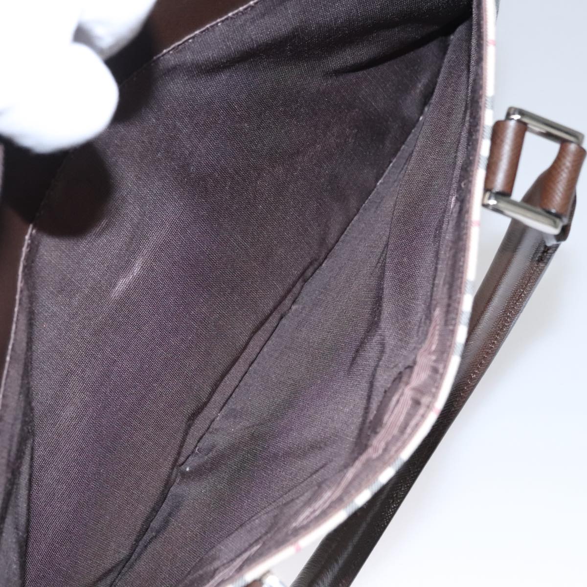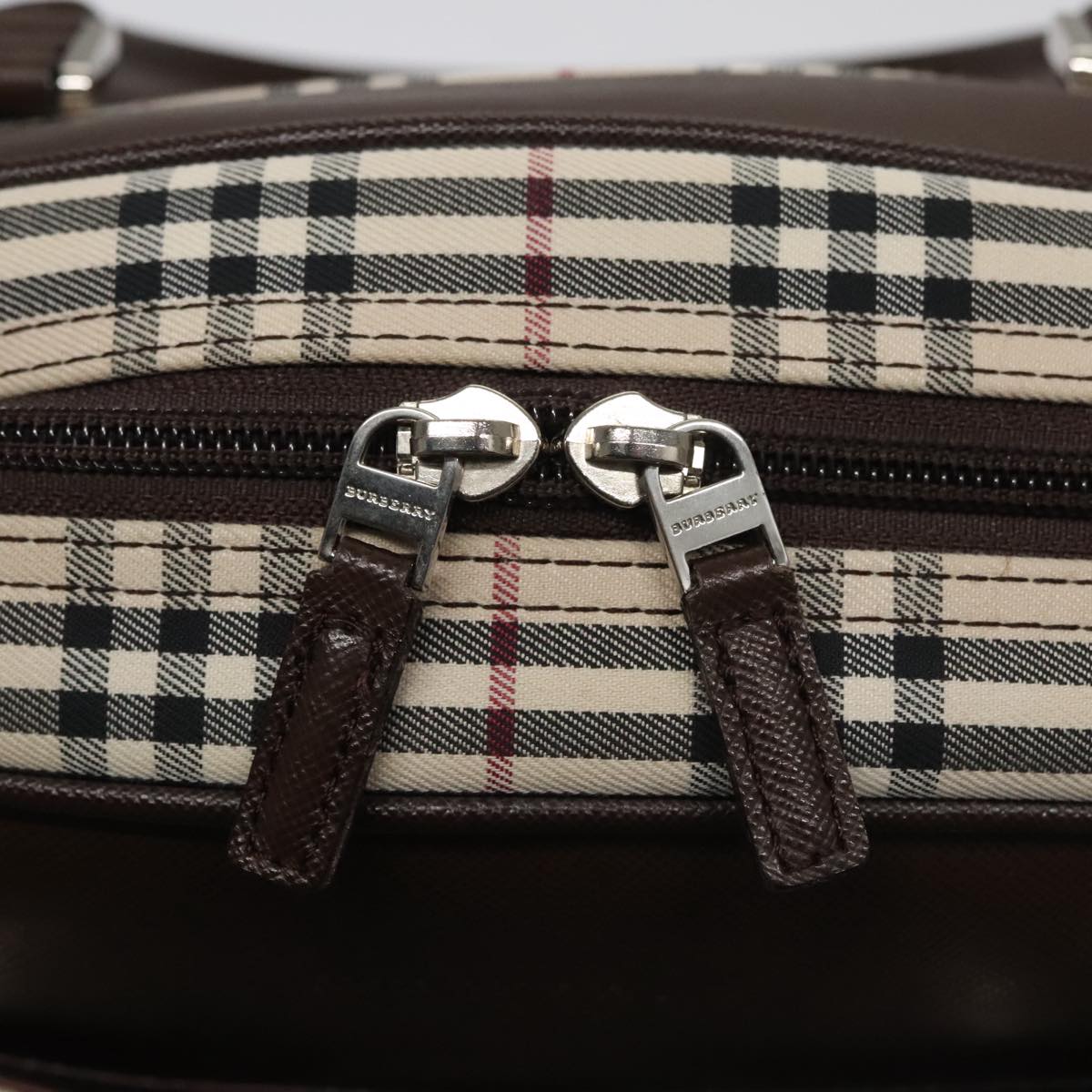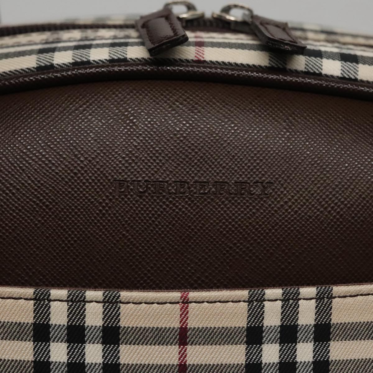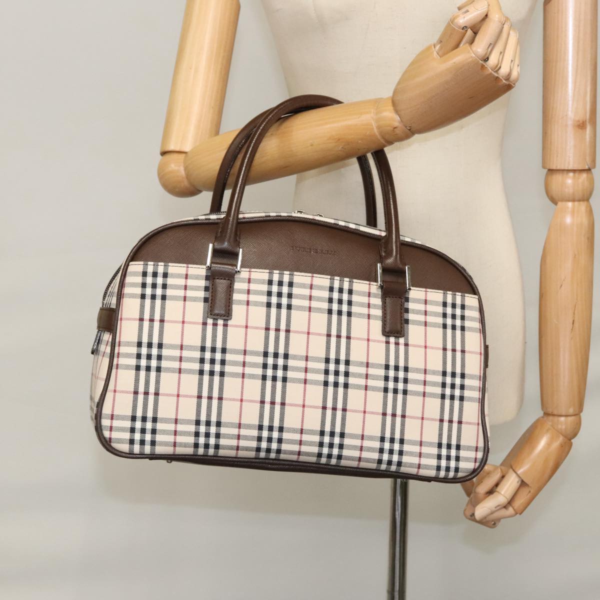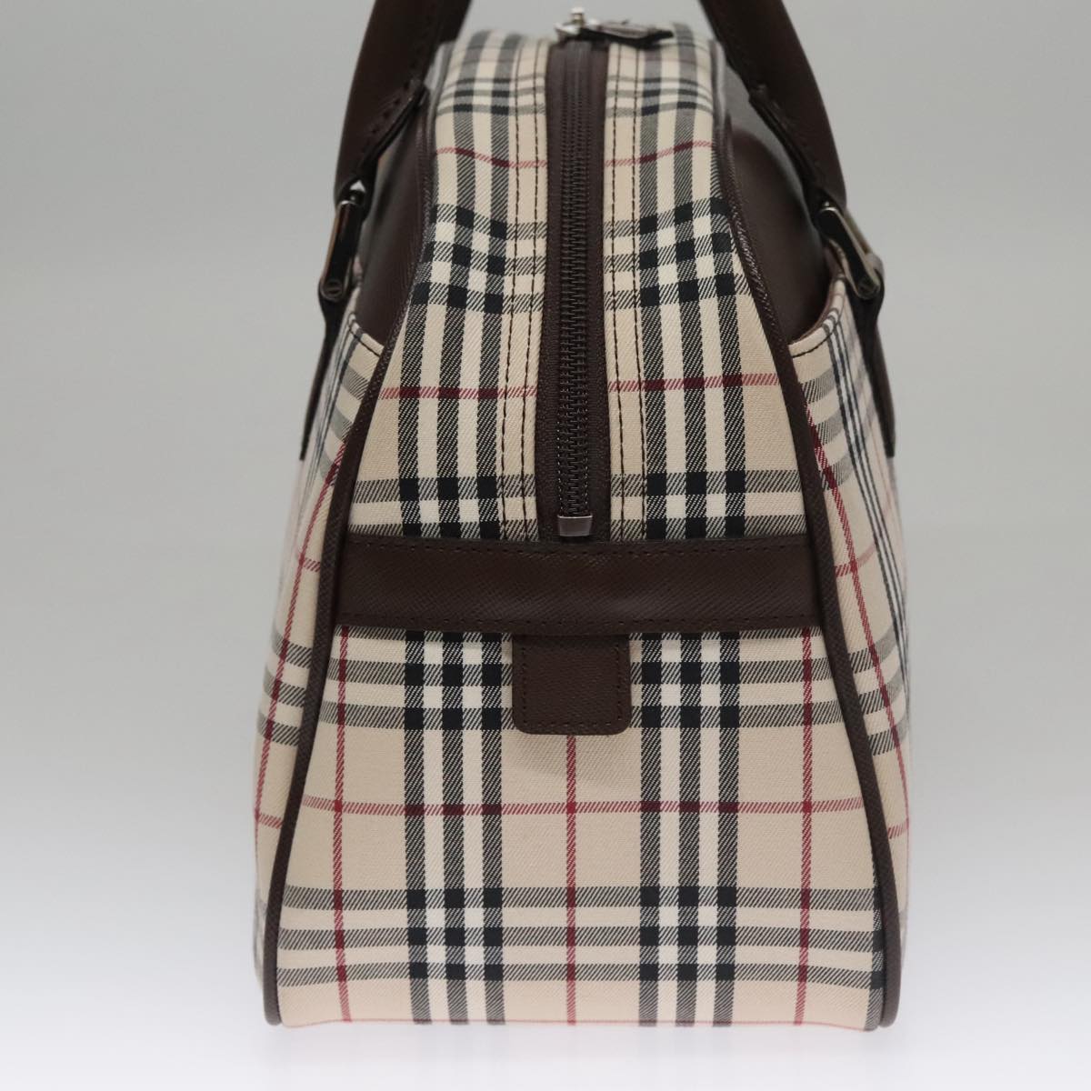 BURBERRY Nova Check Hand Bag Canvas Beige Silver Auth FF4243V