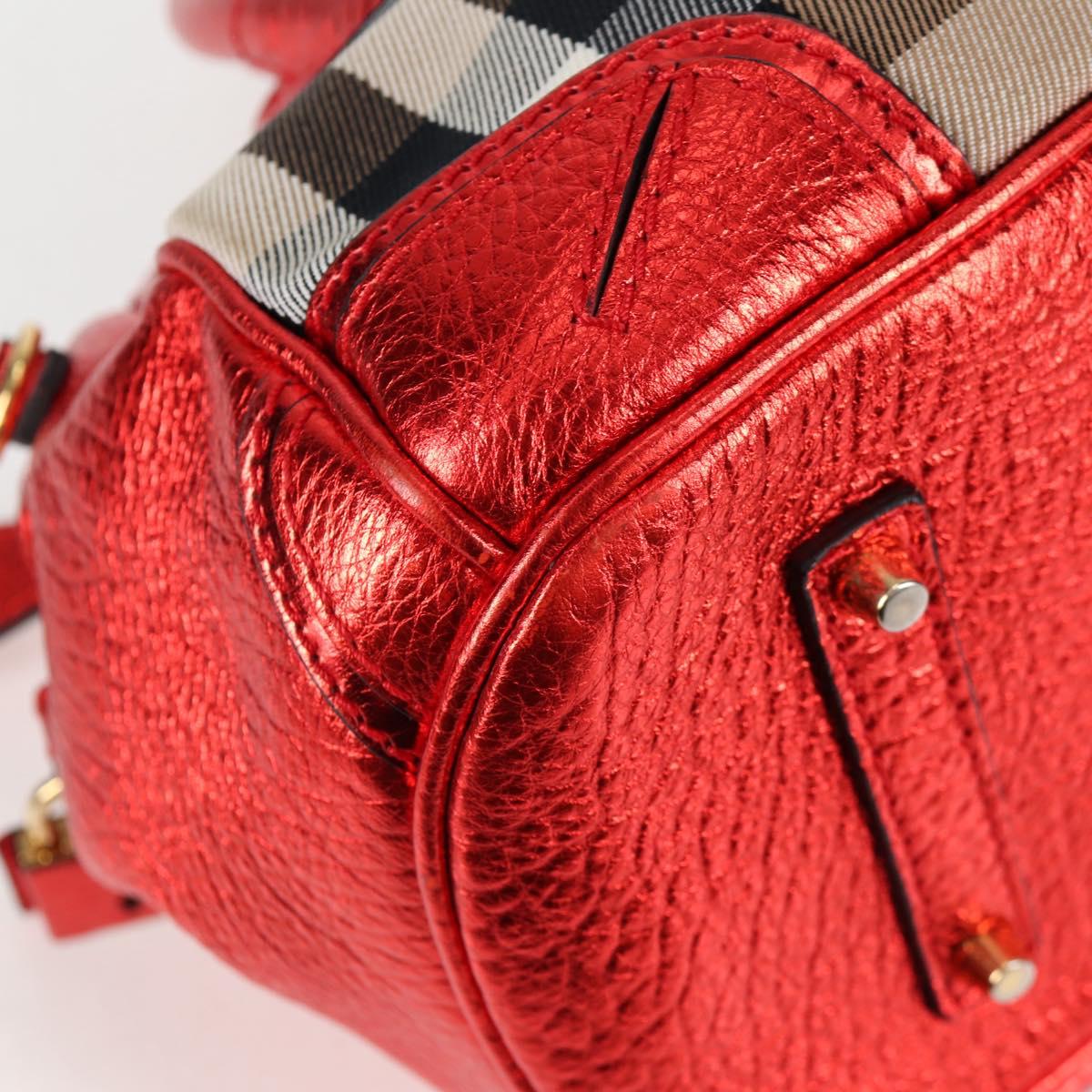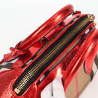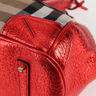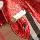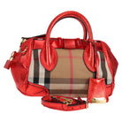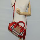 BURBERRY Nova Check Hand Bag Canvas Leather 2way Red Gold Auth 124837V