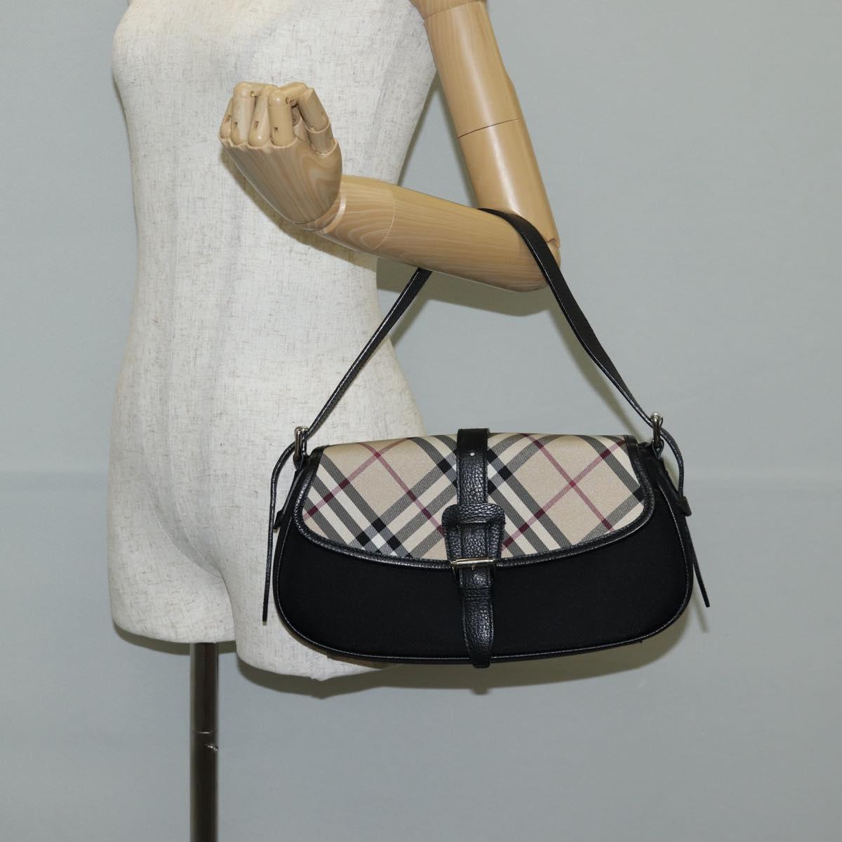 BURBERRY Nova Check Shoulder Bag Canvas Beige Silver Auth am8941V