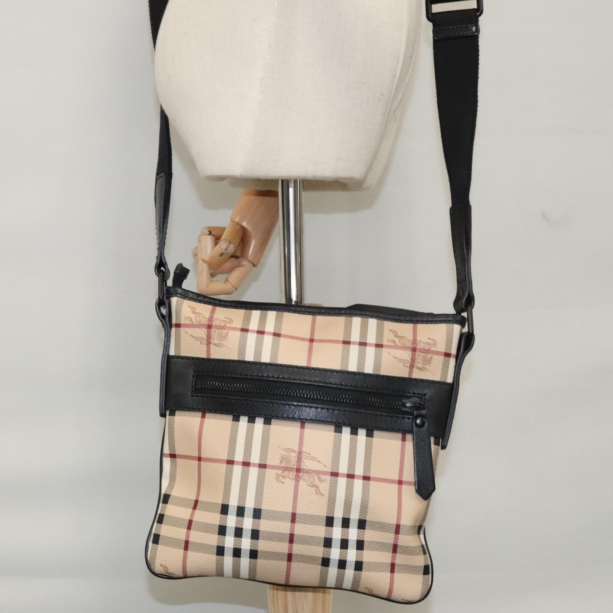 BURBERRY Nova Check Shoulder Bag PVC Leather Beige Auth FF4151V