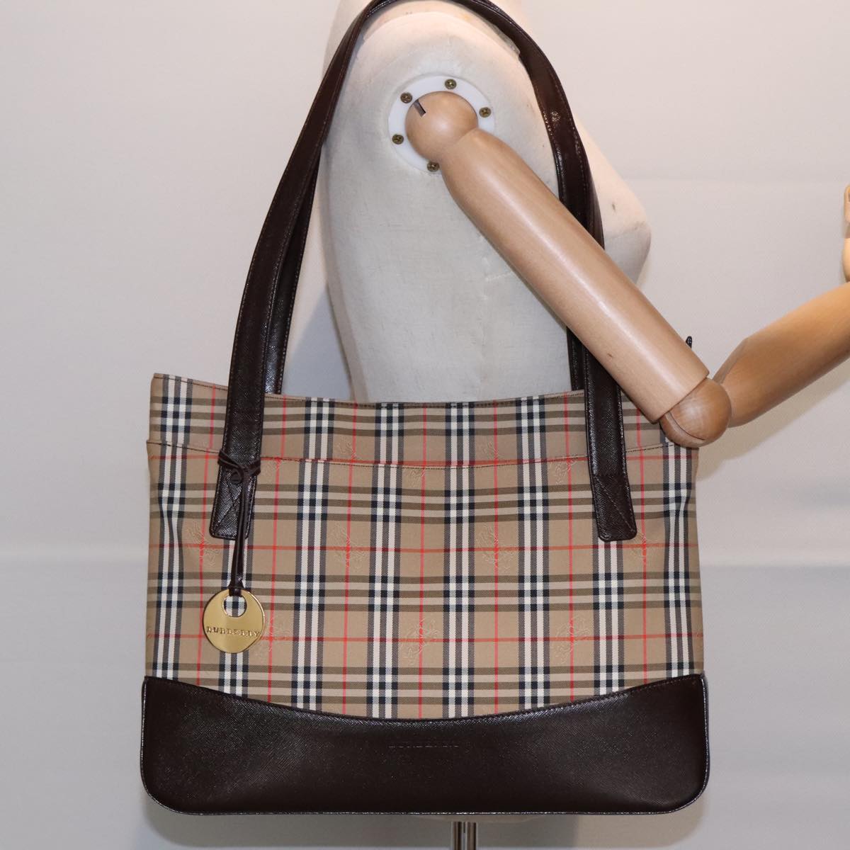 BURBERRY Nova Check Tote Bag Canvas Beige Auth am6828AV