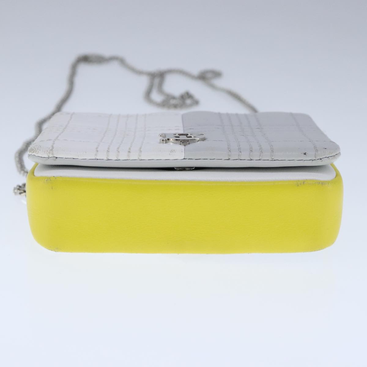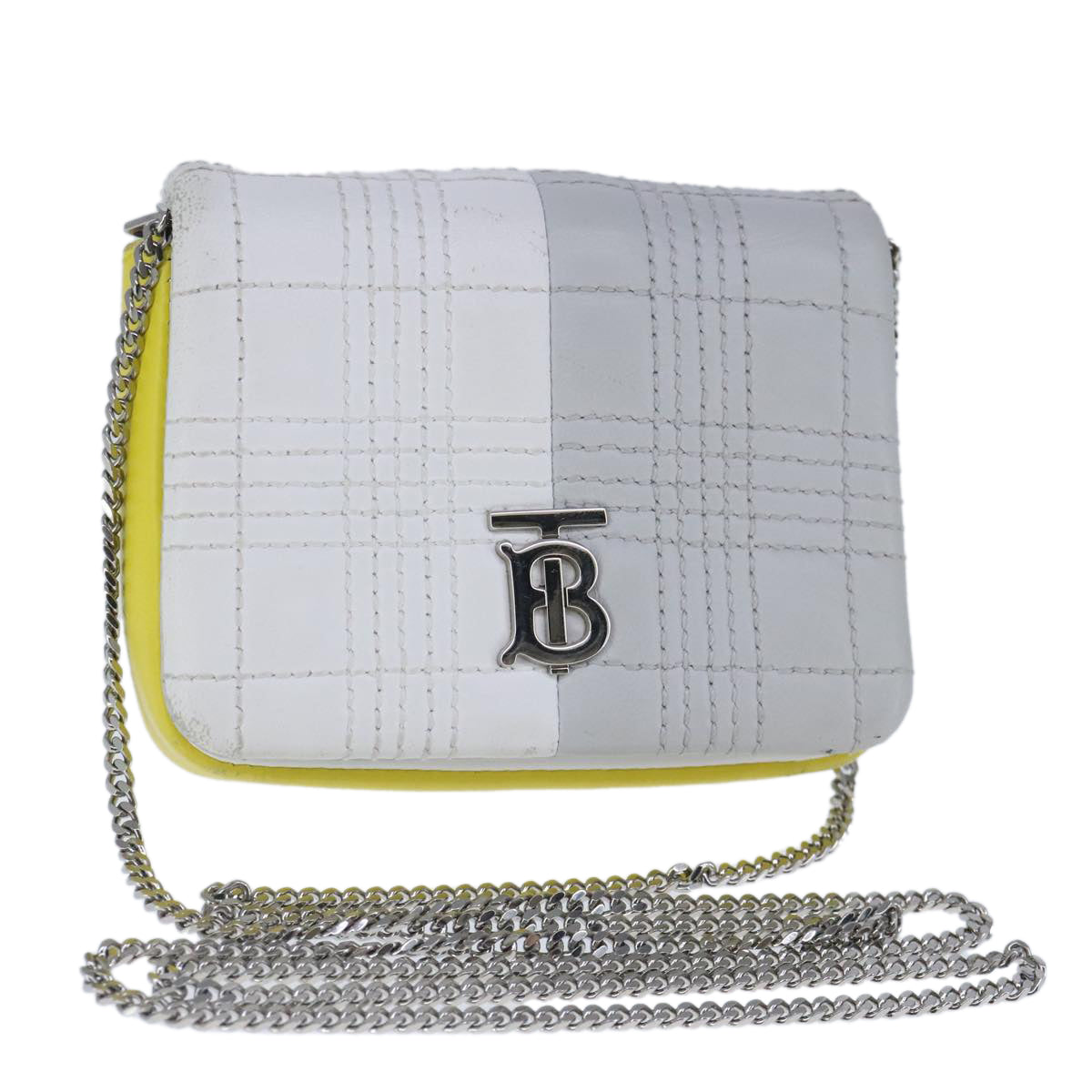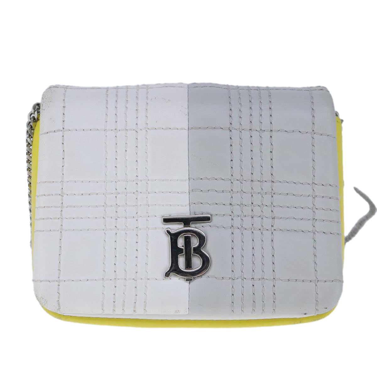 BURBERRY TB Chain Shoulder Bag Leather White Yellow Auth 102462V