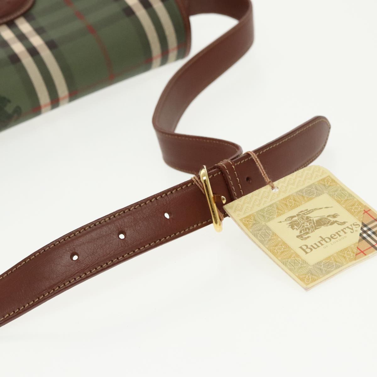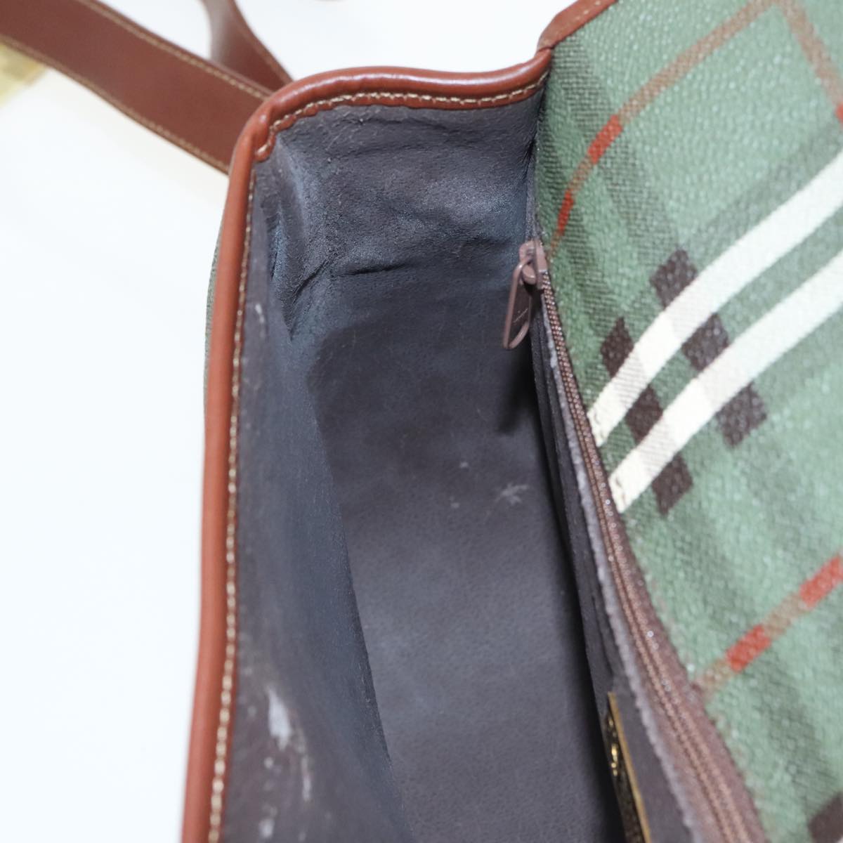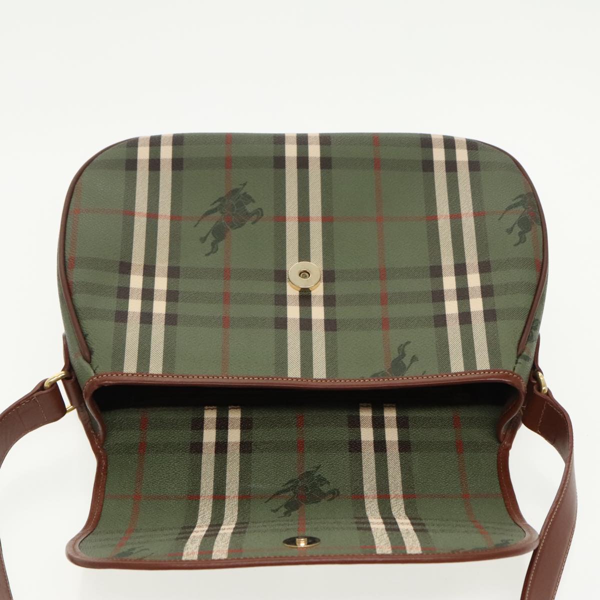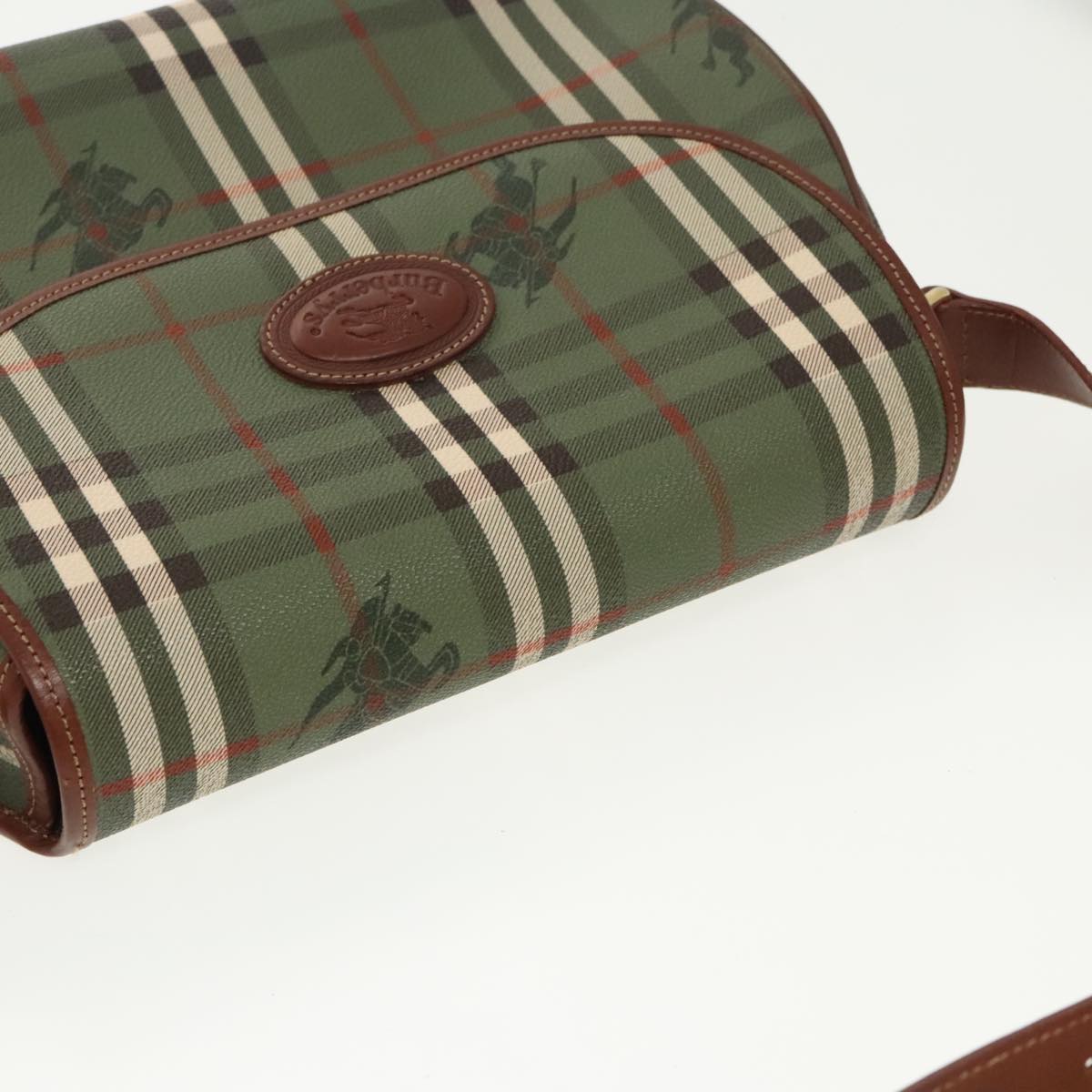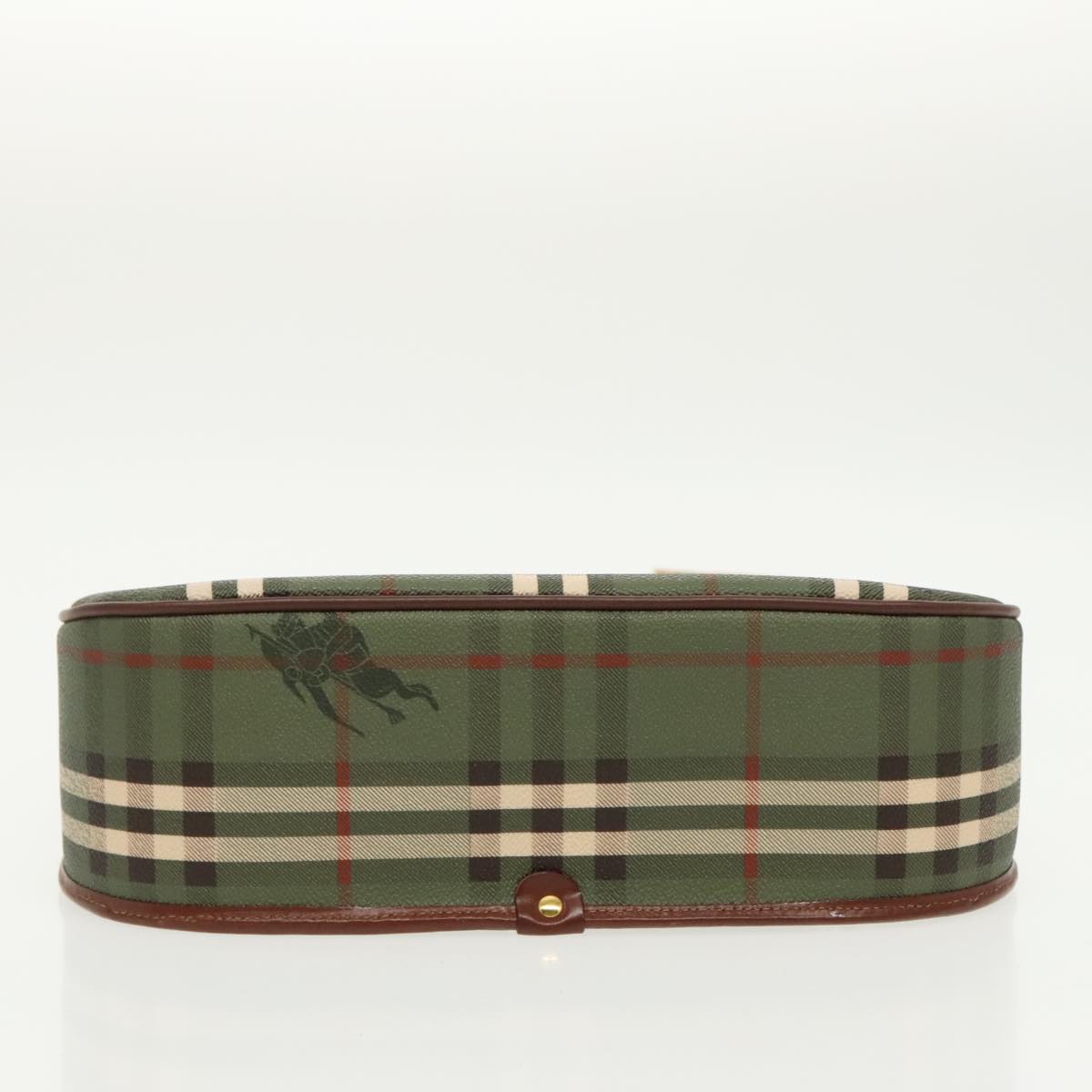 Burberrys Nova Check Shoulder Bag PVC Leather Green Gold Auth 98800V
