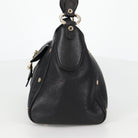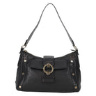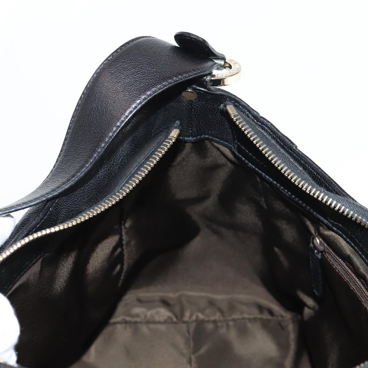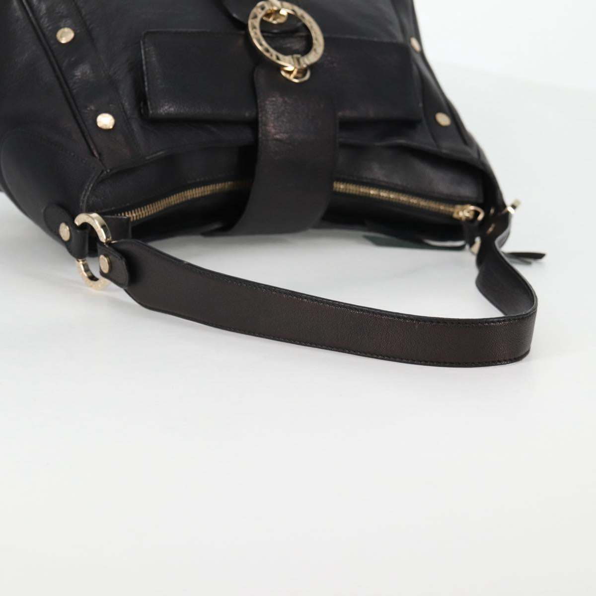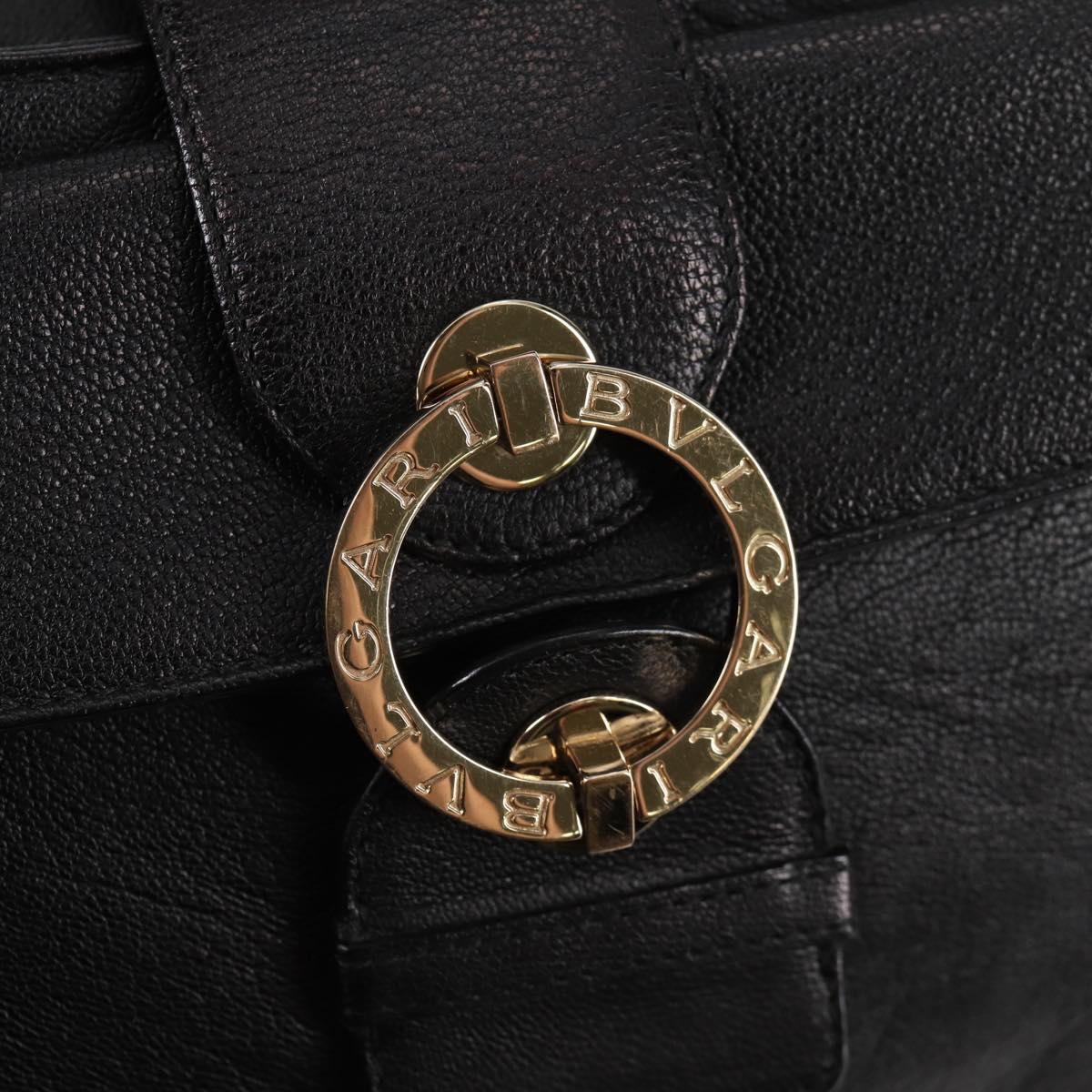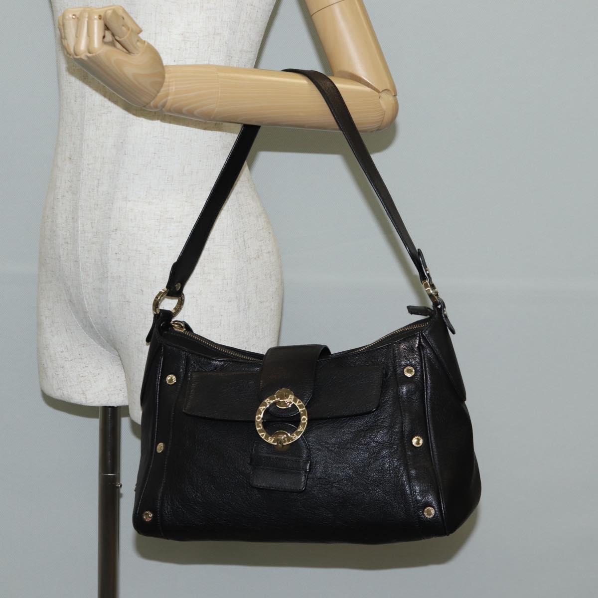 BVLGARI Shoulder Bag Leather Black Gold Auth 142010V