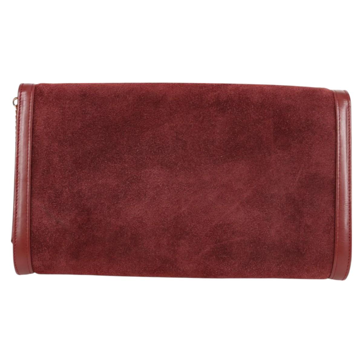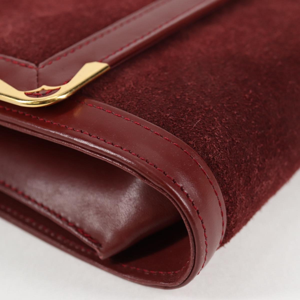 CARTIER Chain Shoulder Bag Suede Leather Red Gold Auth 118790V