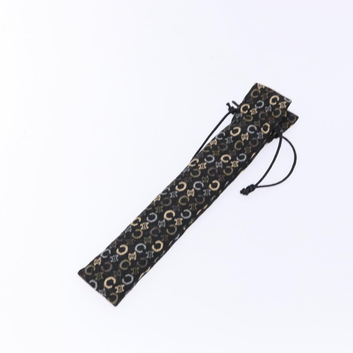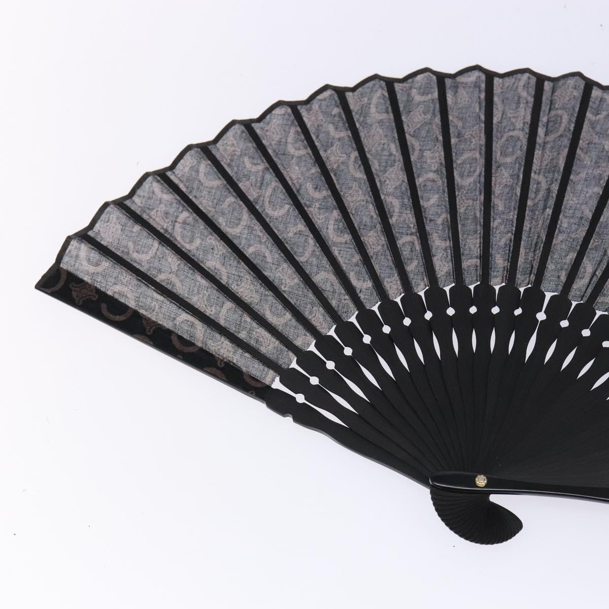 CELINE C Macadam Canvas Japanese Fan Black Auth sw1383V