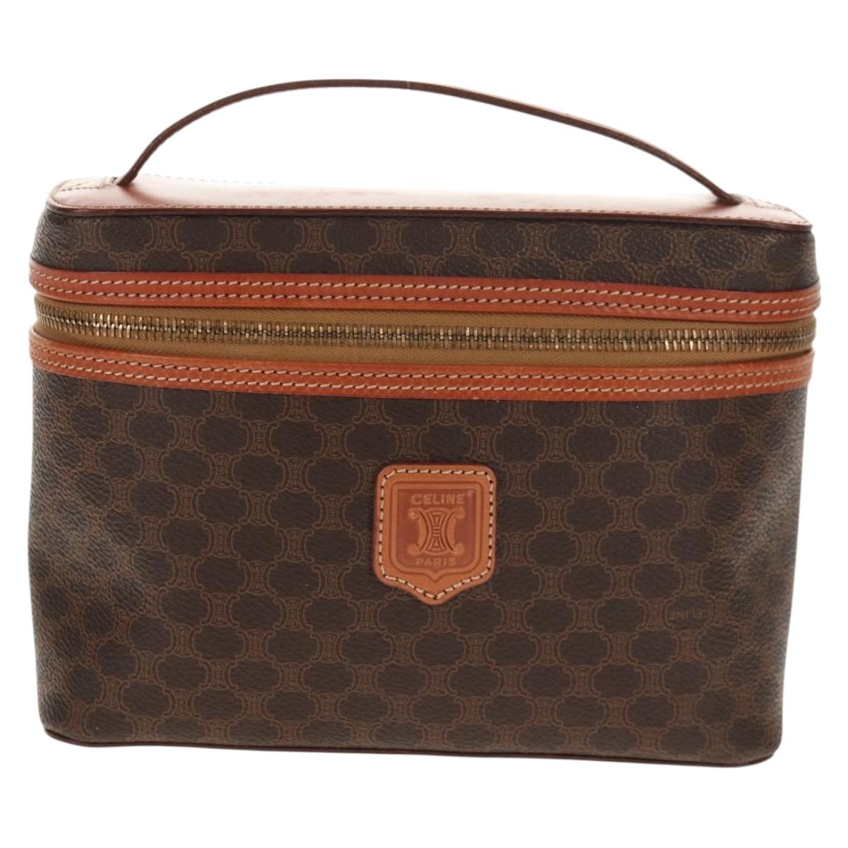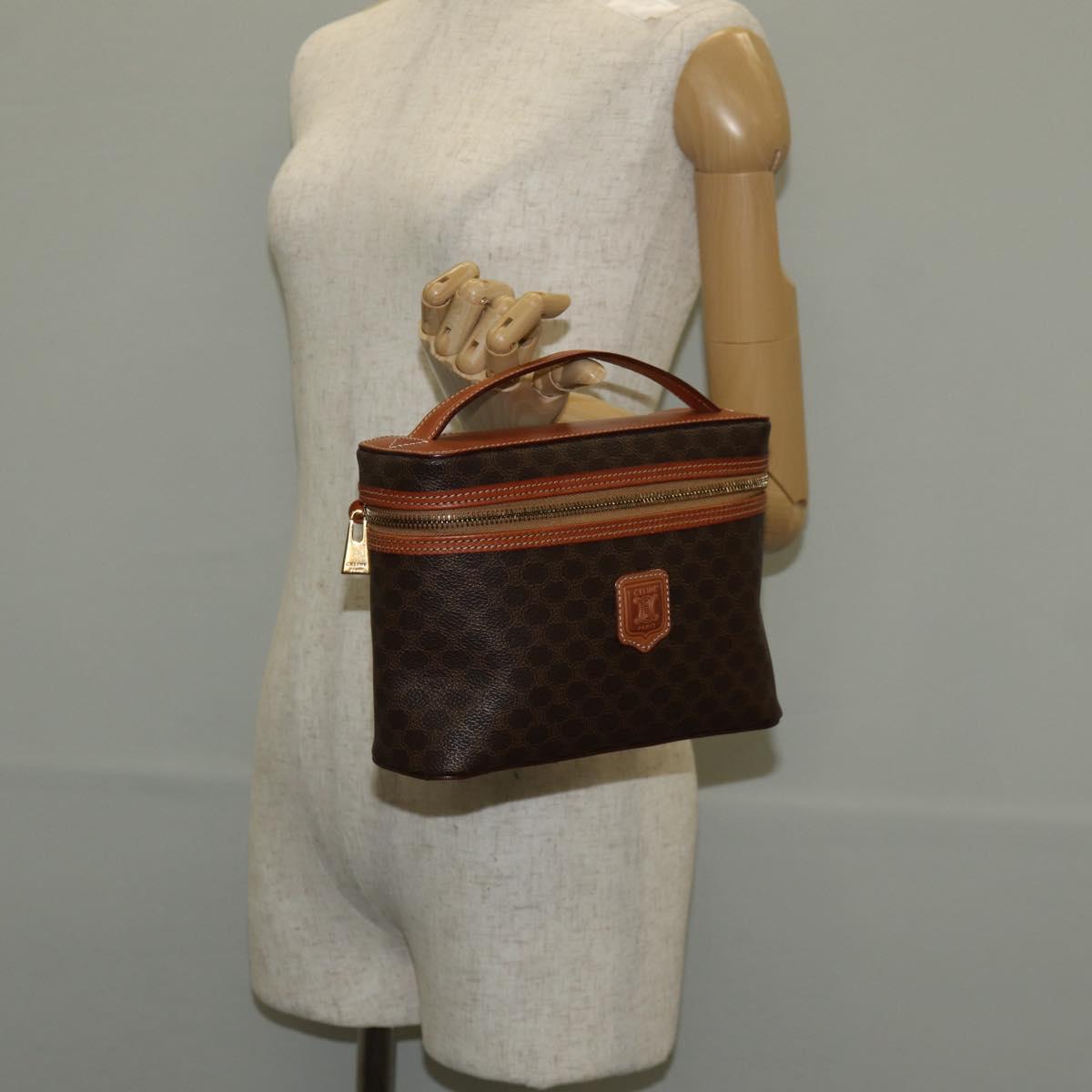 CELINE Macadam Canvas Hand Bag PVC Leather Brown Gold Auth 145189V