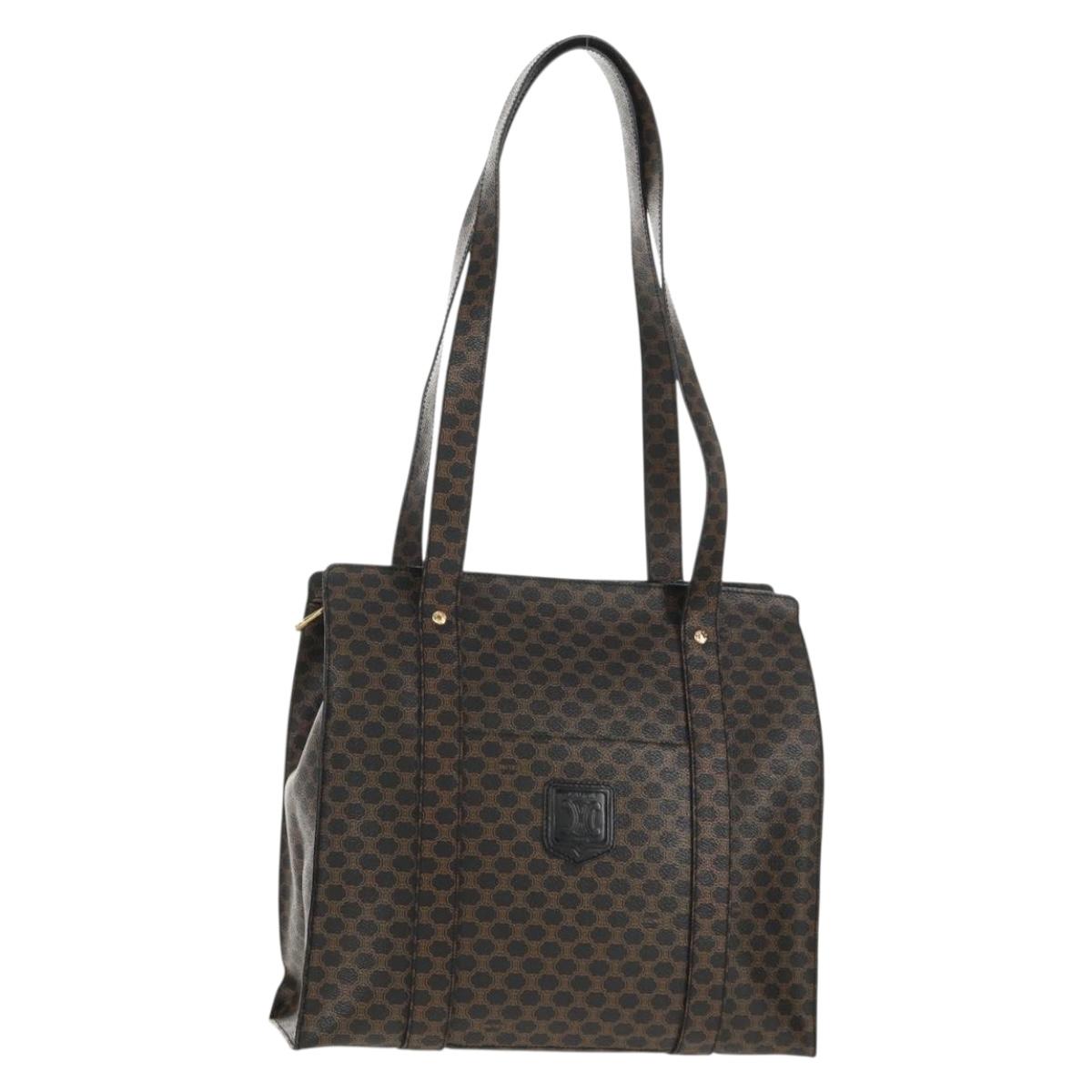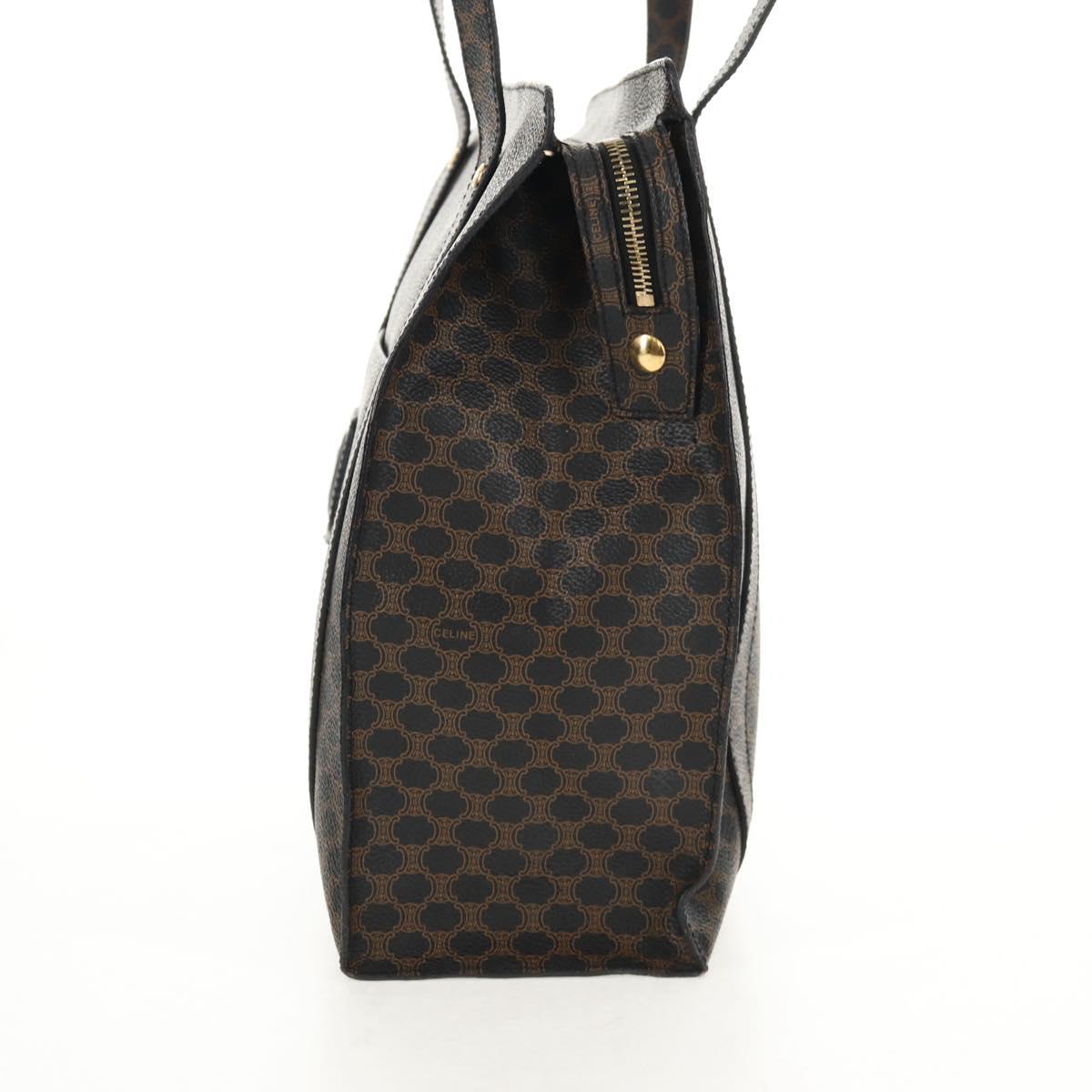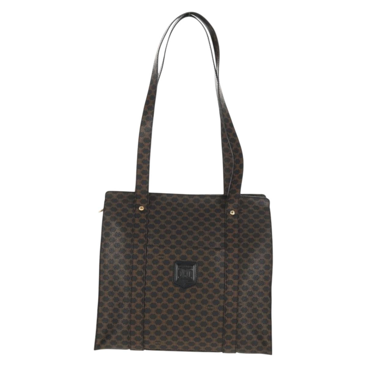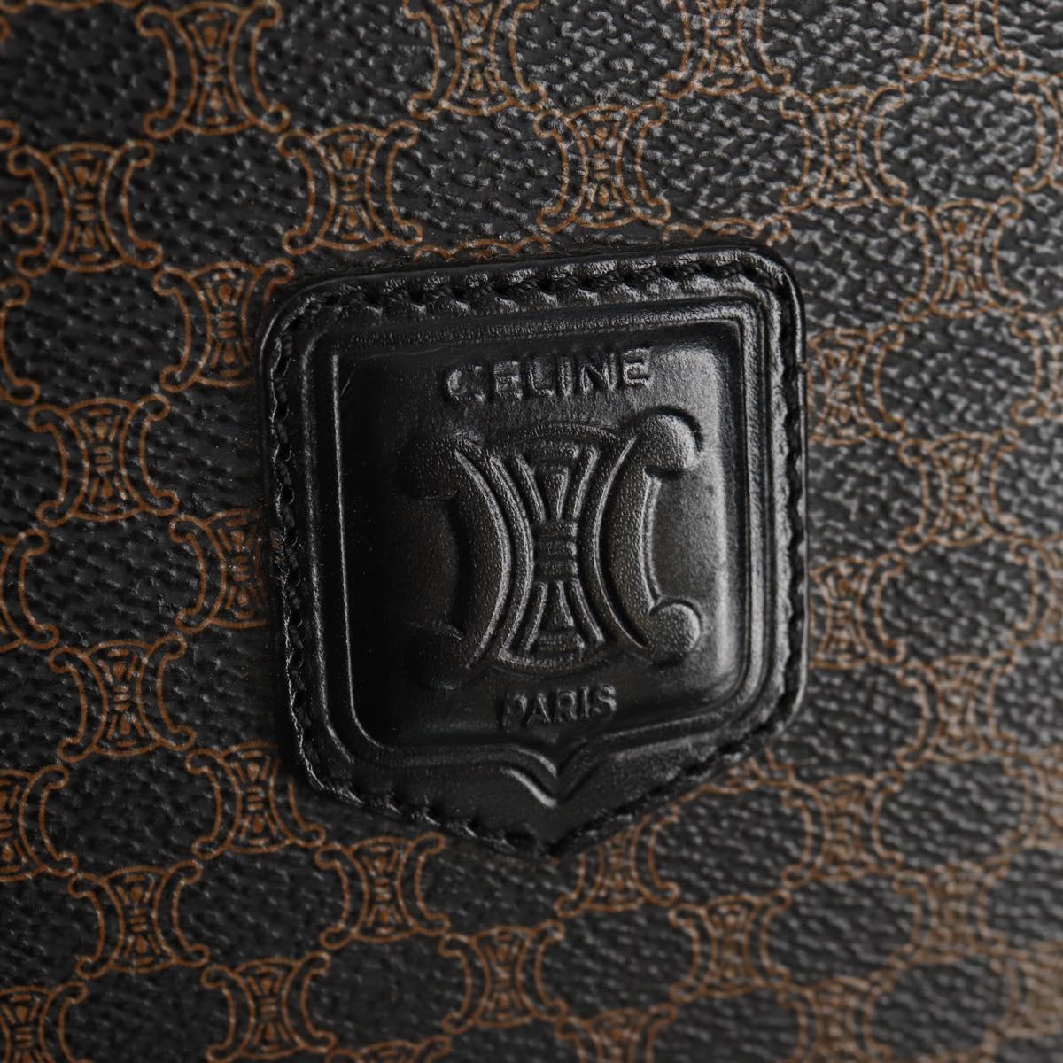 CELINE Macadam Canvas Shoulder Bag PVC Leather Black Gold Auth 146772V