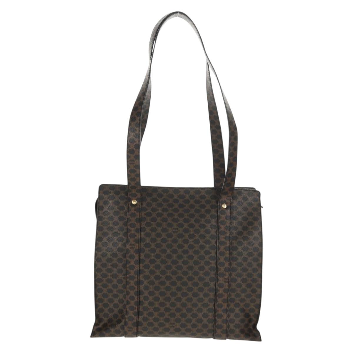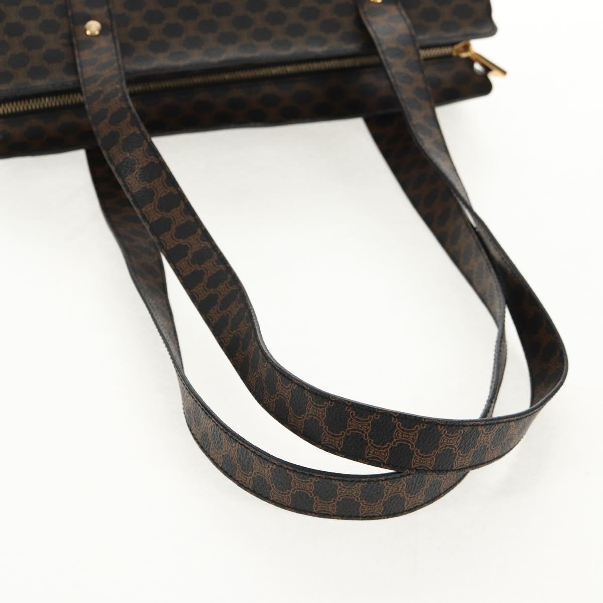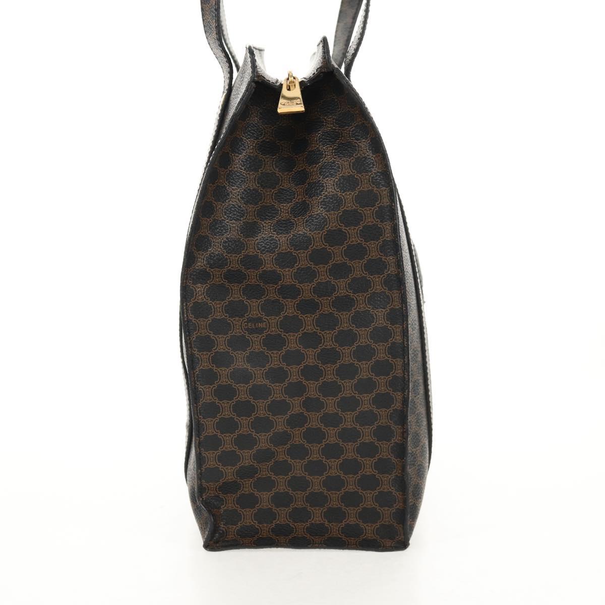 CELINE Macadam Canvas Shoulder Bag PVC Leather Black Gold Auth 146772V