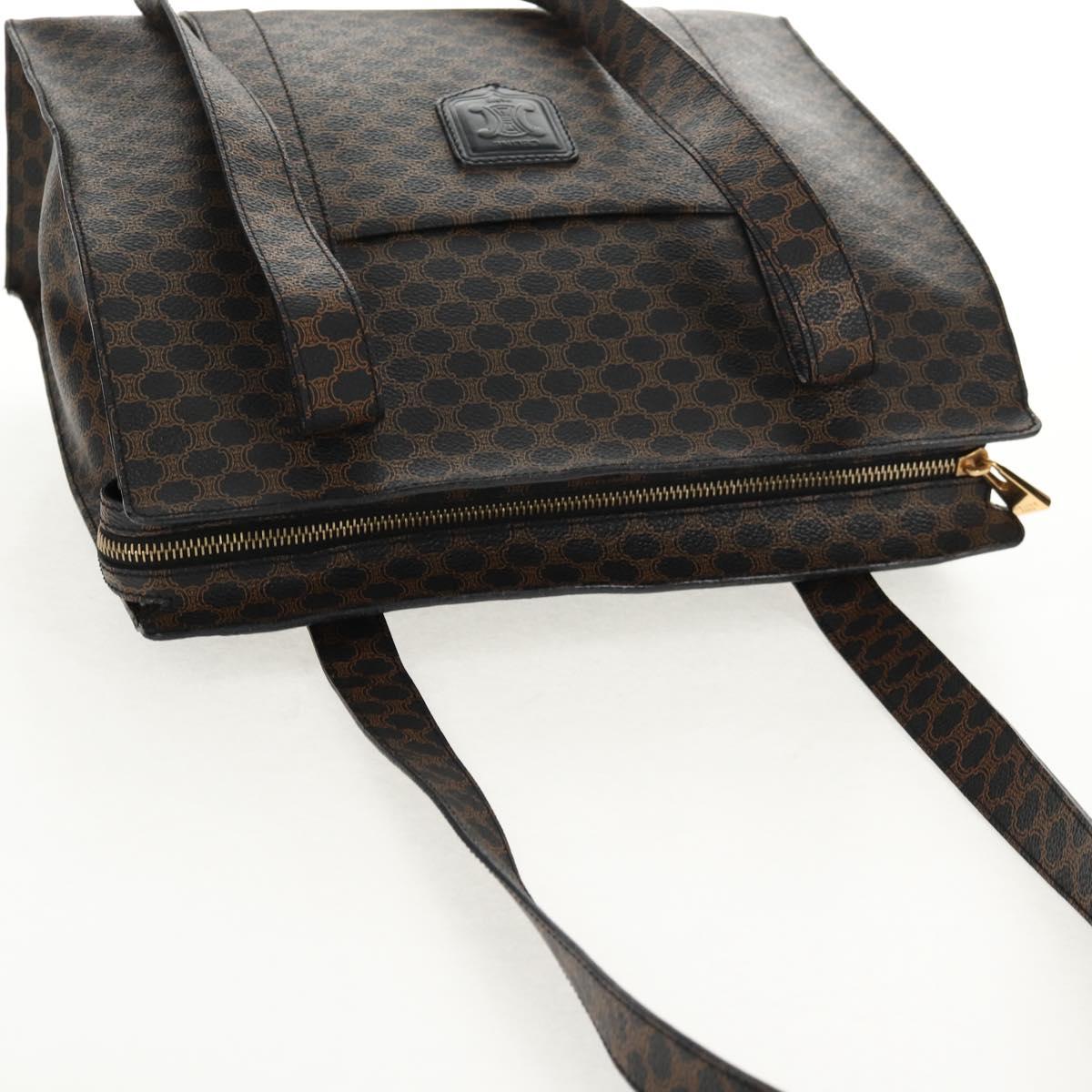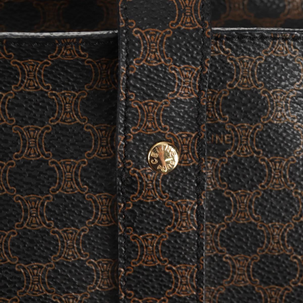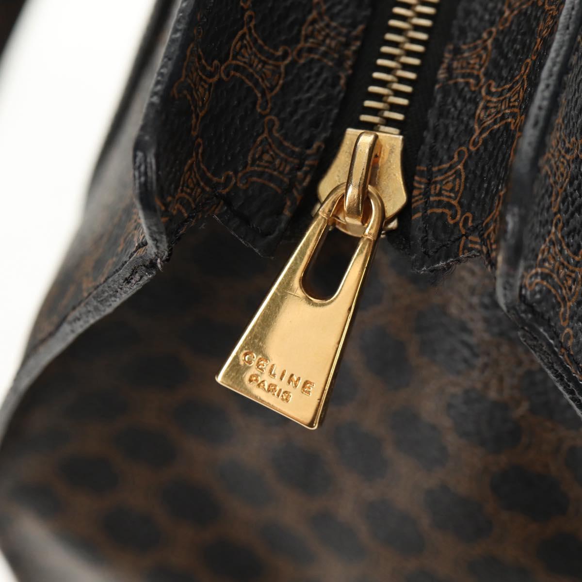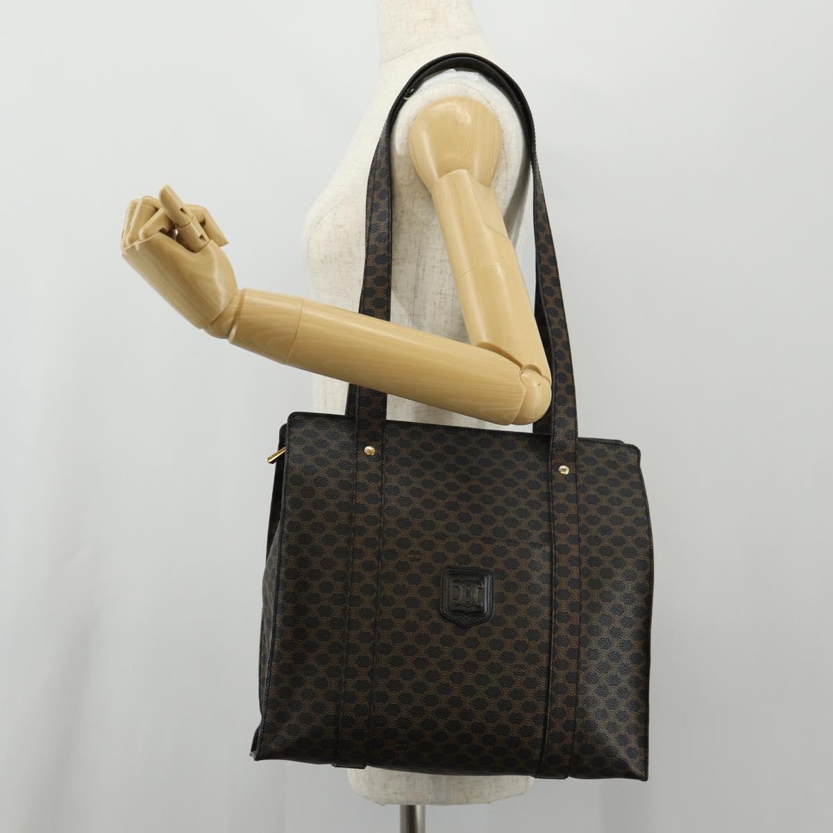 CELINE Macadam Canvas Shoulder Bag PVC Leather Black Gold Auth 146772V