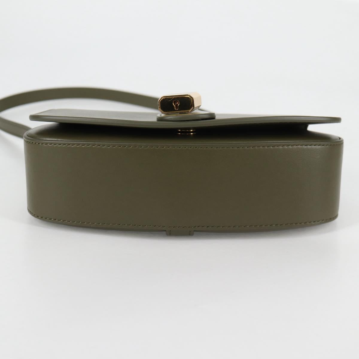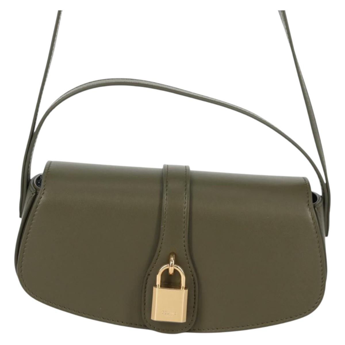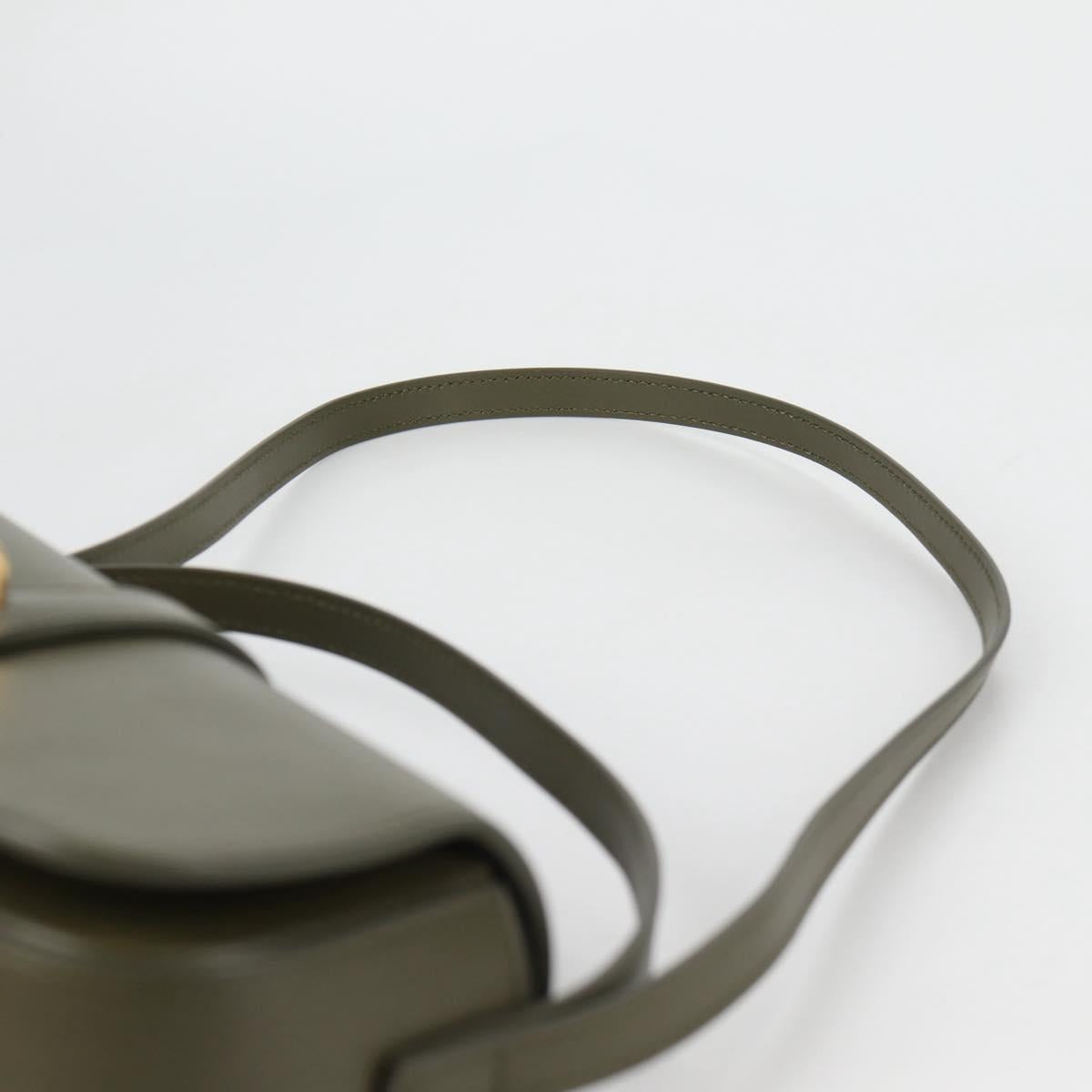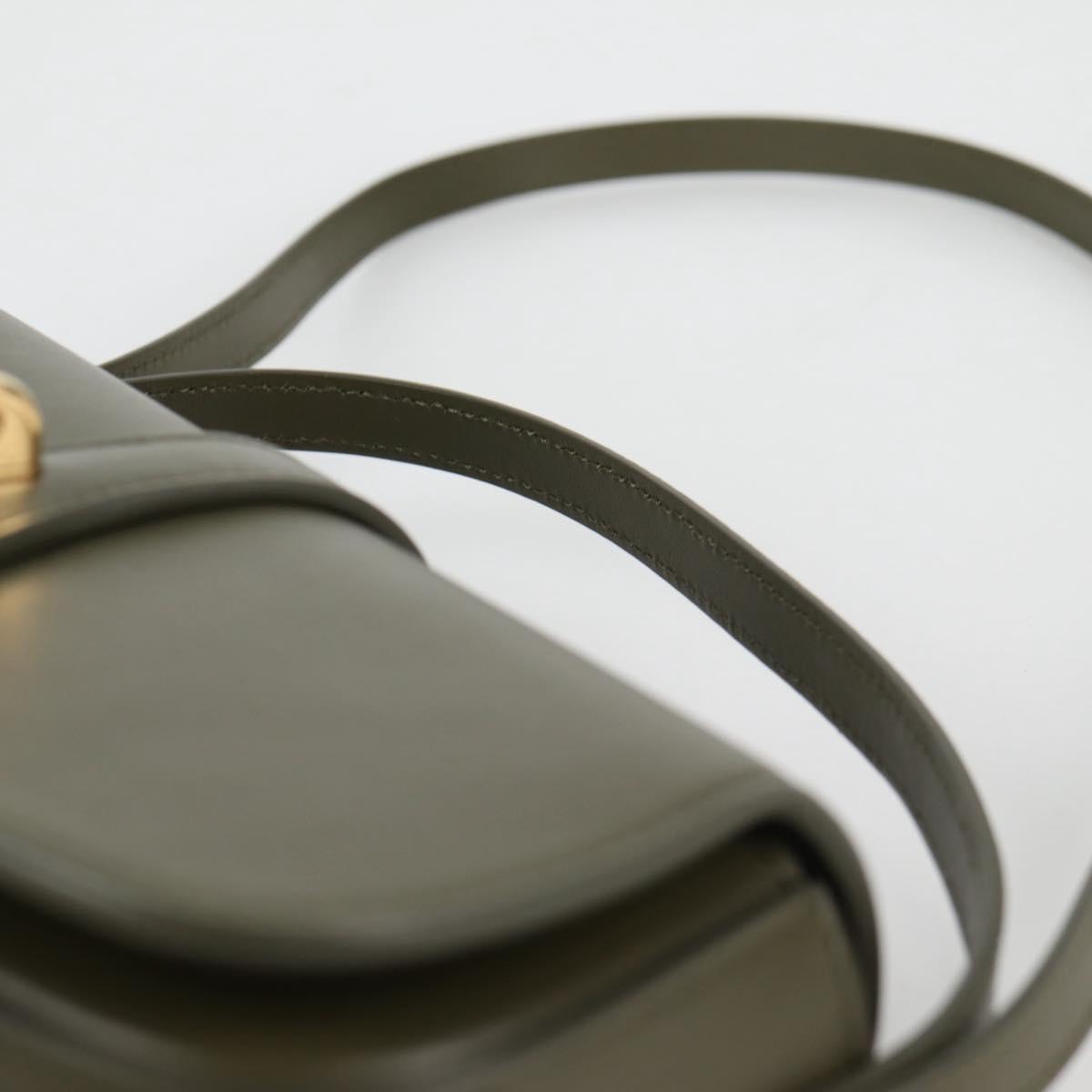 CELINE Shoulder Bag Leather Khaki Gold Auth 138086M