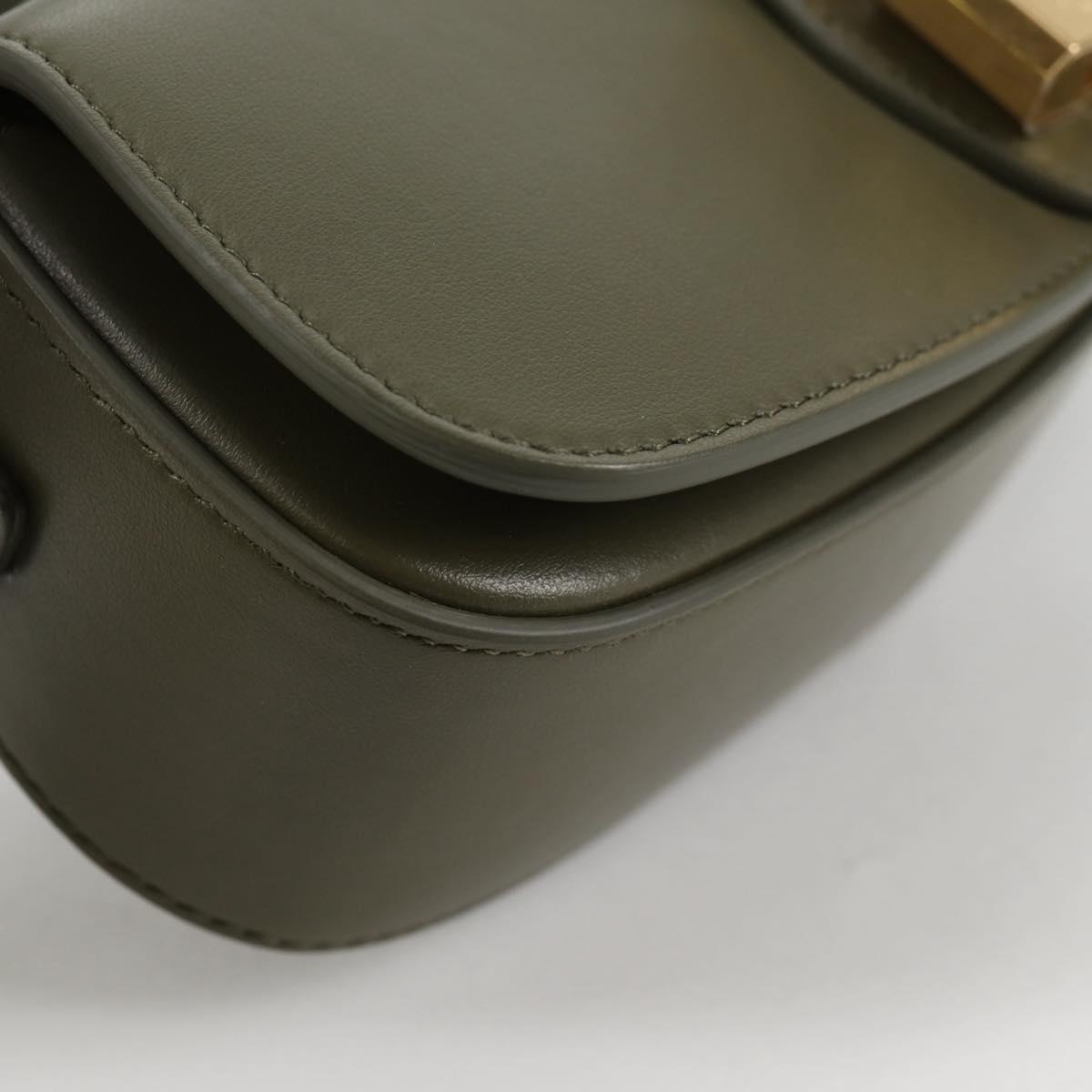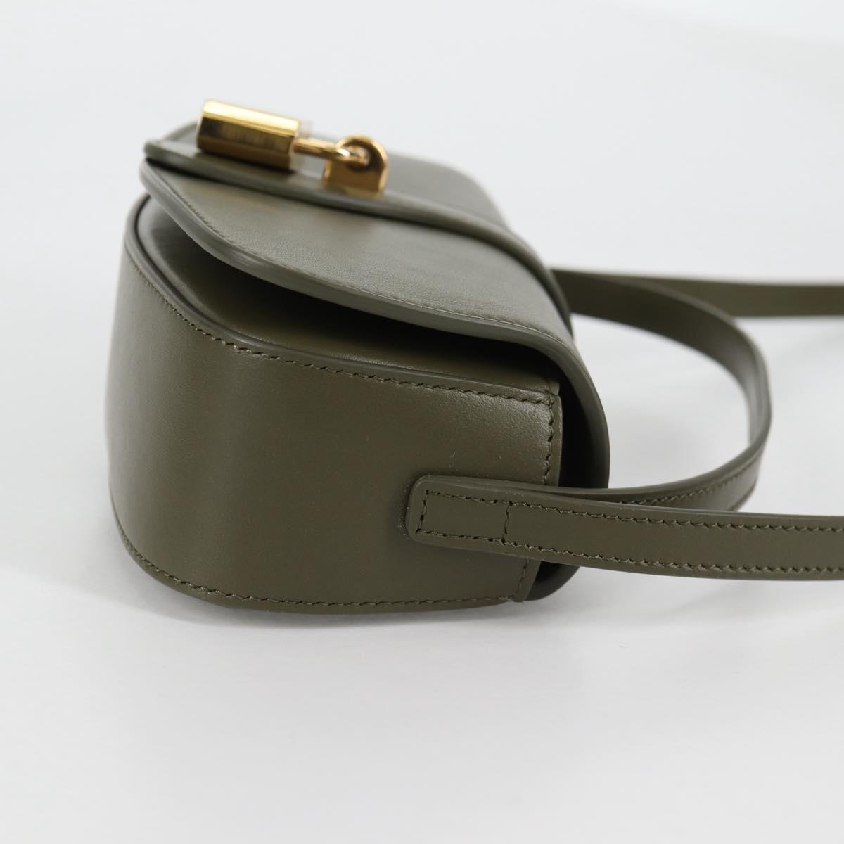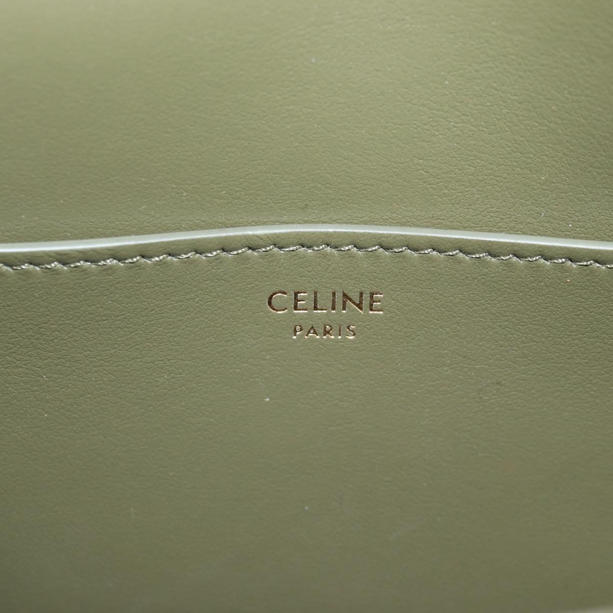 CELINE Shoulder Bag Leather Khaki Gold Auth 138086M