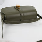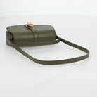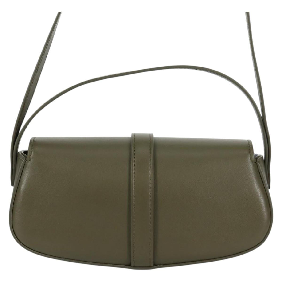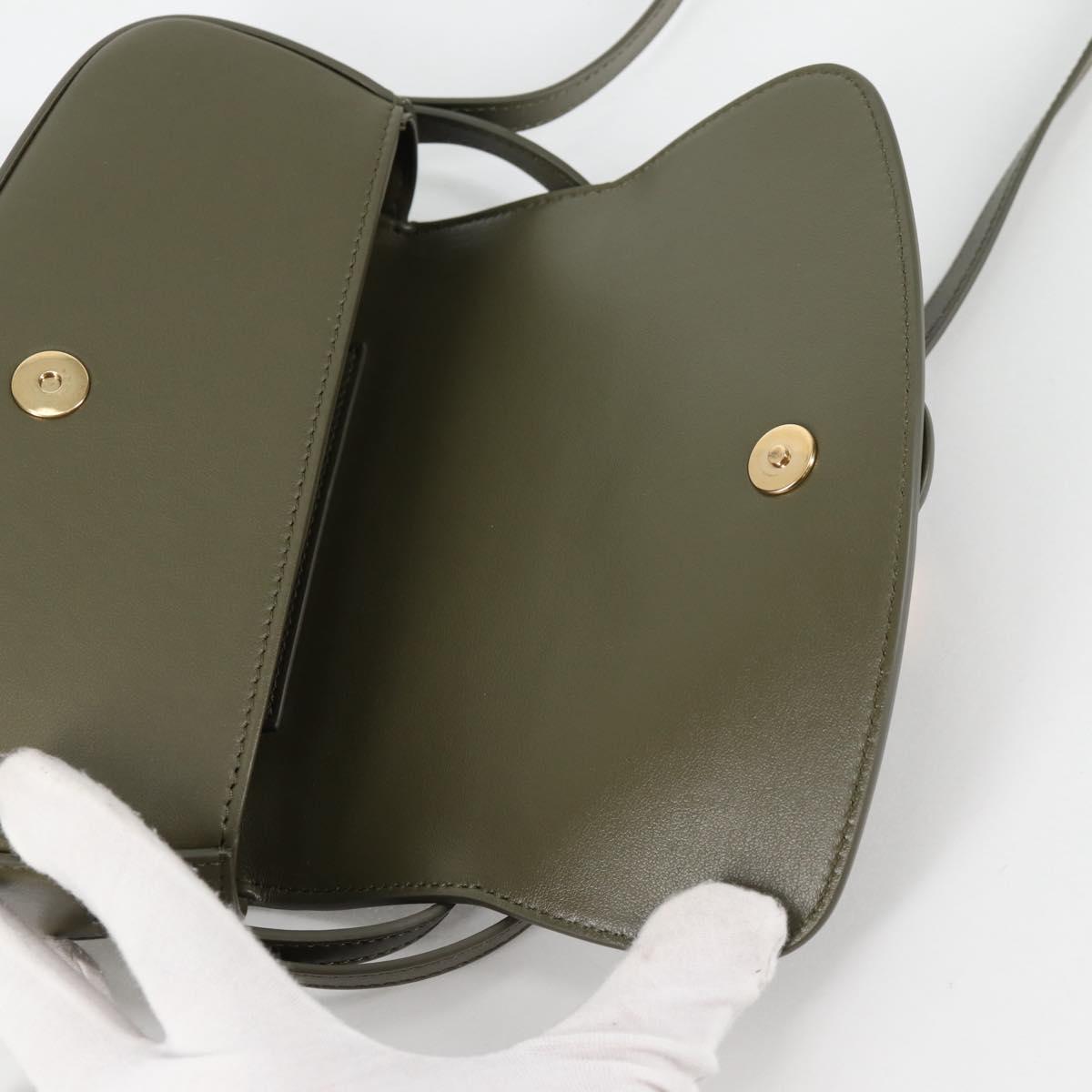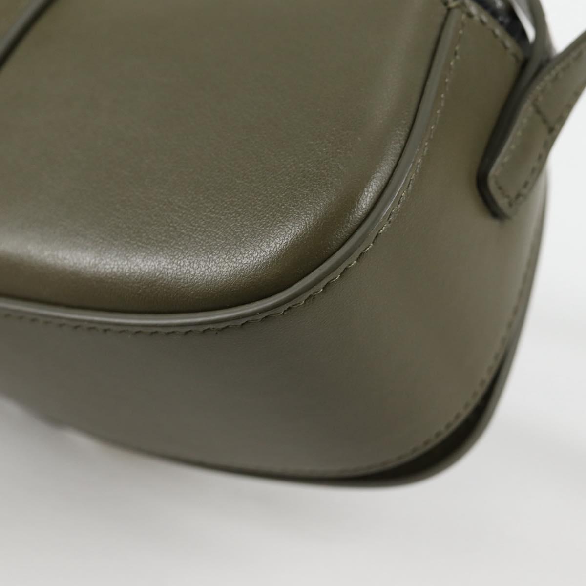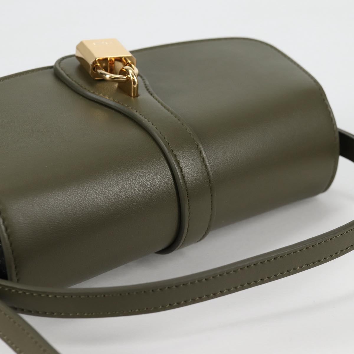 CELINE Shoulder Bag Leather Khaki Gold Auth 138086M
