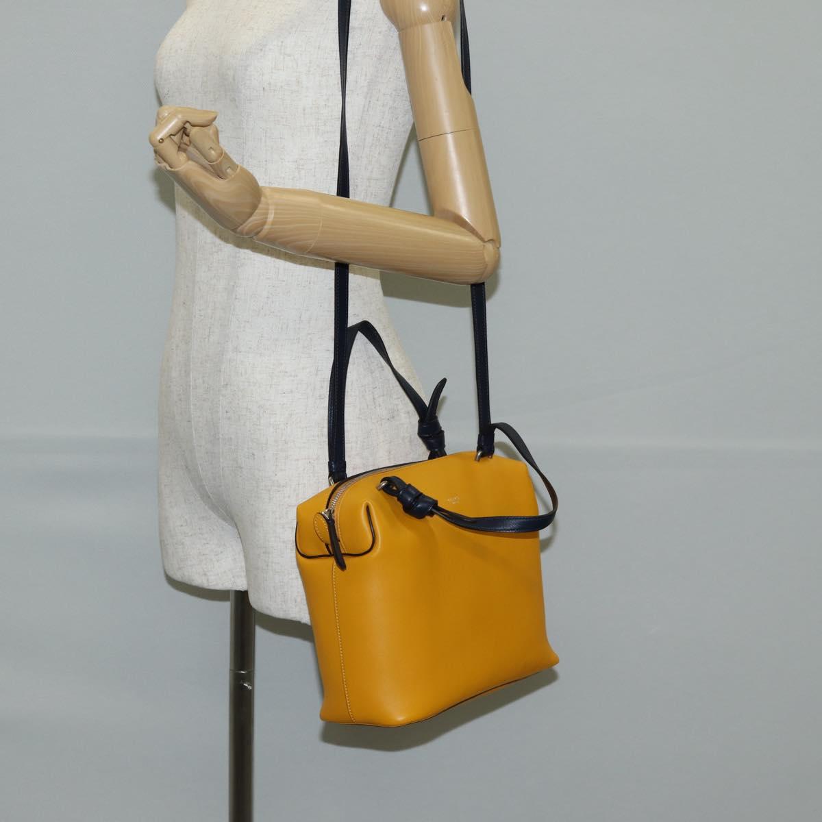 CELINE Soft Cube Shoulder Bag Leather 2way Yellow Silver Auth BA5024M