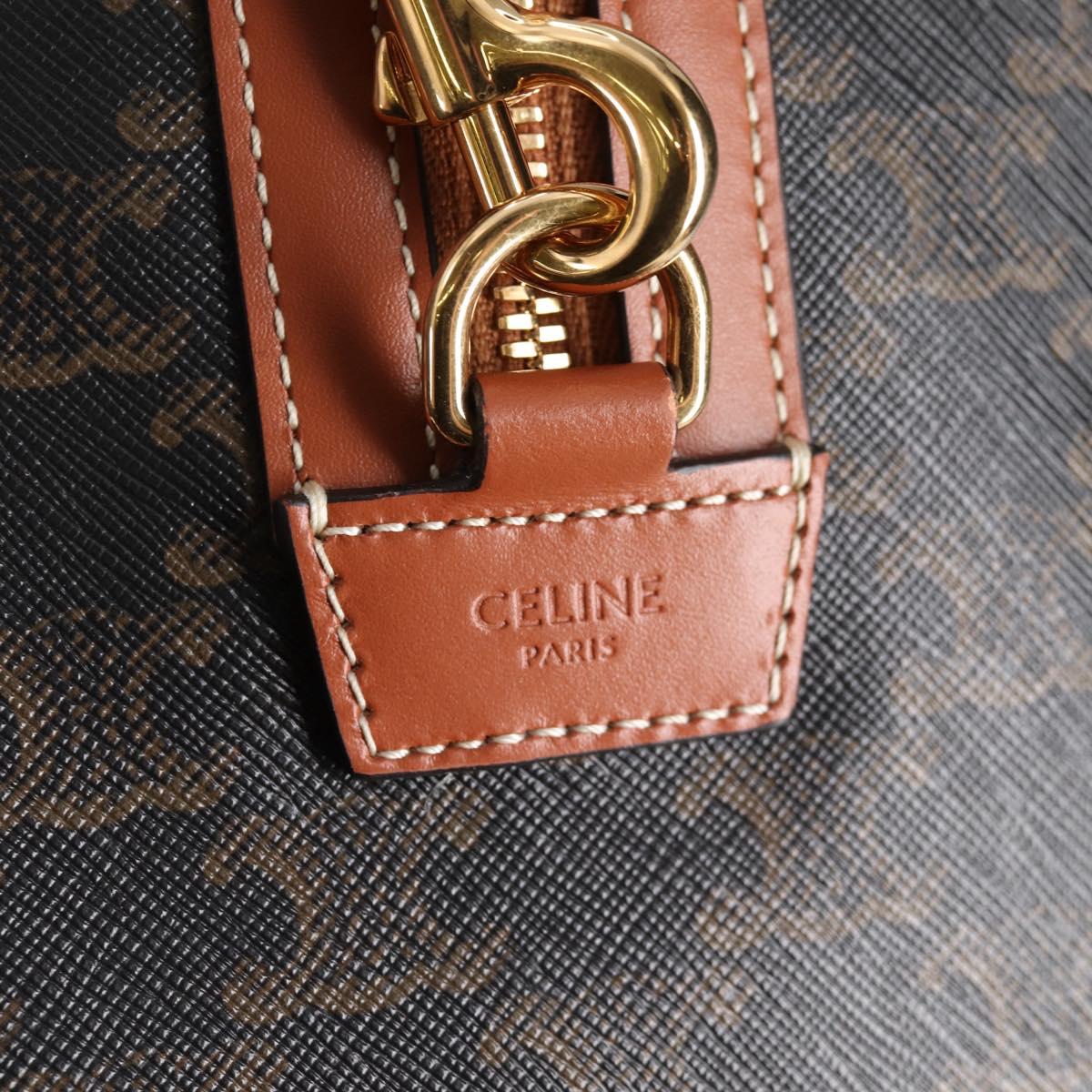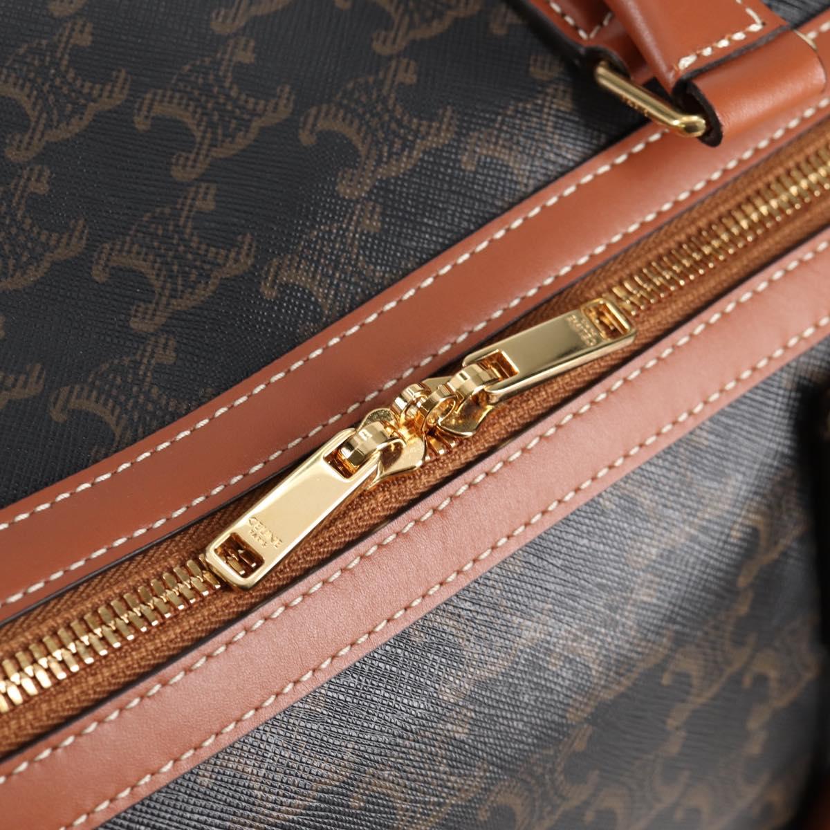 CELINE Triomphe Boston Bag PVC Leather 2way Black Gold Auth nb467M