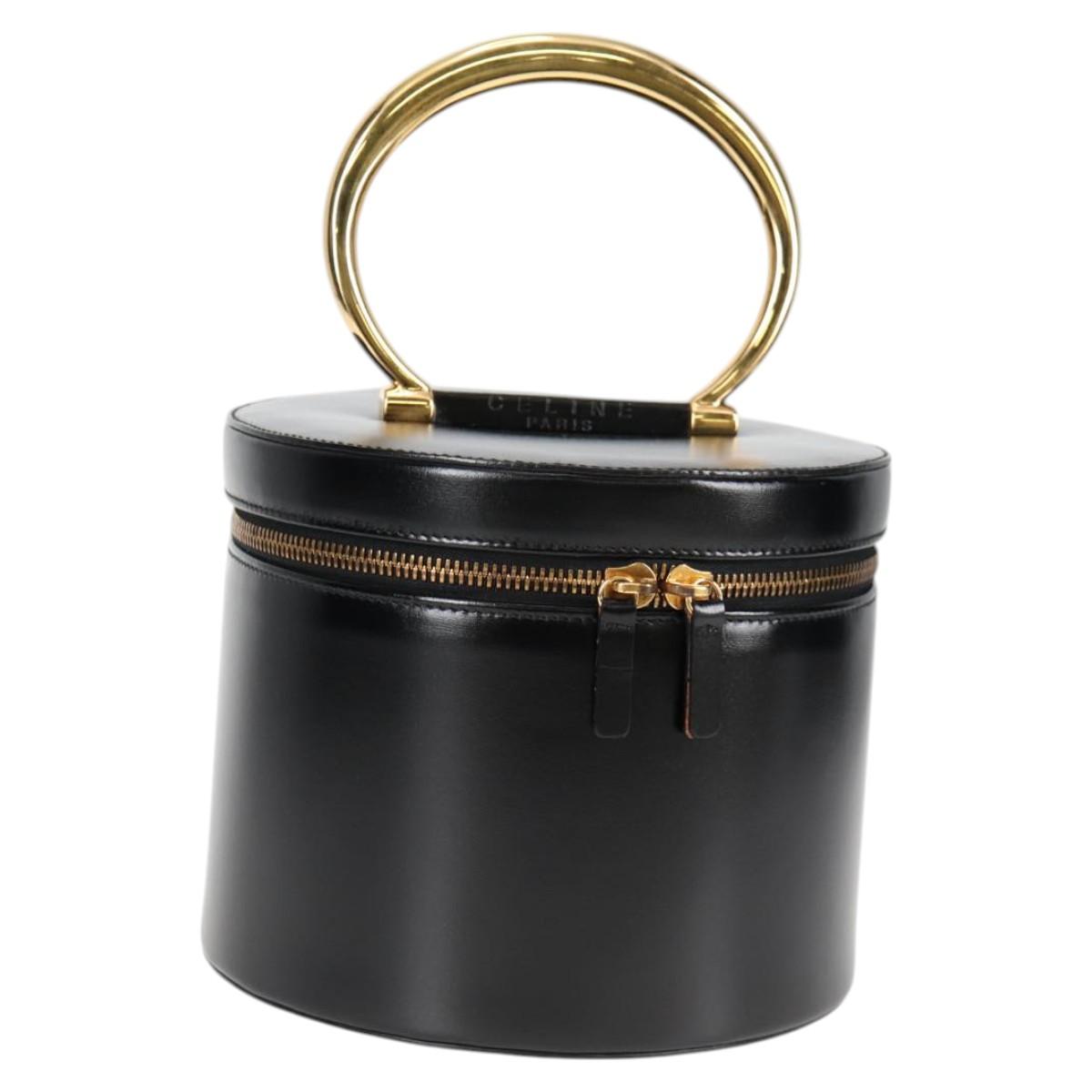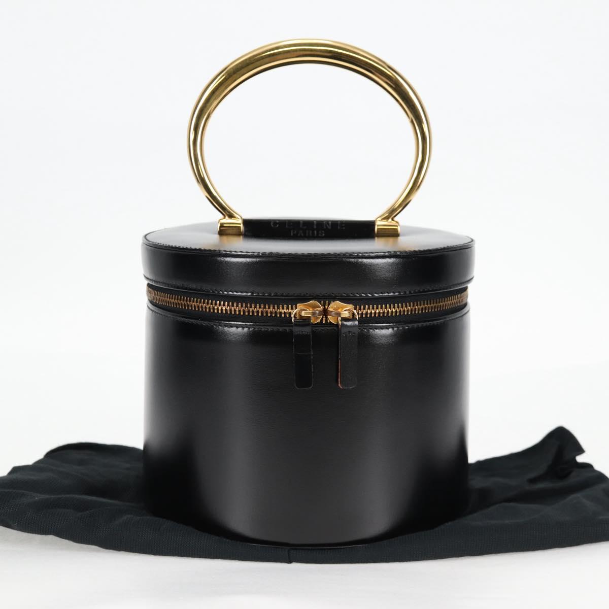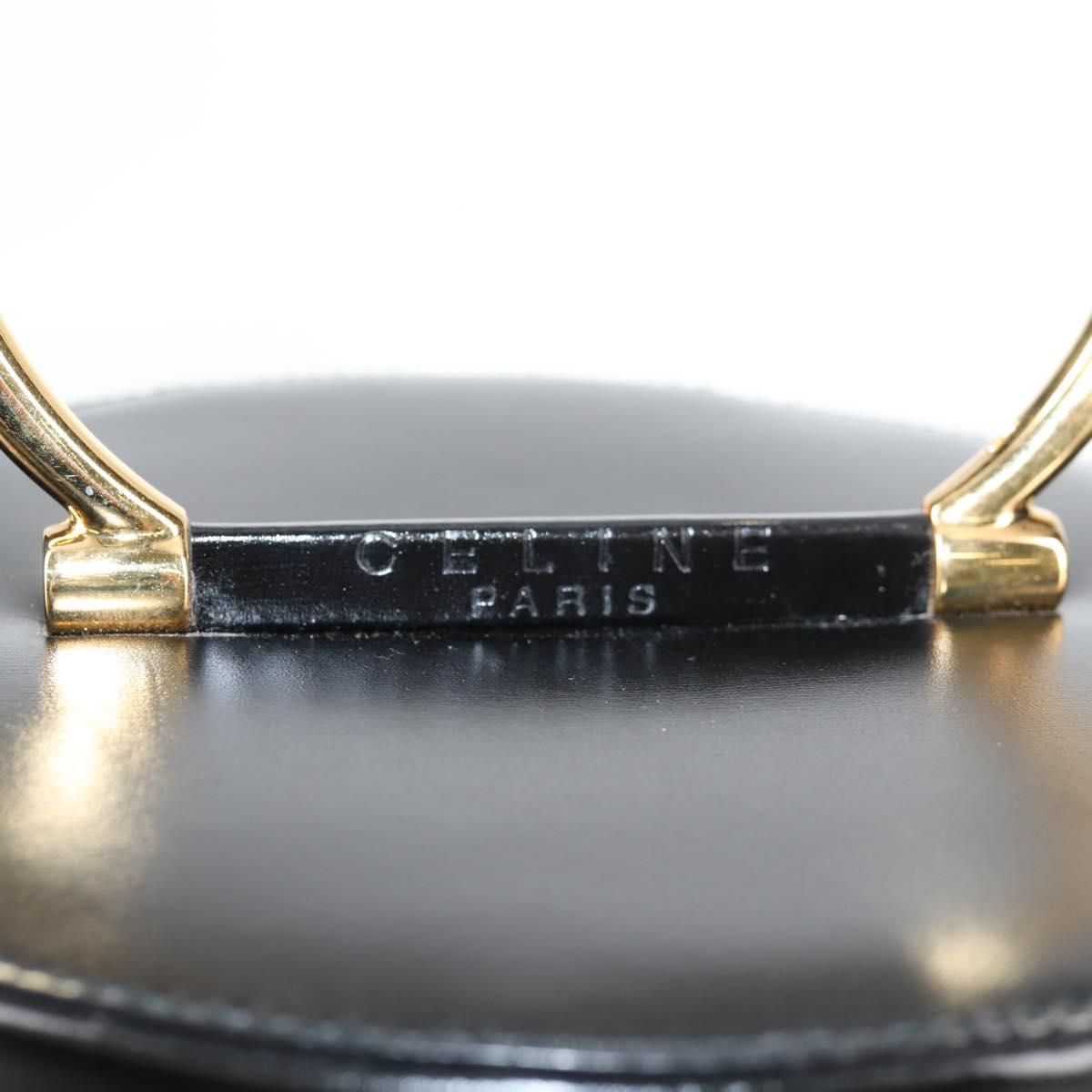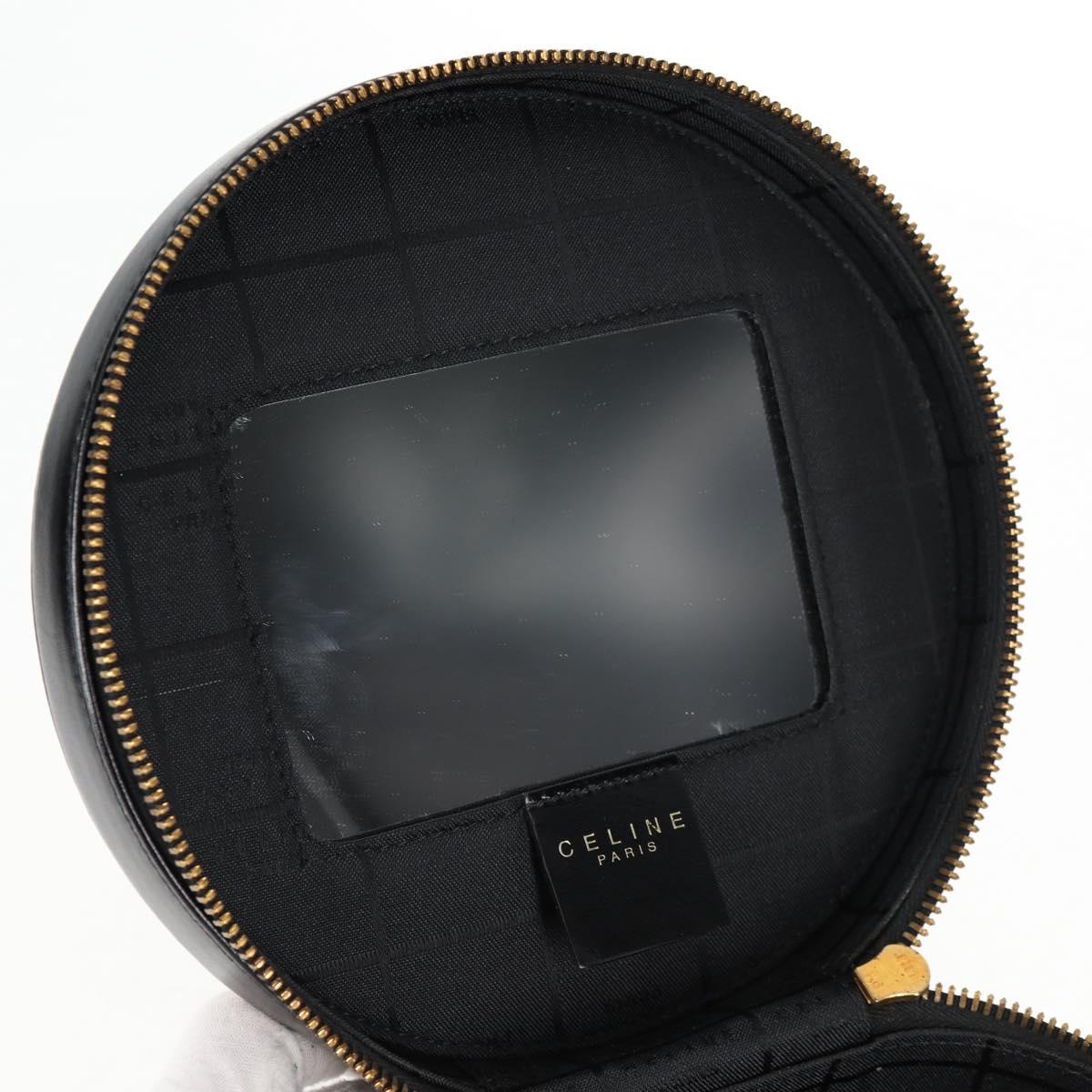 CELINE Vanity Cosmetic Pouch Leather Black Gold Auth 125415V