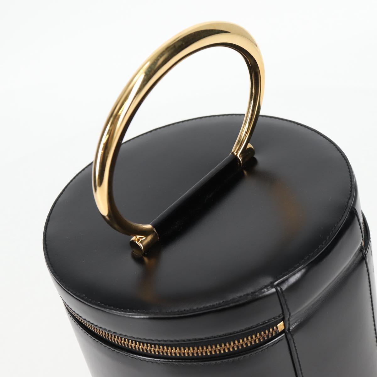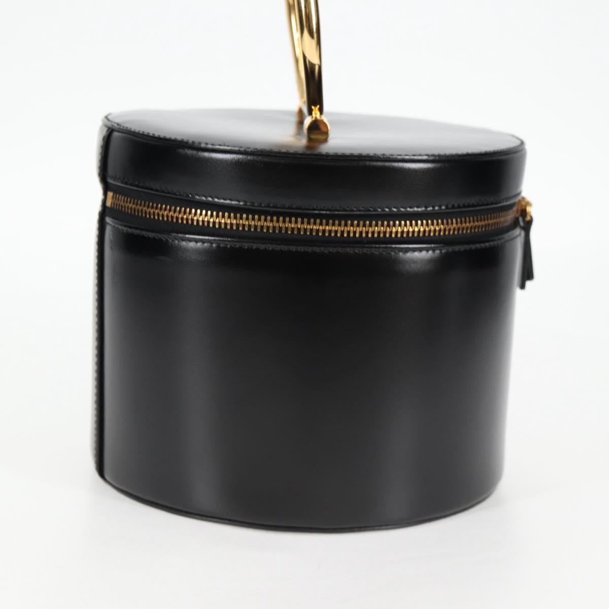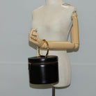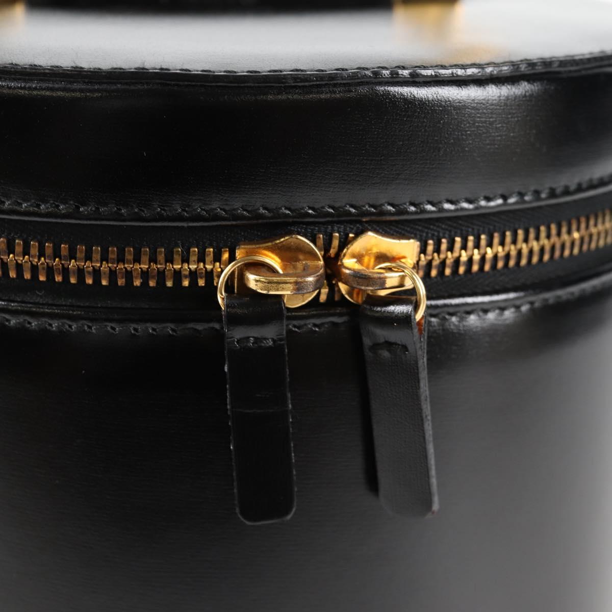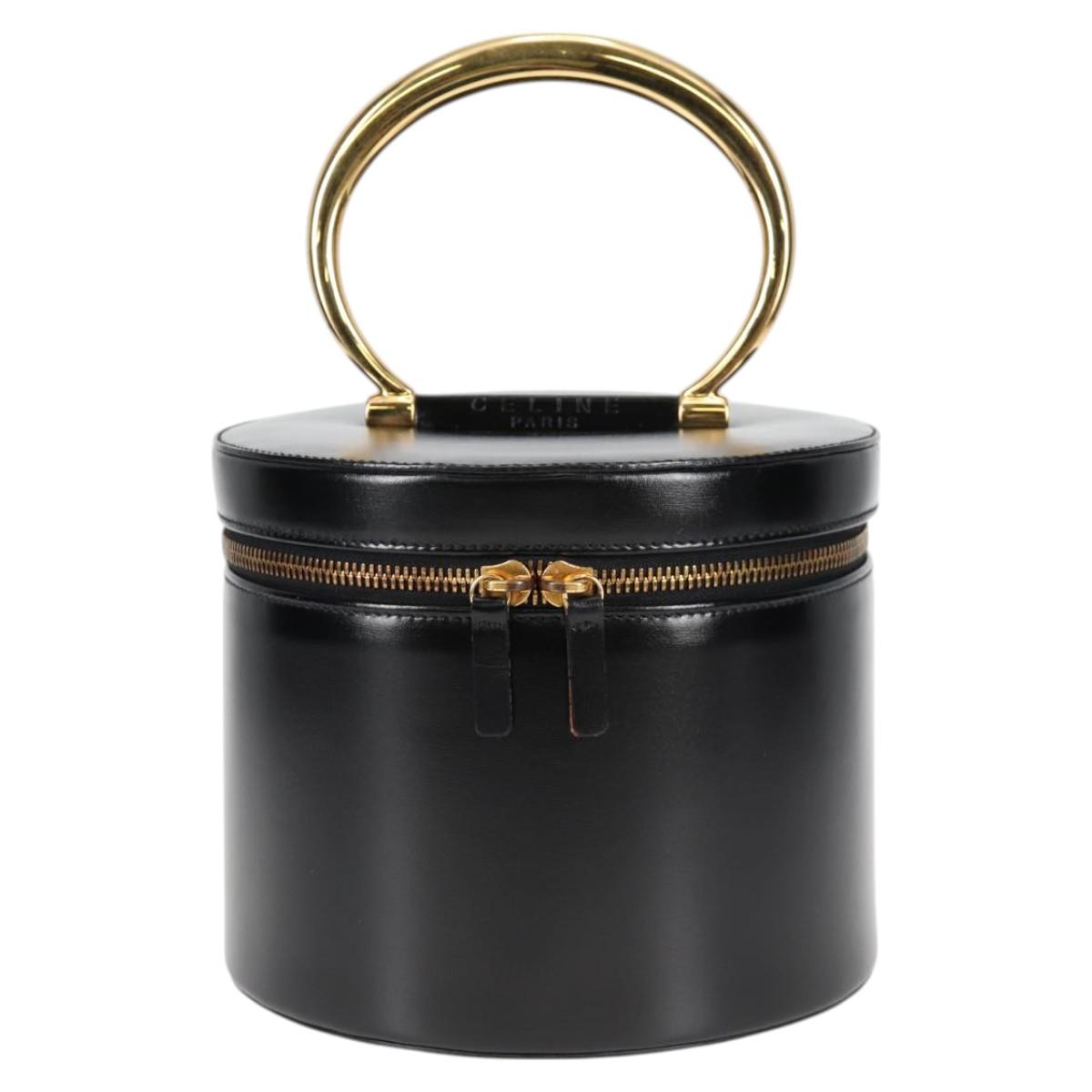 CELINE Vanity Cosmetic Pouch Leather Black Gold Auth 125415V