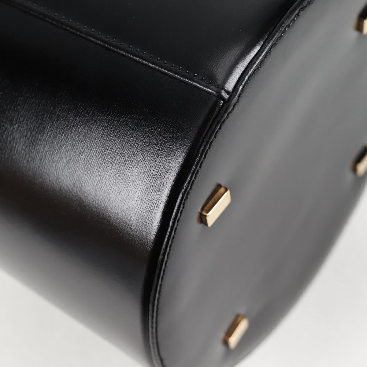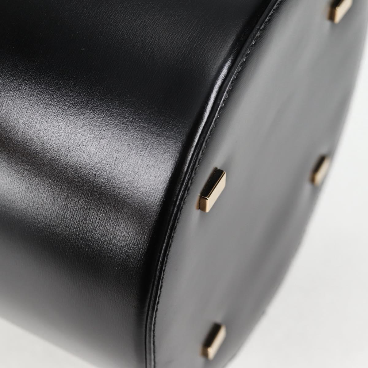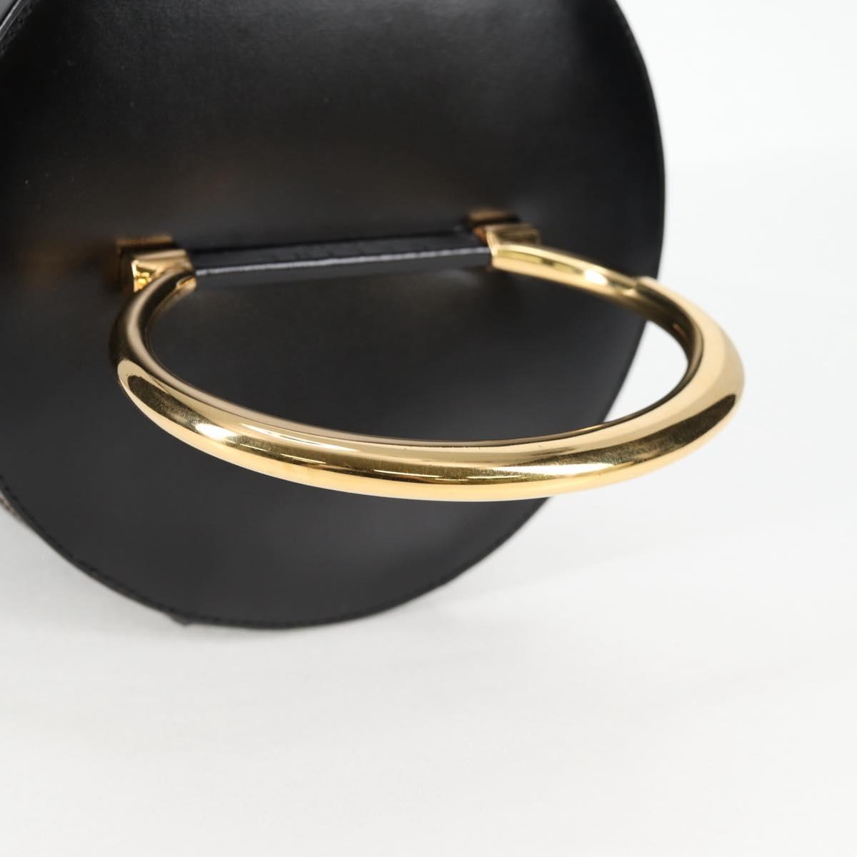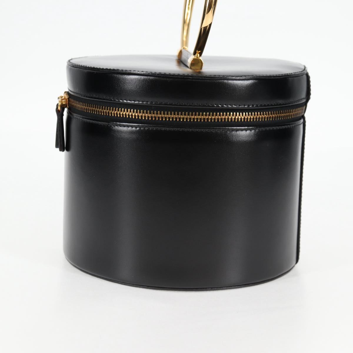 CELINE Vanity Cosmetic Pouch Leather Black Gold Auth 125415V
