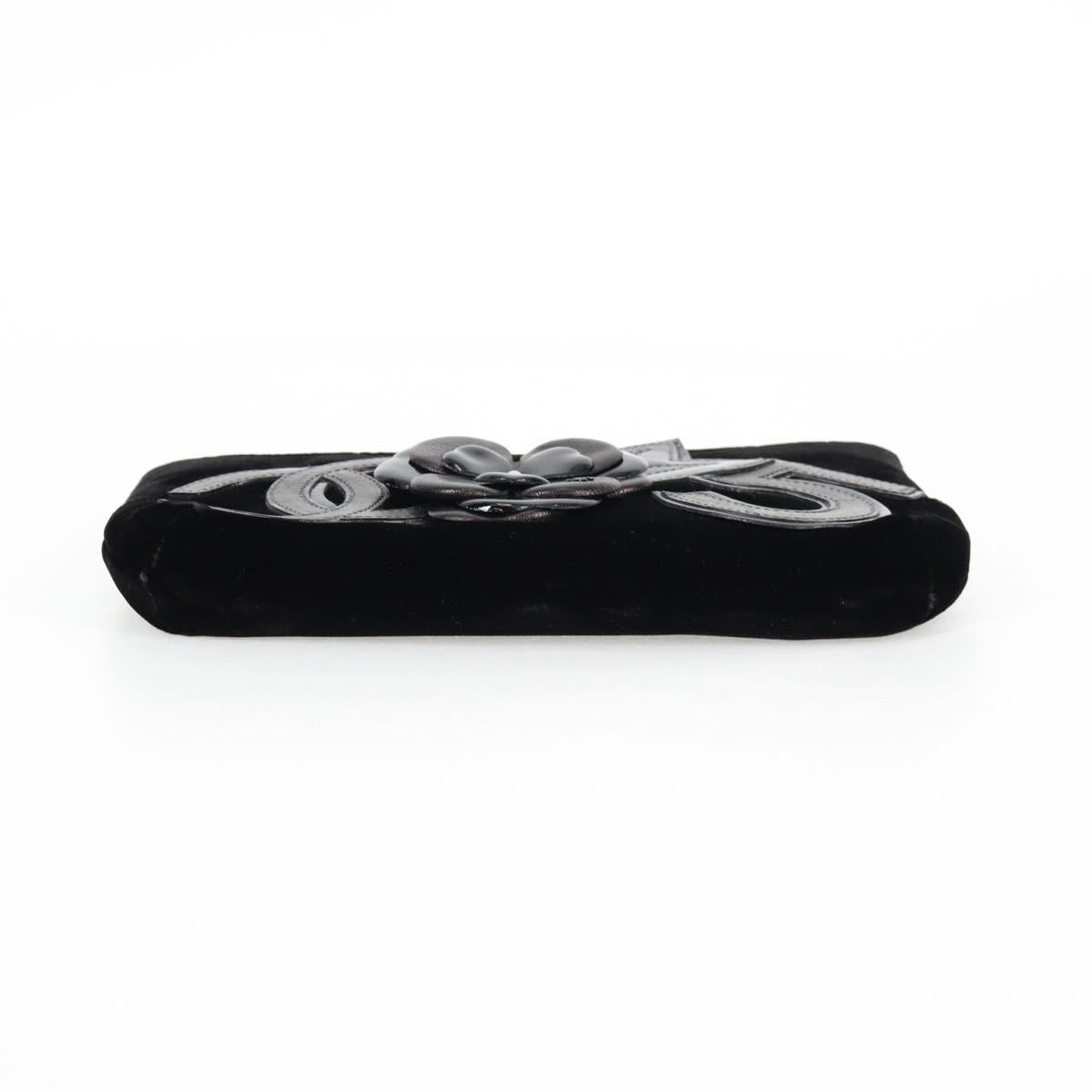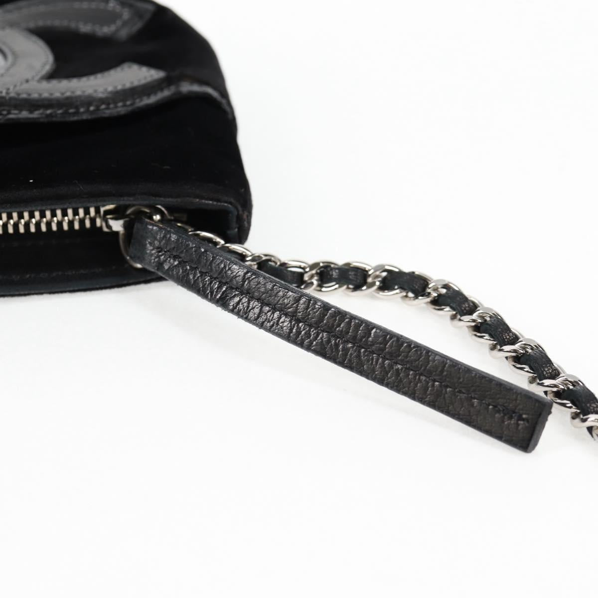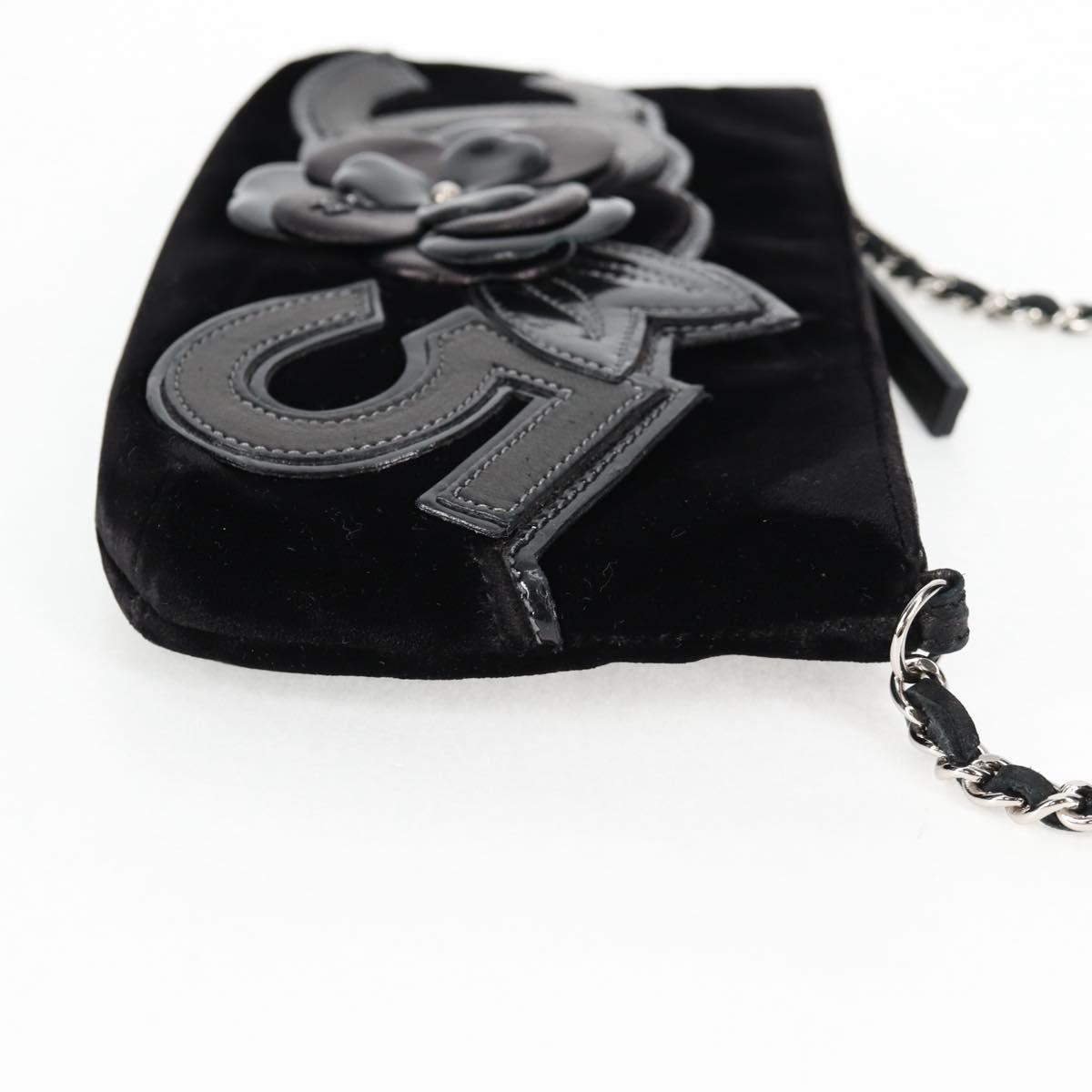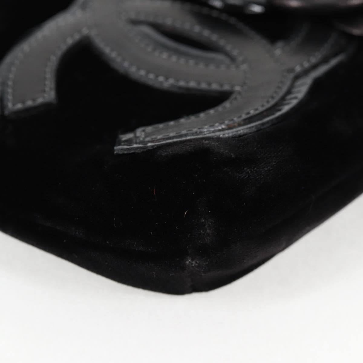 CHANEL Accessory Pouch Velor Black Gold CC Auth 125432AV