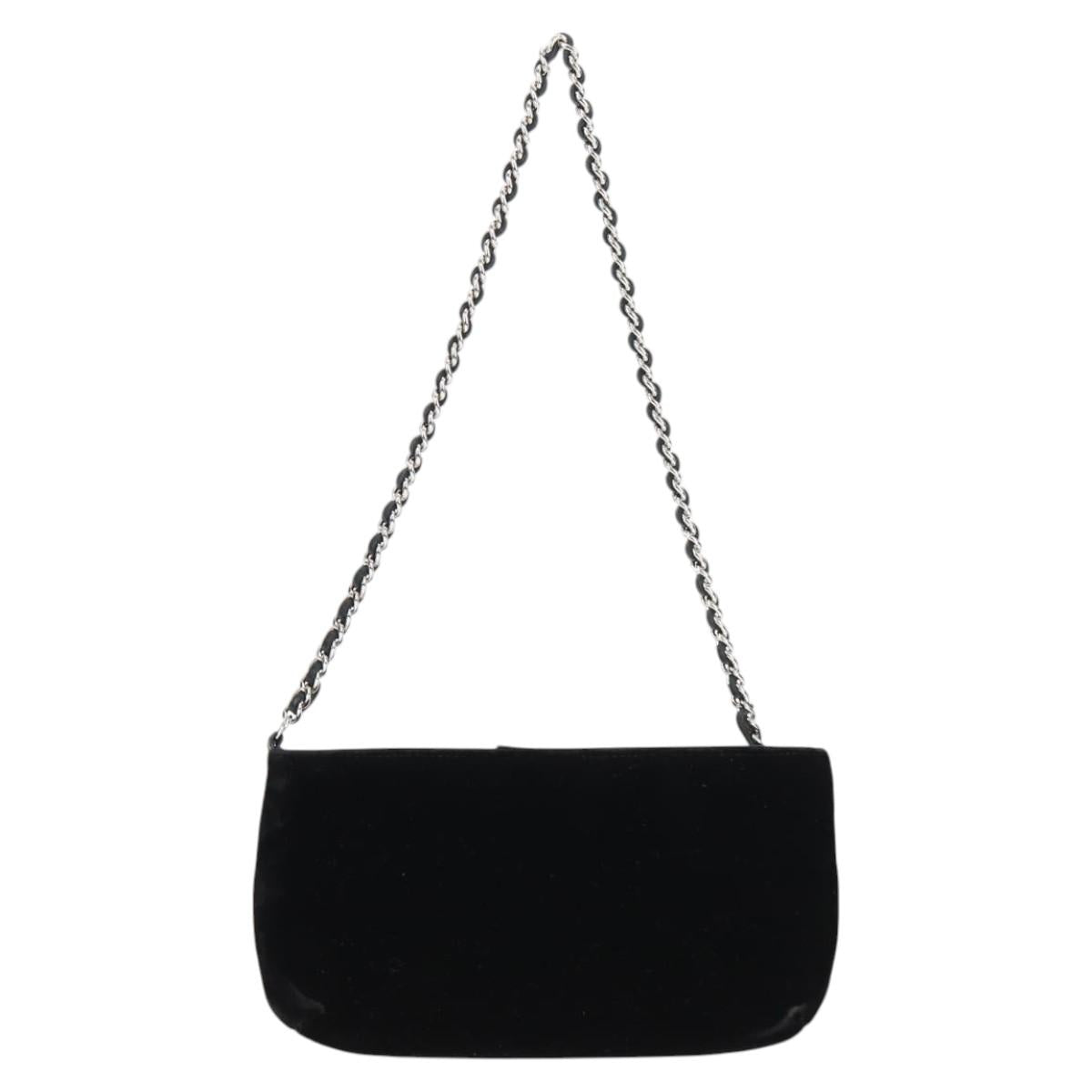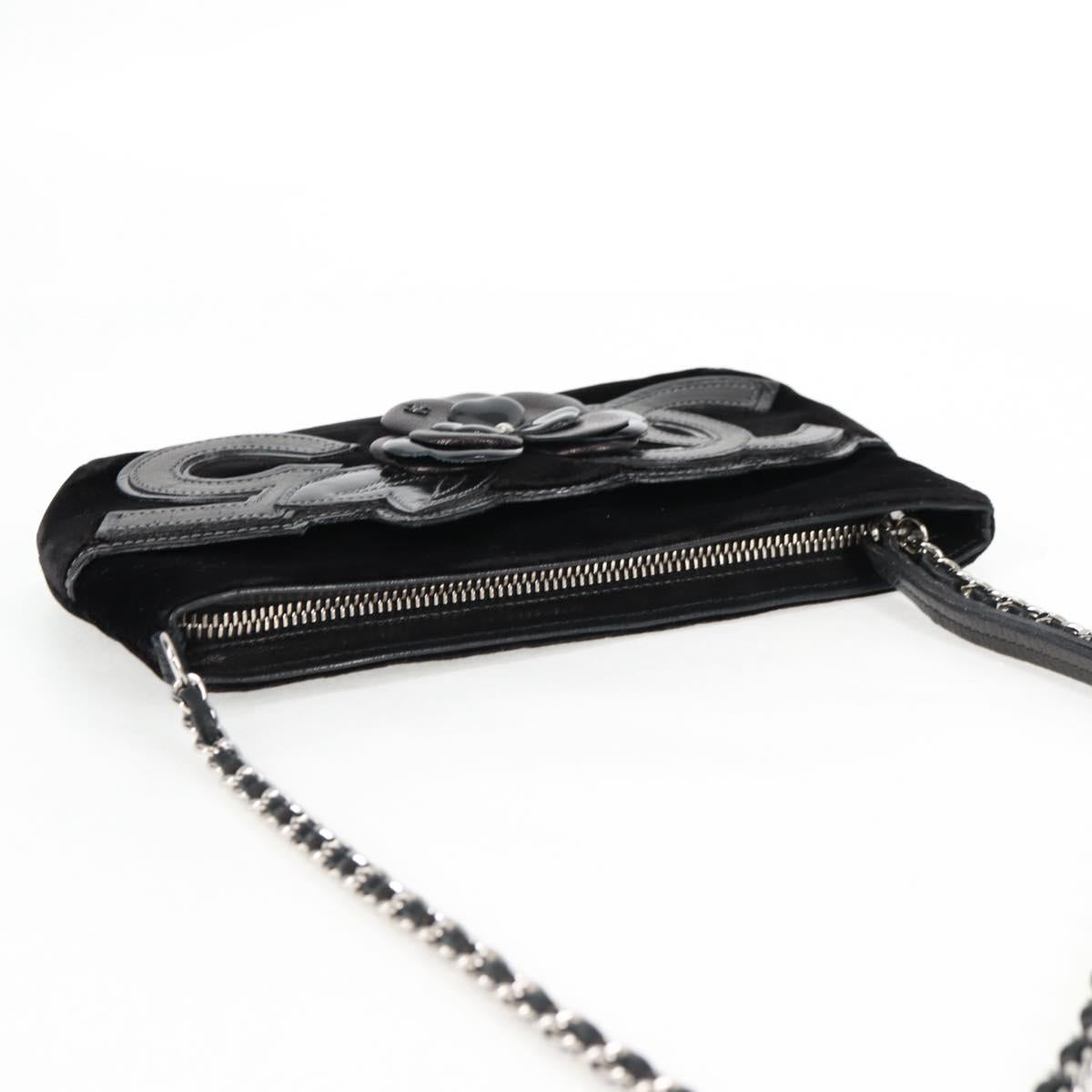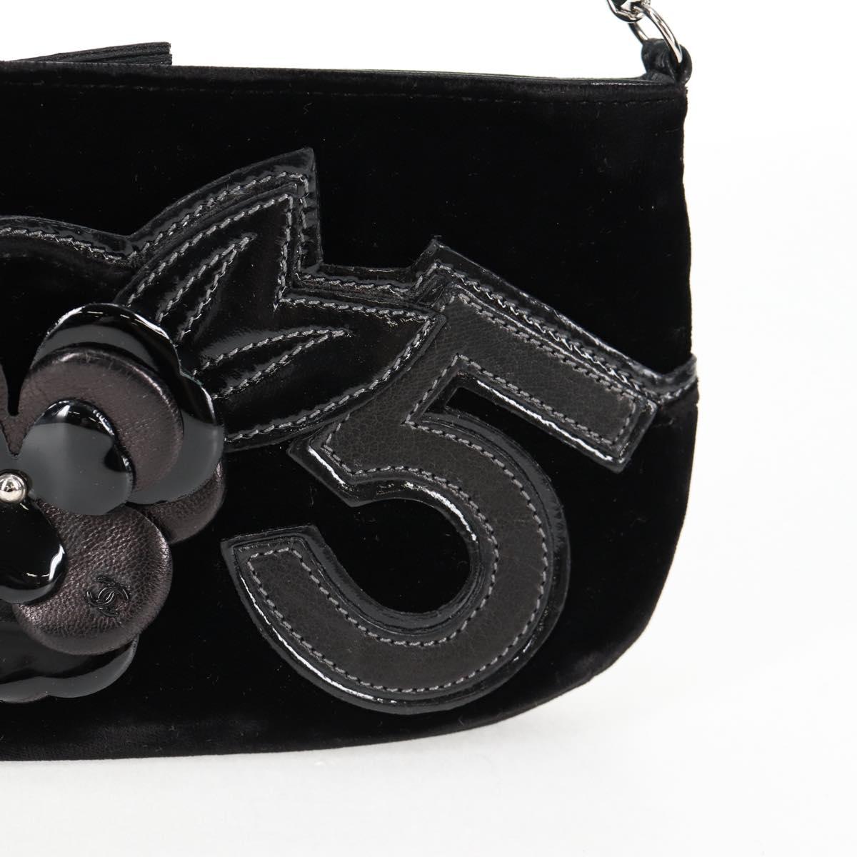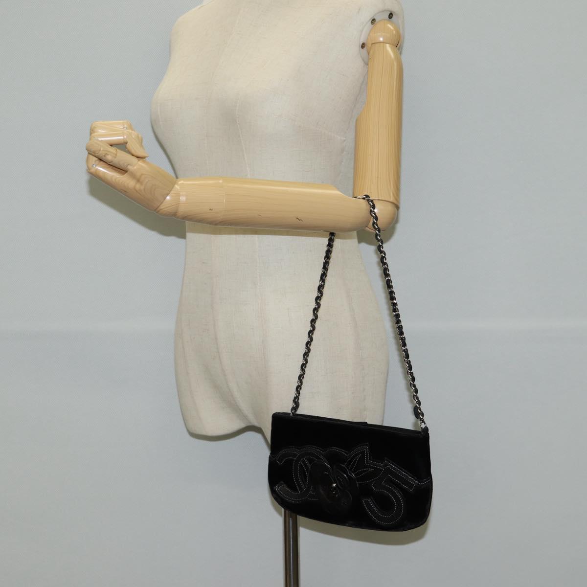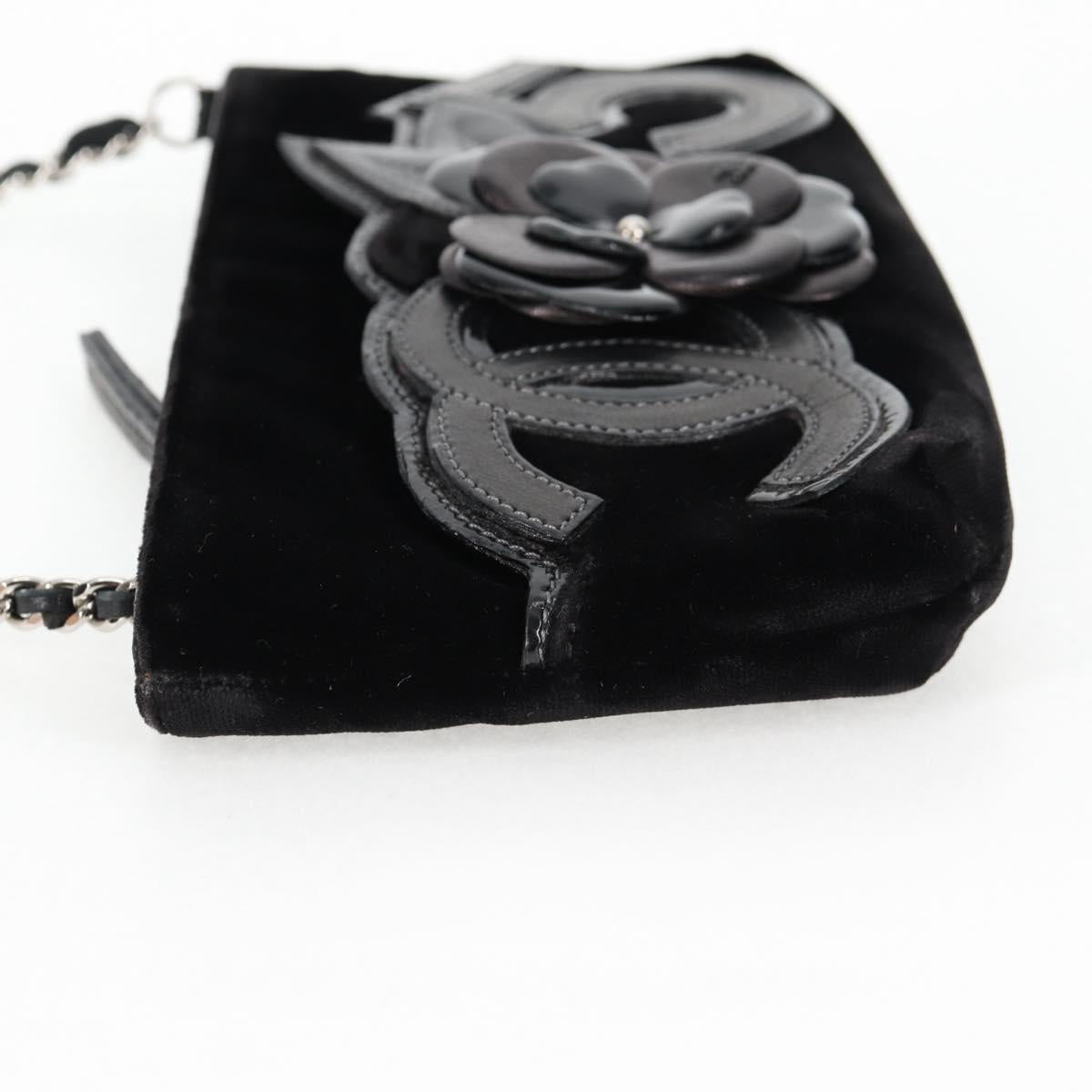 CHANEL Accessory Pouch Velor Black Gold CC Auth 125432AV