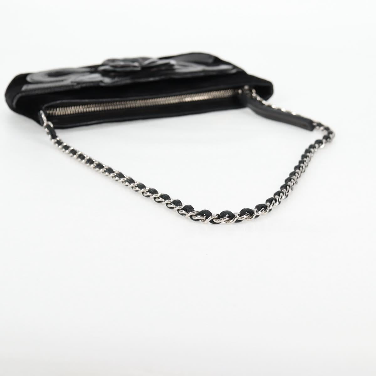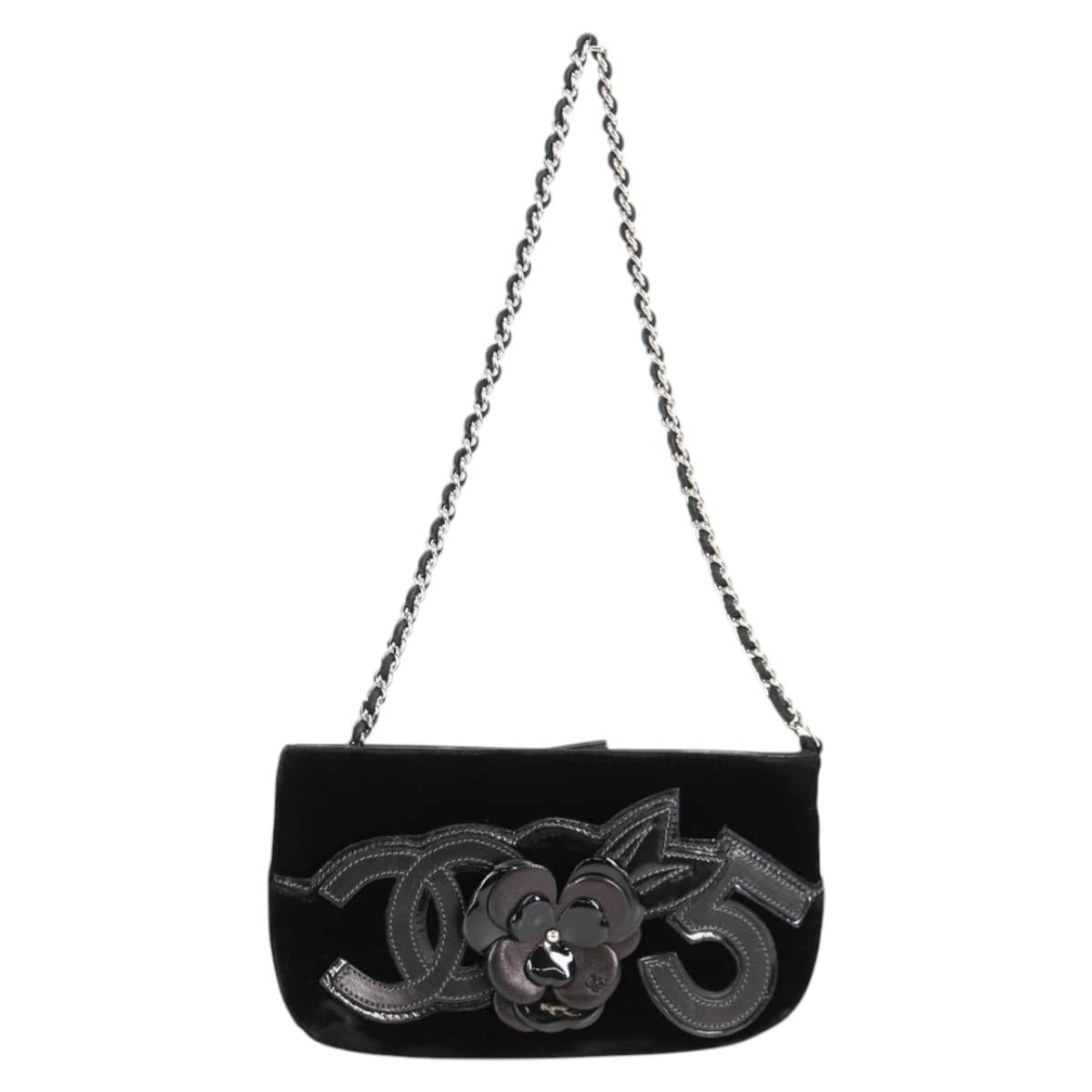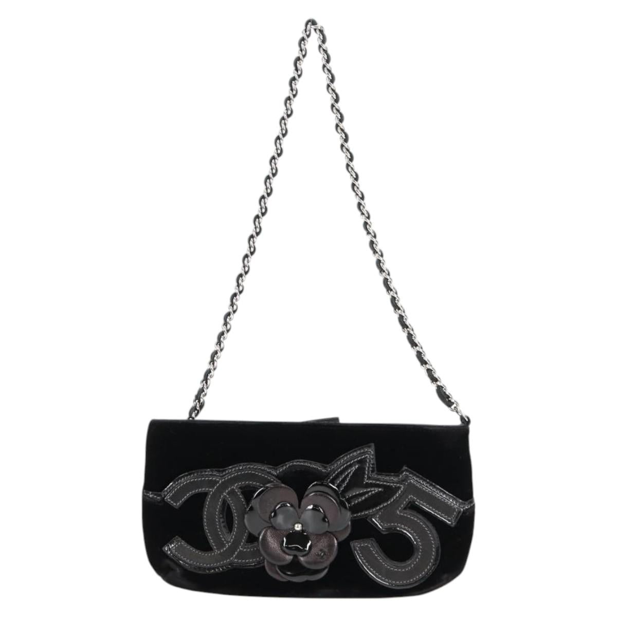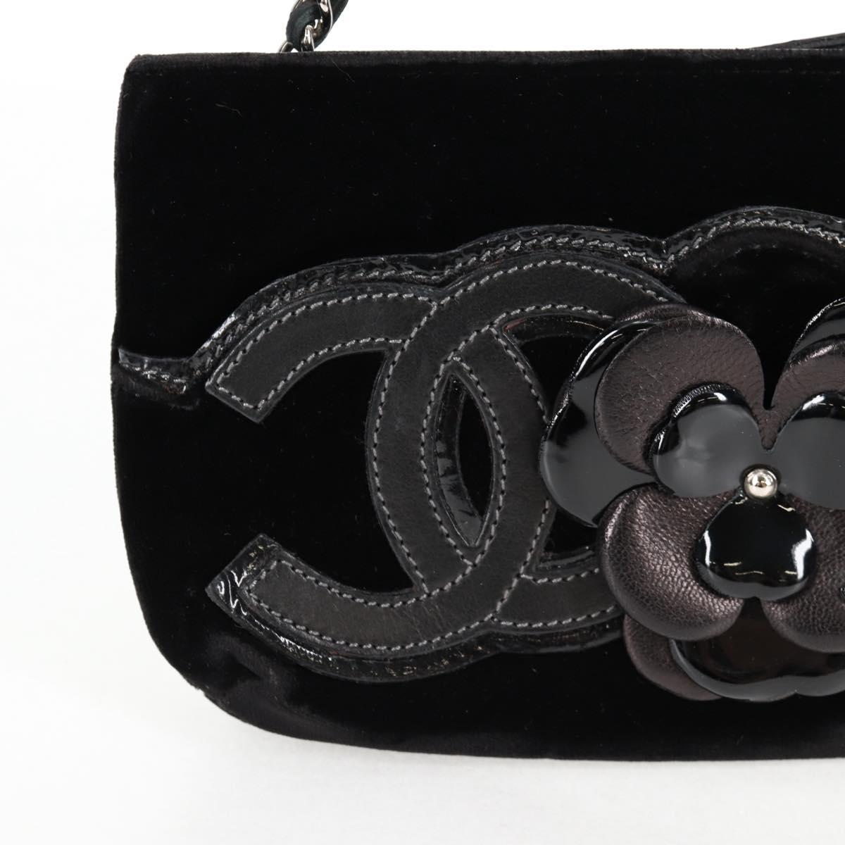 CHANEL Accessory Pouch Velor Black Gold CC Auth 125432AV