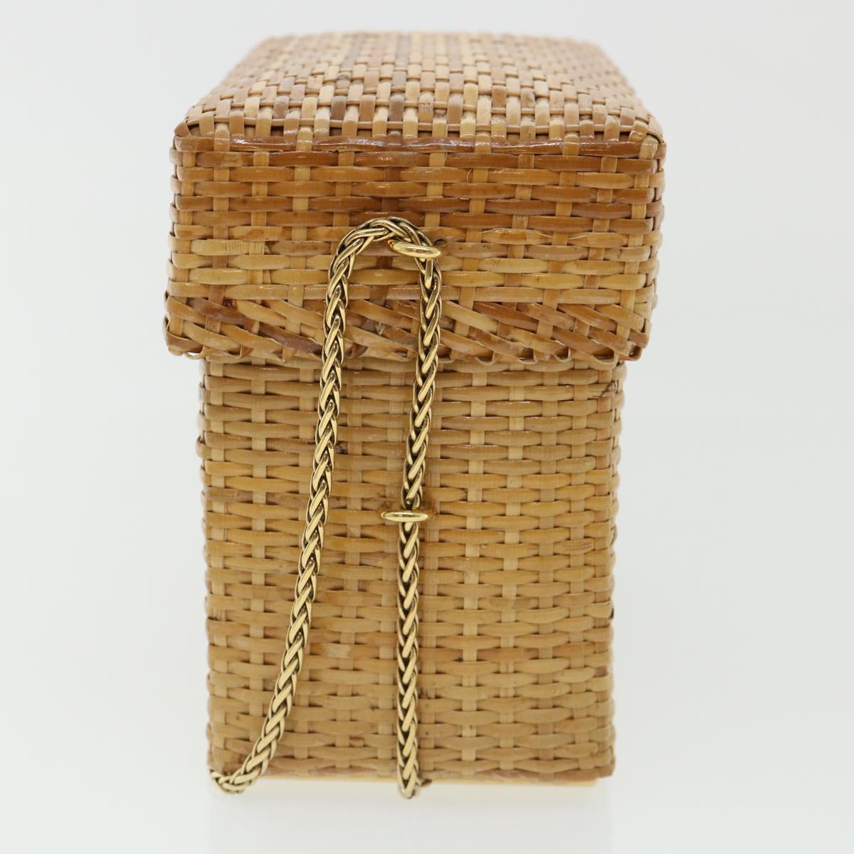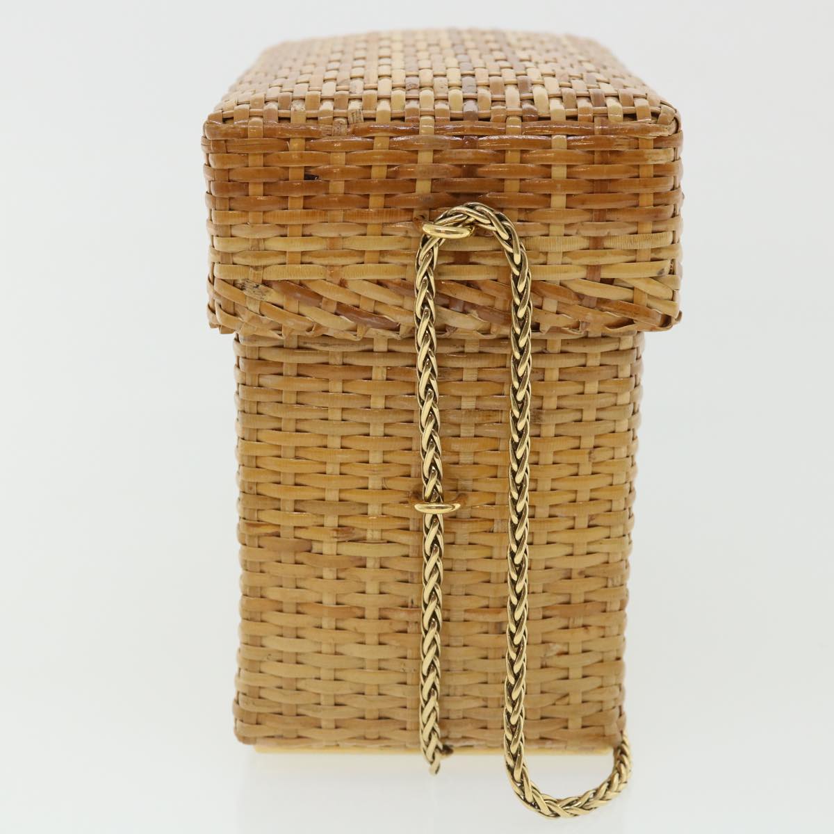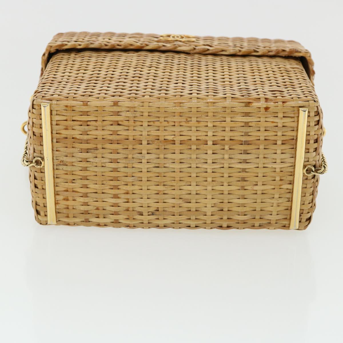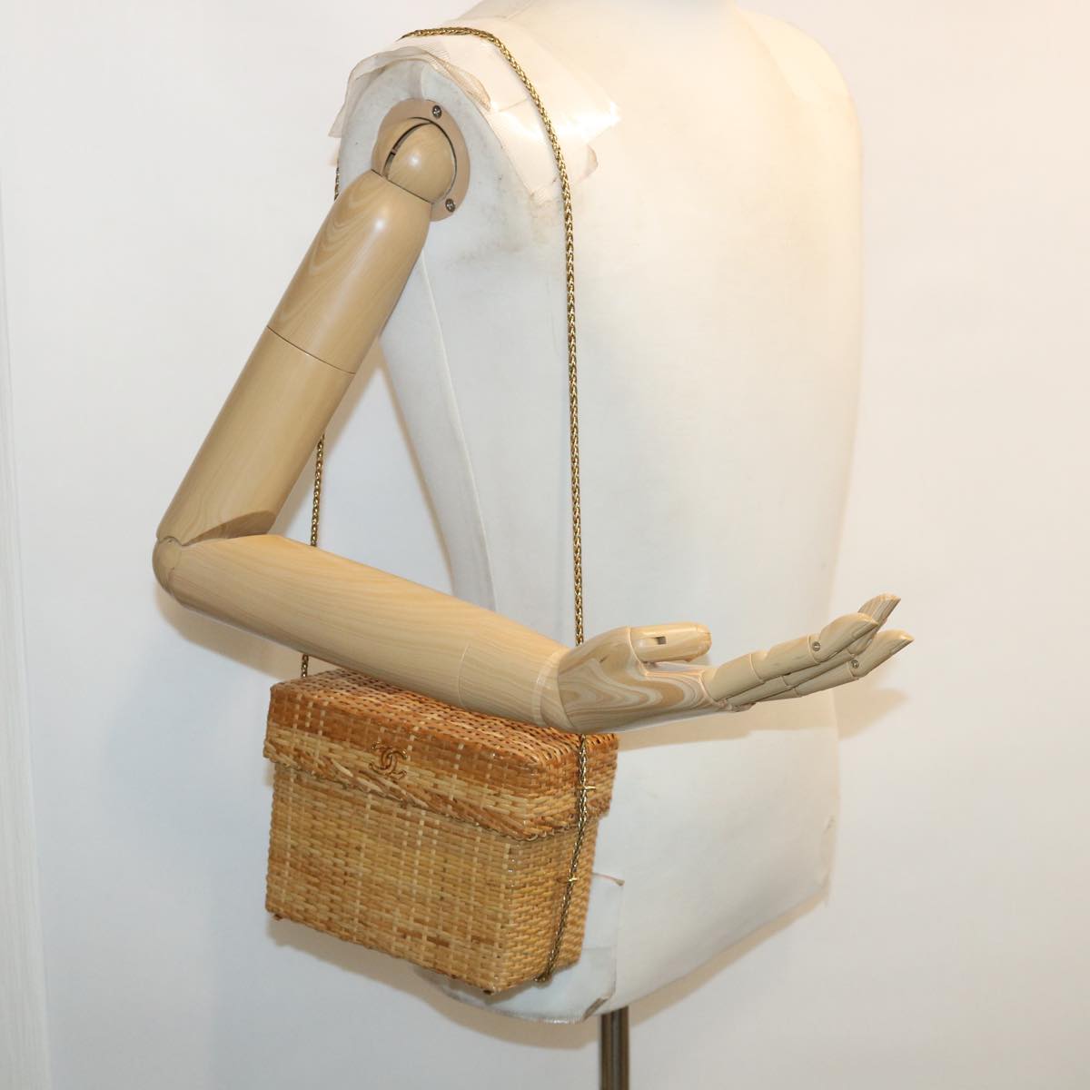 CHANEL Basket Chain Shoulder Bag Leather rattan Beige CC Auth 31932SM