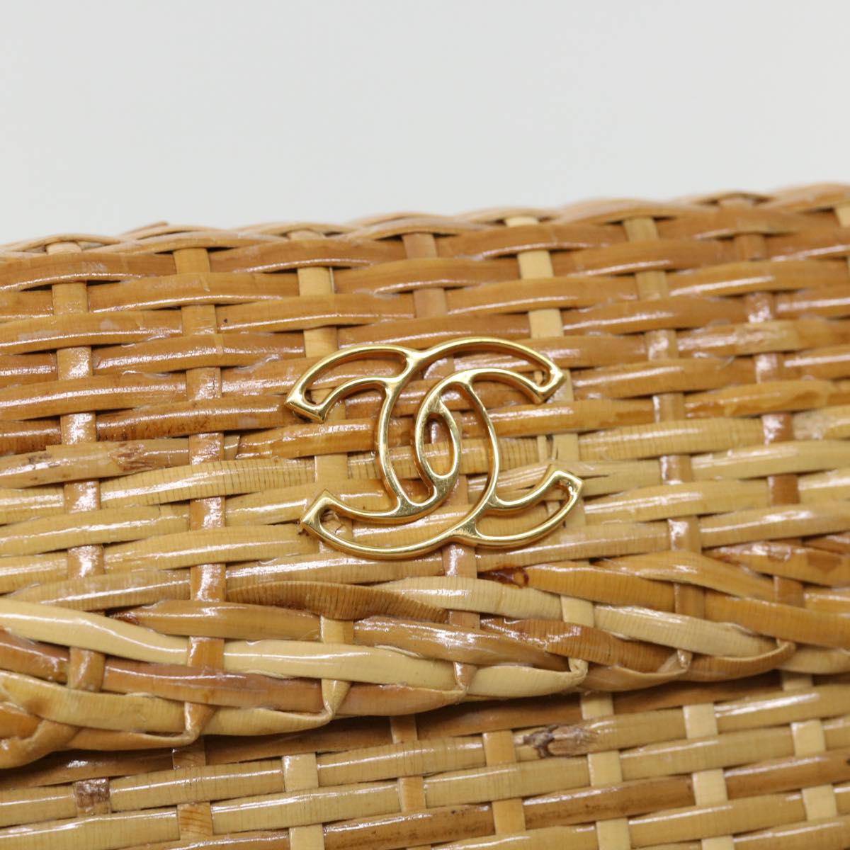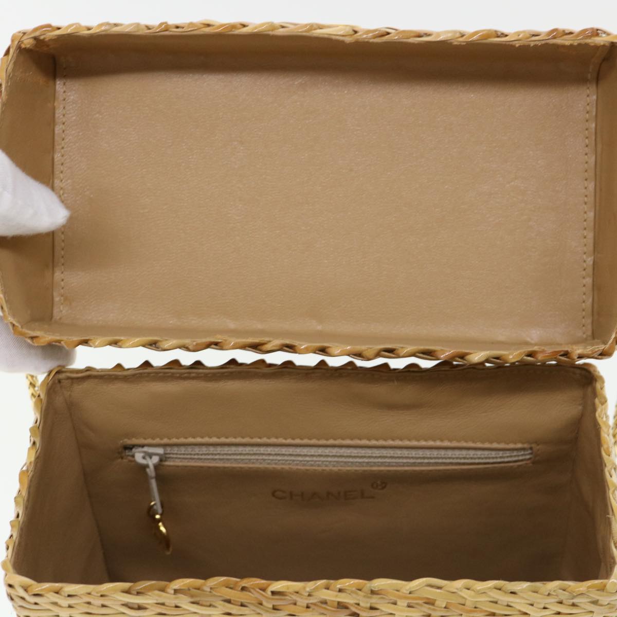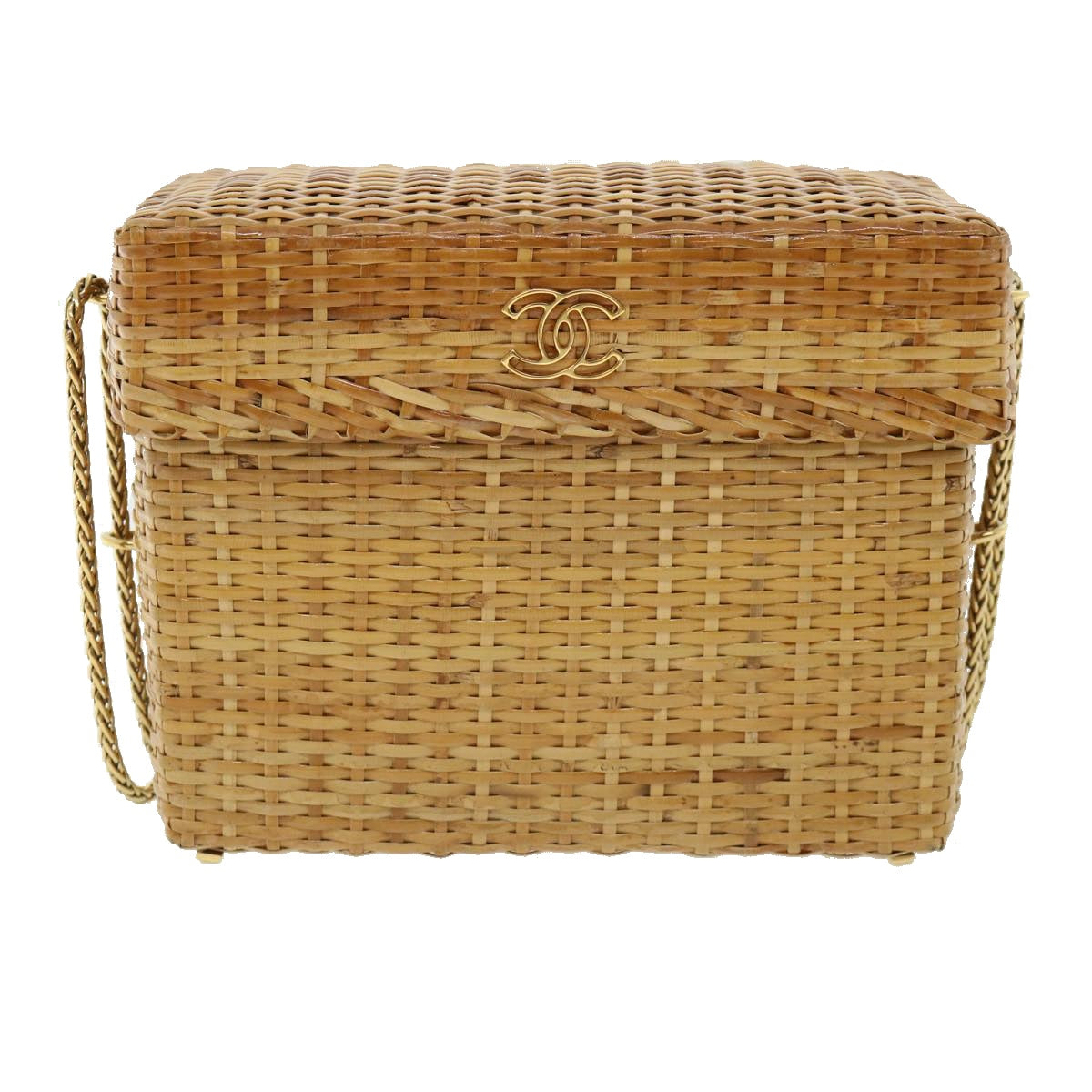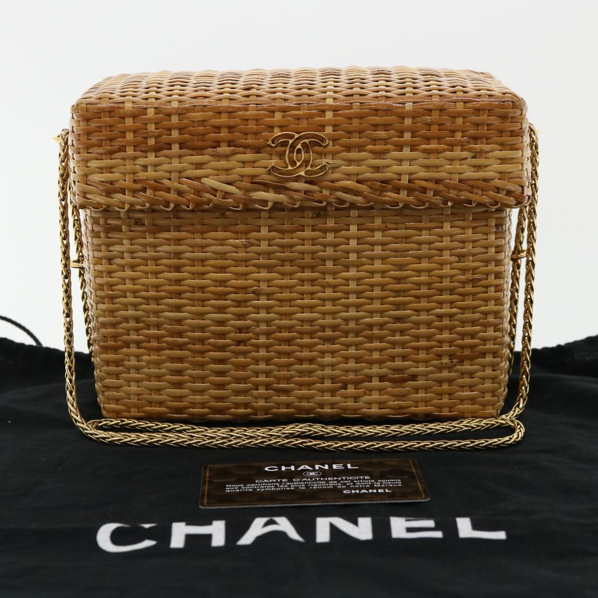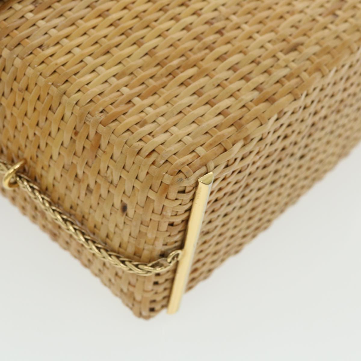 CHANEL Basket Chain Shoulder Bag Leather rattan Beige CC Auth 31932SM