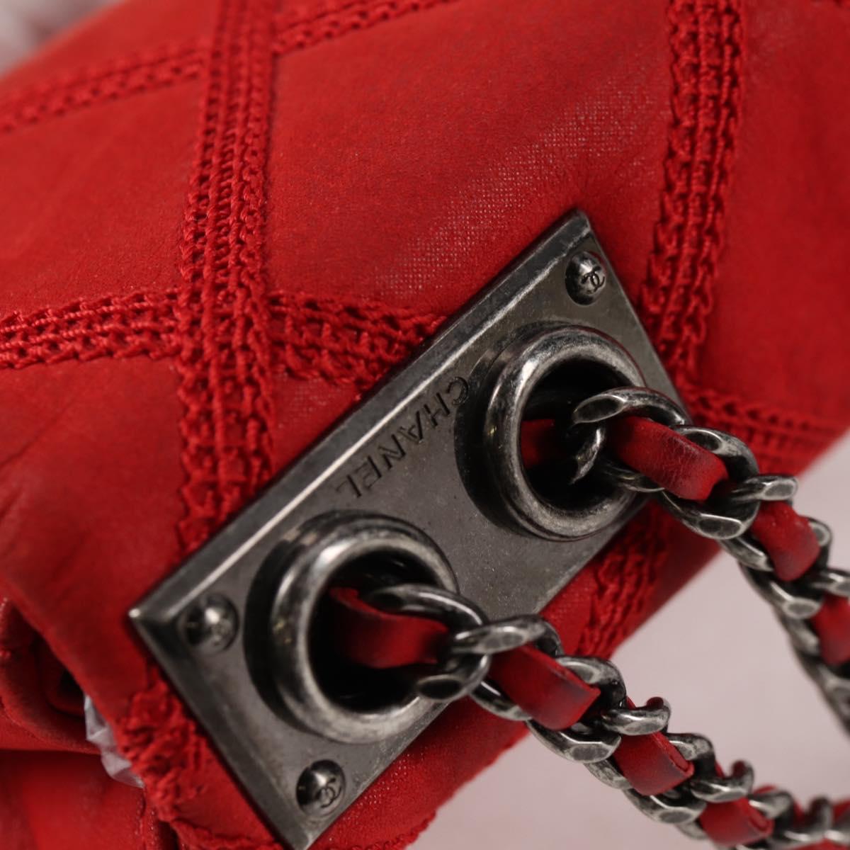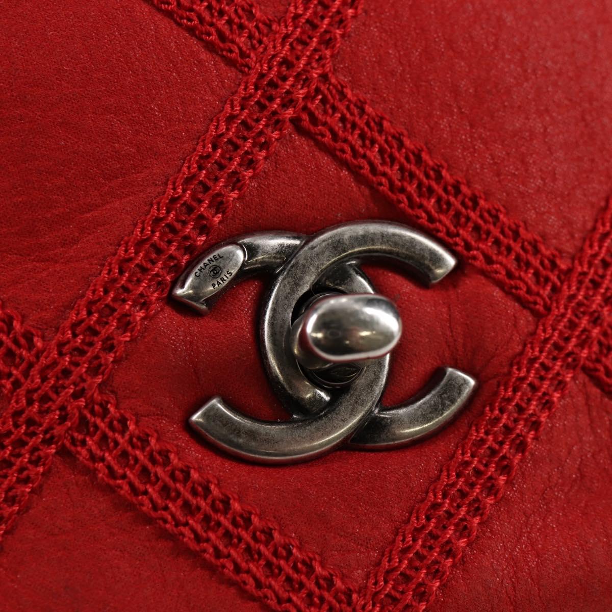 CHANEL Bicolore Chain Shoulder Bag Leather Red CC Auth BD2246V