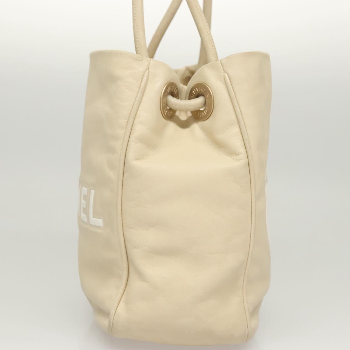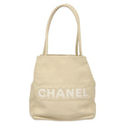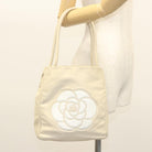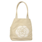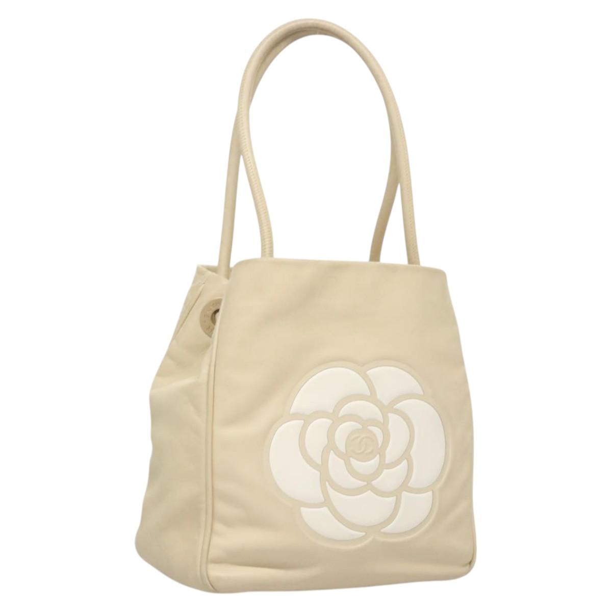 CHANEL Camelia COCO Mark Tote Bag Lamb Skin Beige CC Auth PP568V