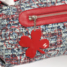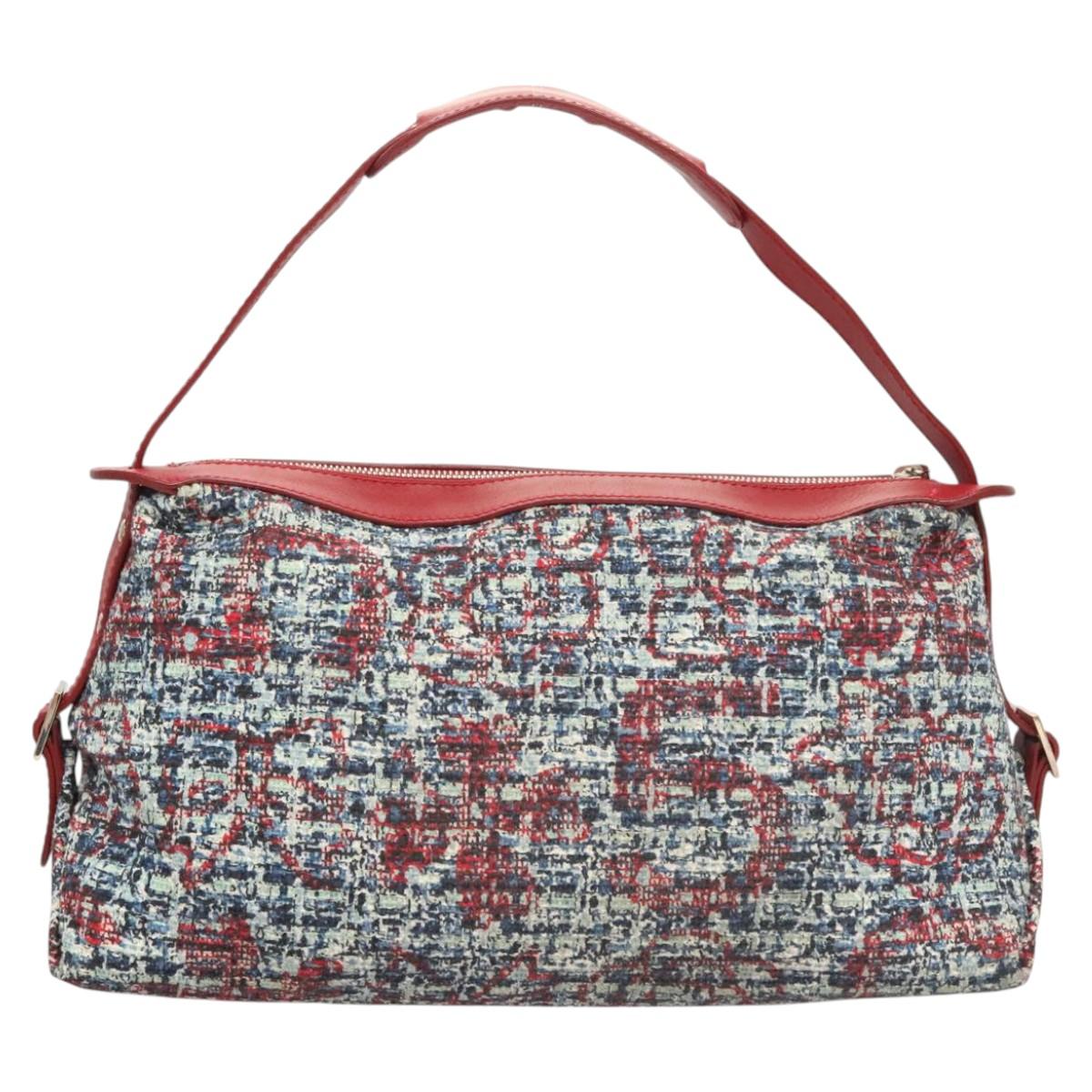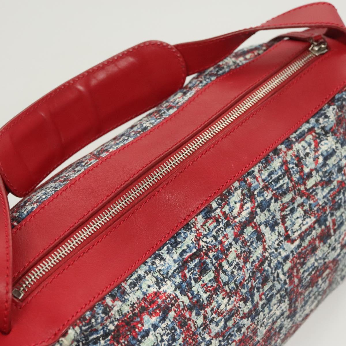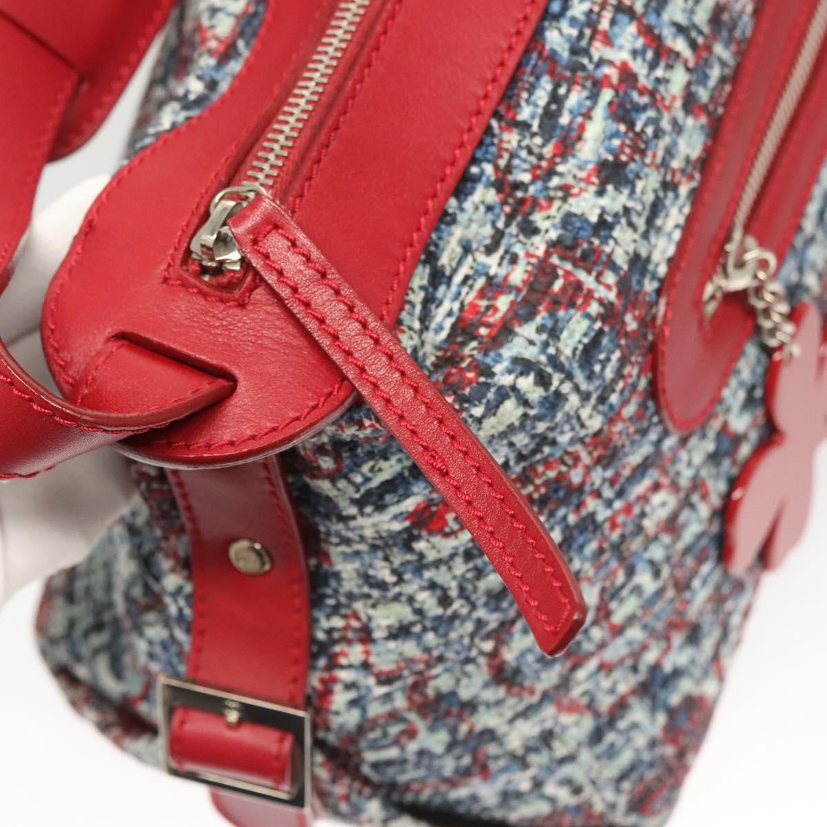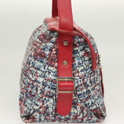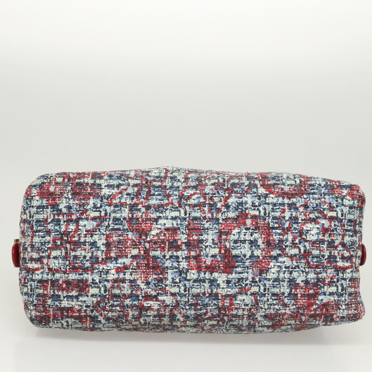 CHANEL Camelia Shoulder Bag tweed Red Blue Silver CC Auth 123554V