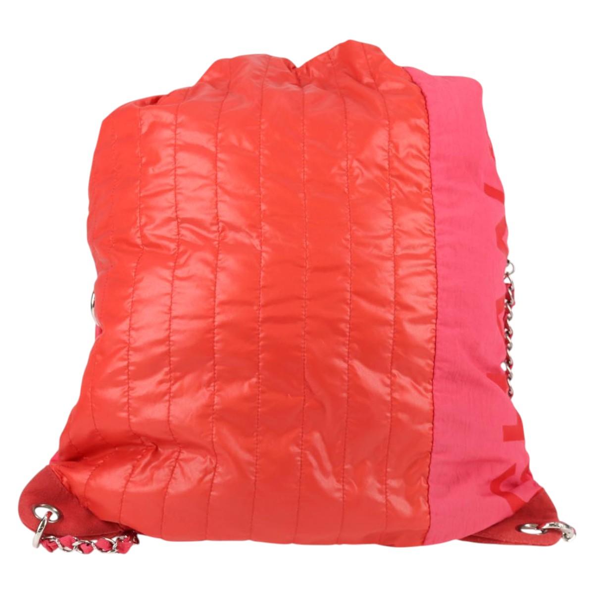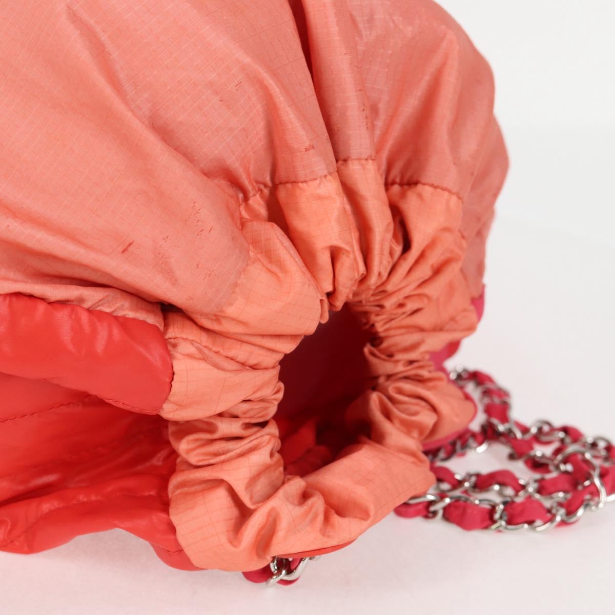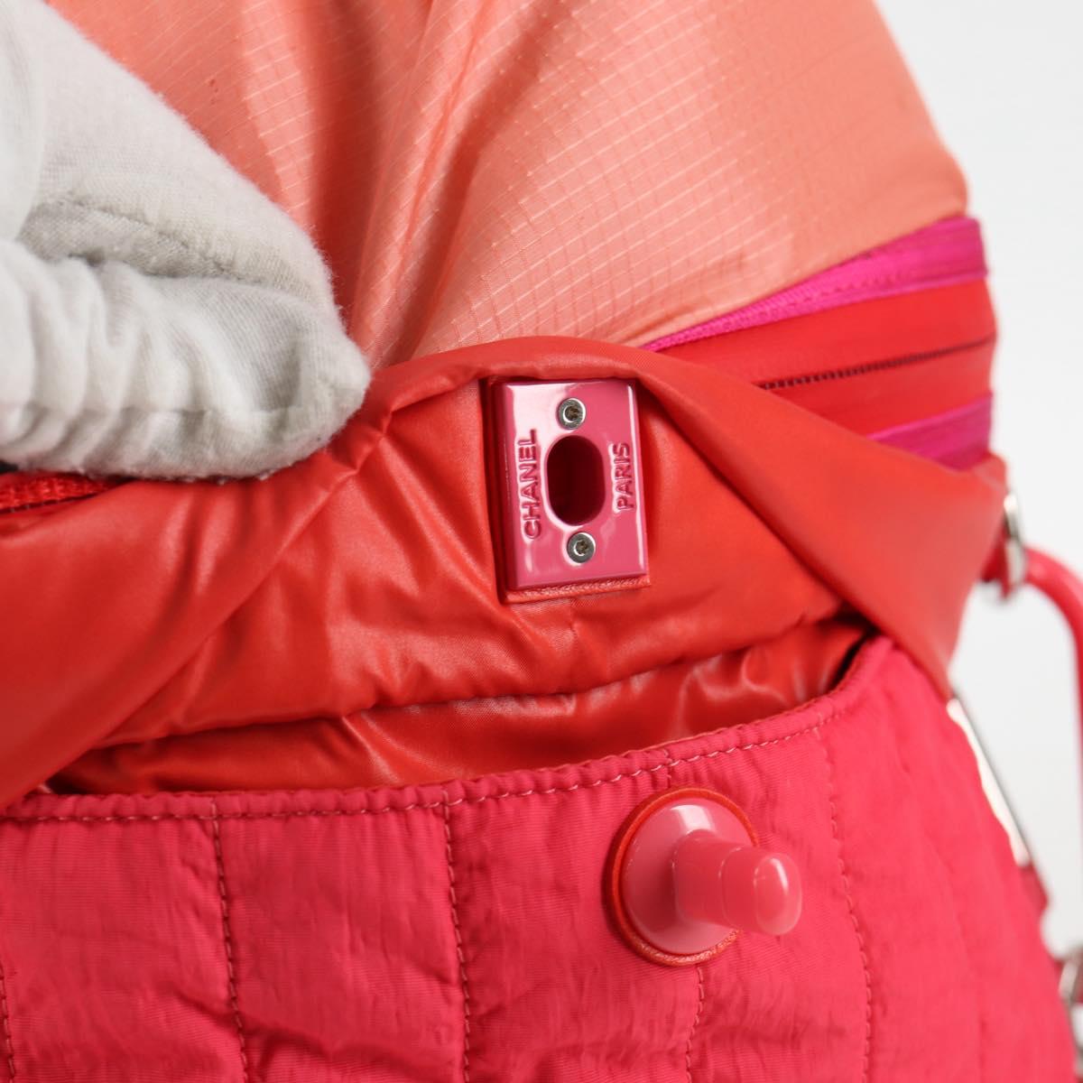 CHANEL Chain Backpack Nylon Pink Silver CC Auth 118138AM