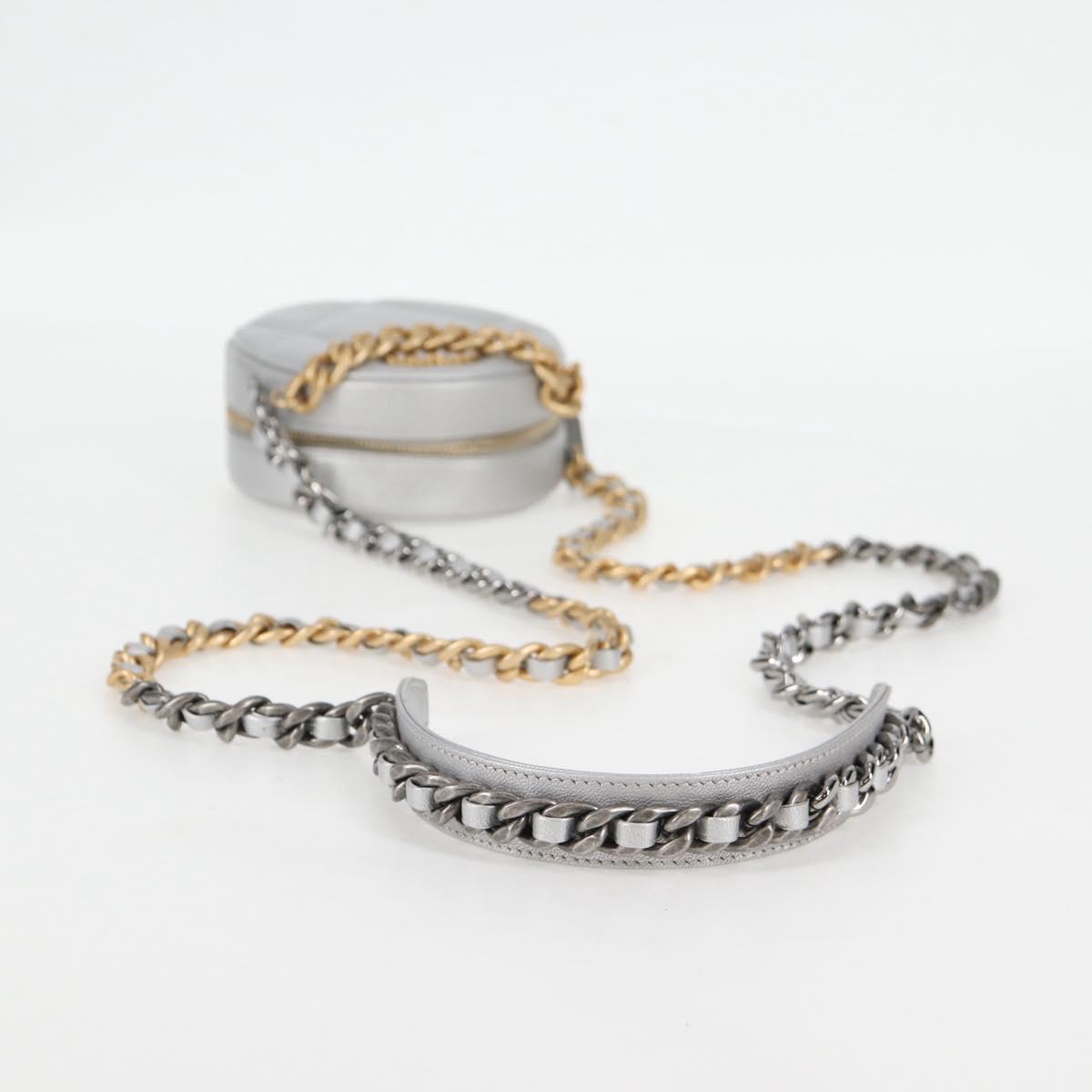 CHANEL Chain Chanel 19 Shoulder Bag Lamb Skin Gold Silver CC Auth fm4698M