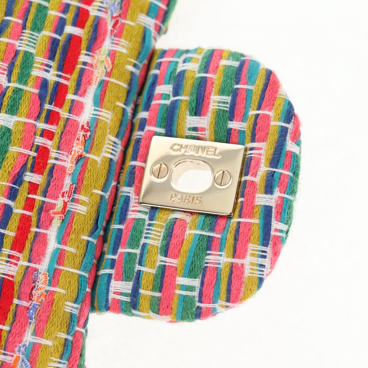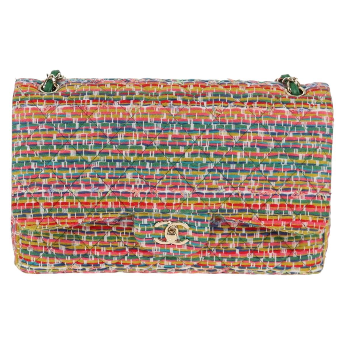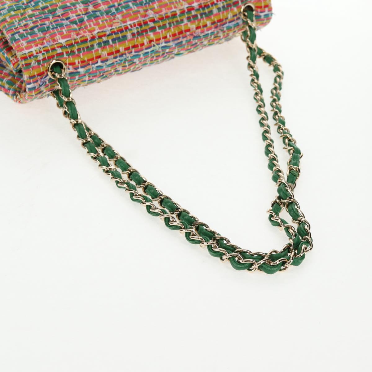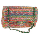 CHANEL Chain Double flap Big Matelasse Bag Cotton Multicolor CC Auth 128941SM