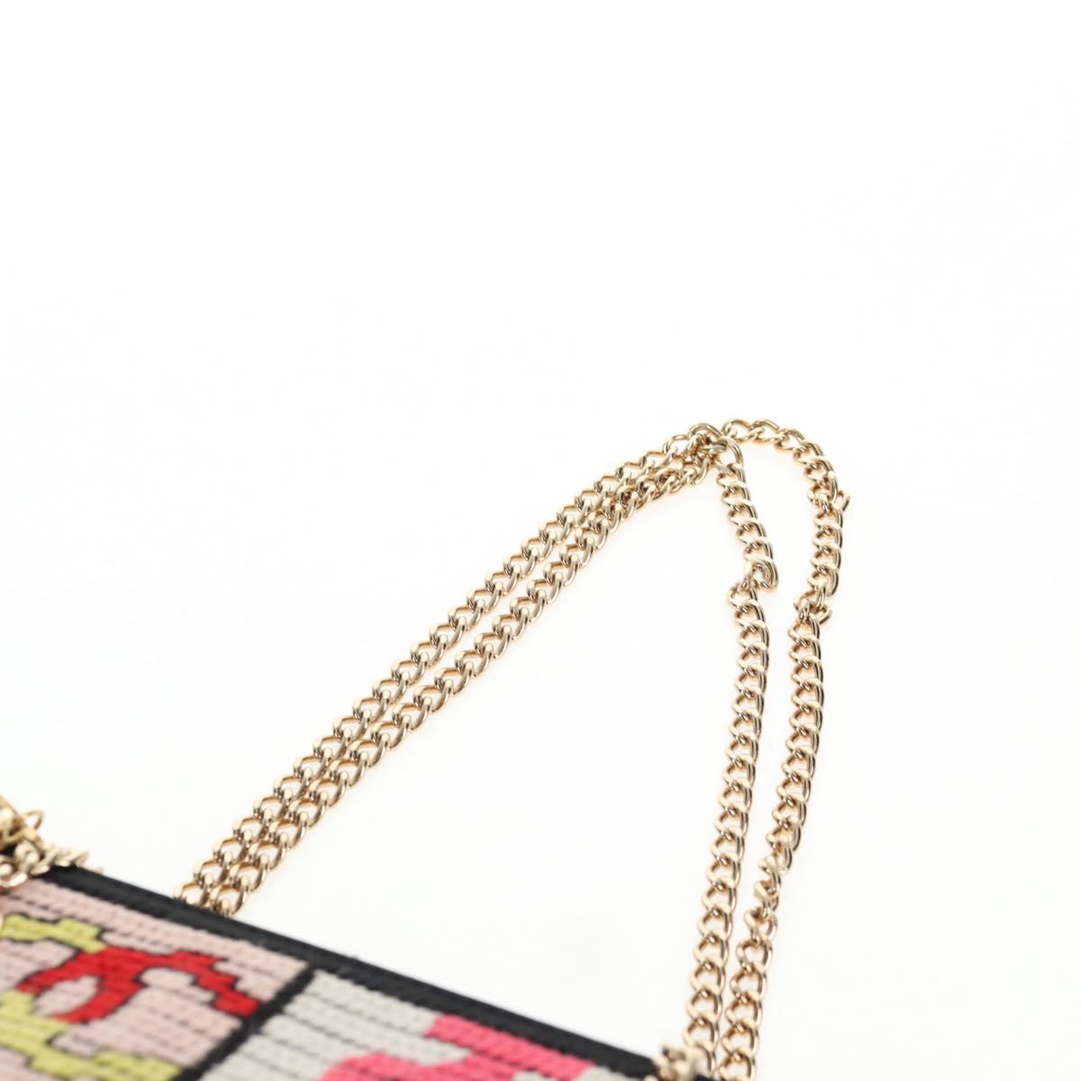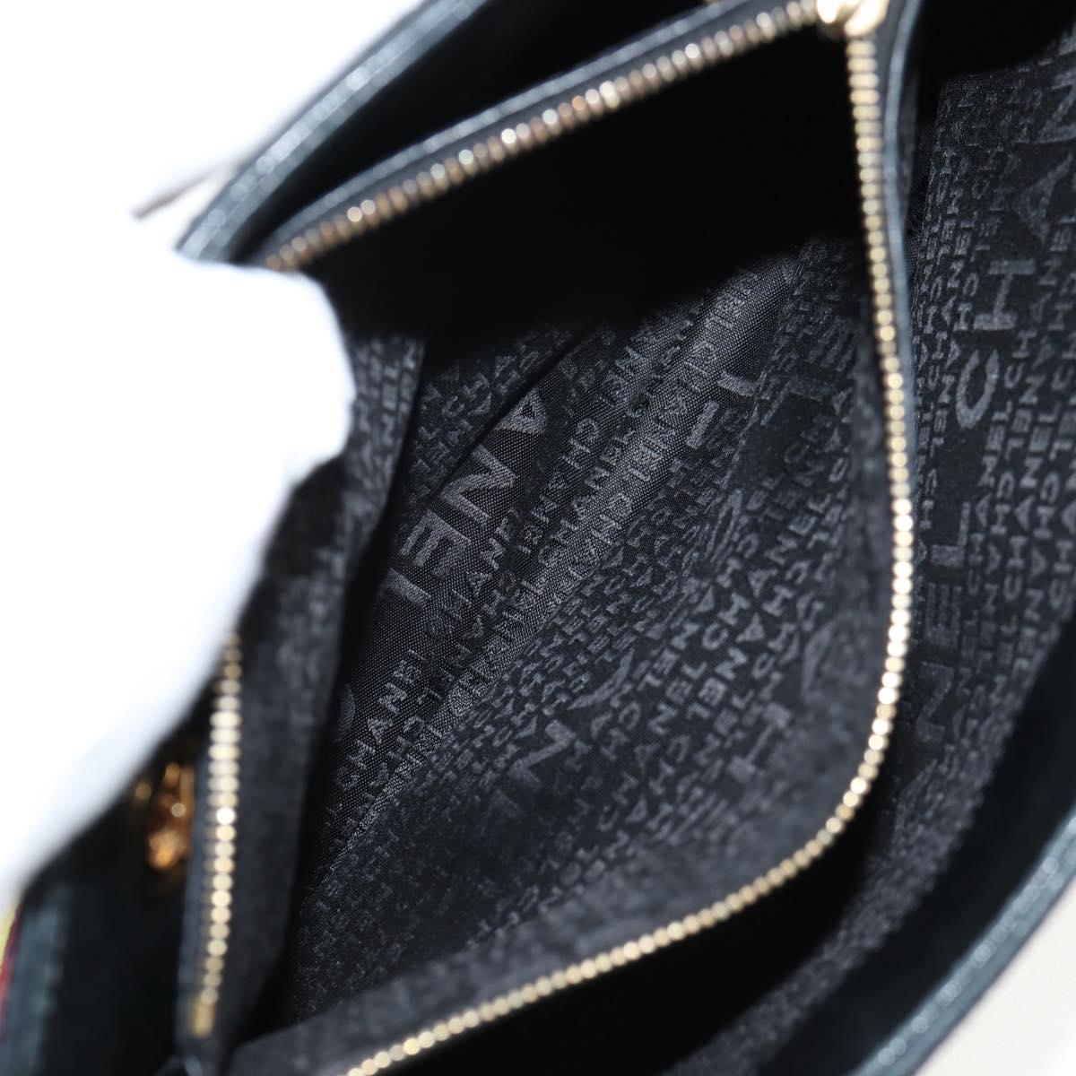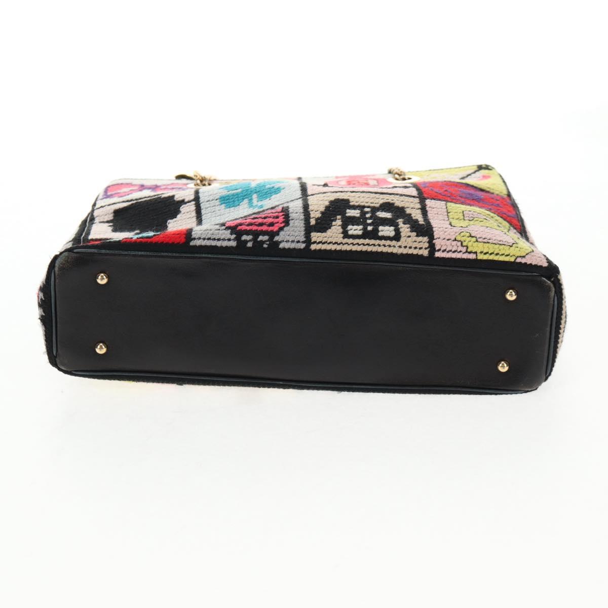 CHANEL Chain Icon Motif Bag Wool Leather Multicolor Gold CC Auth 130674M