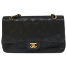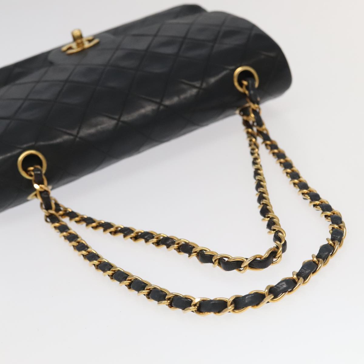 CHANEL Chain Matelasse 25 Shoulder Bag Lamb Skin Black Gold CC Auth PP032AV