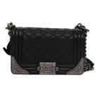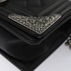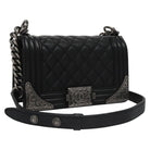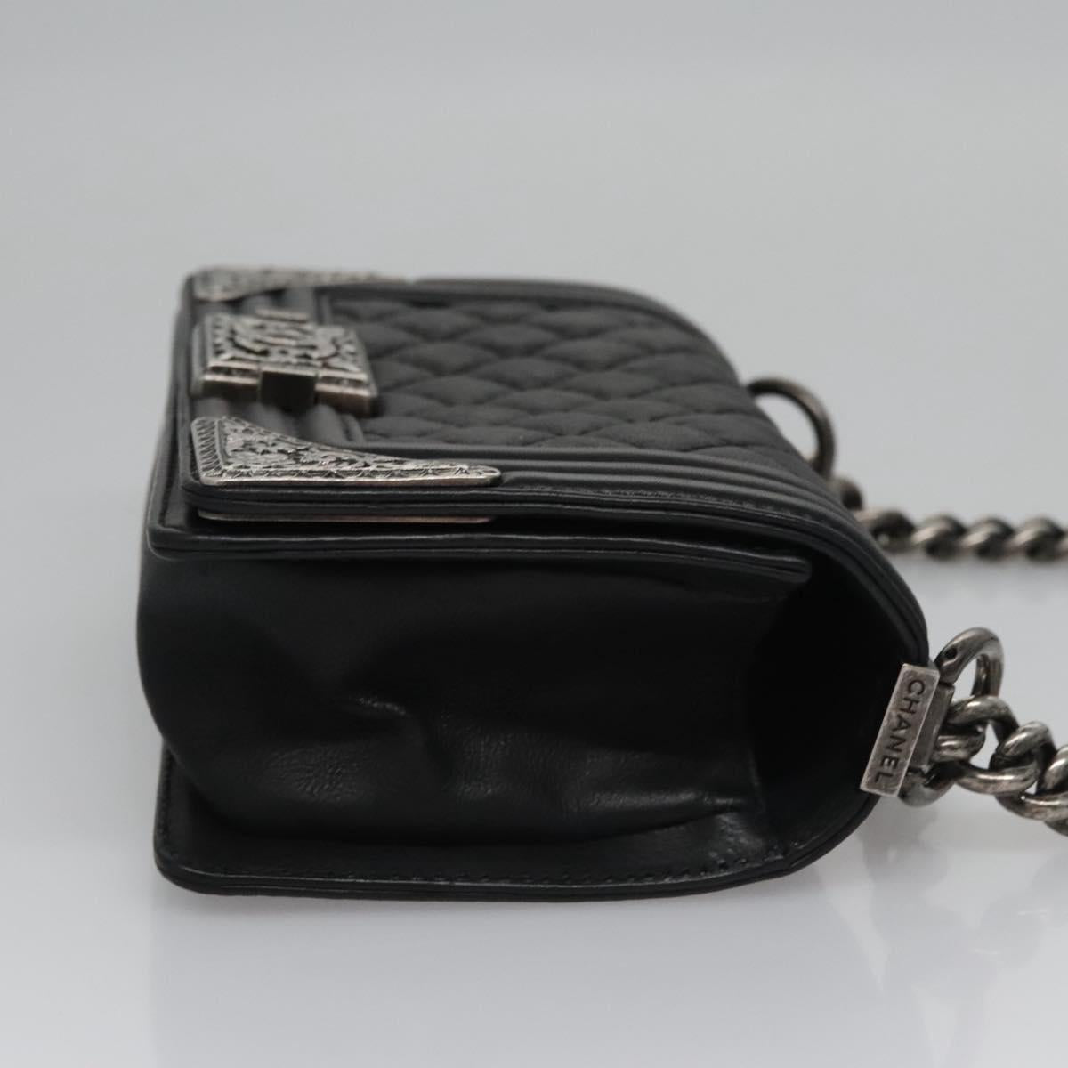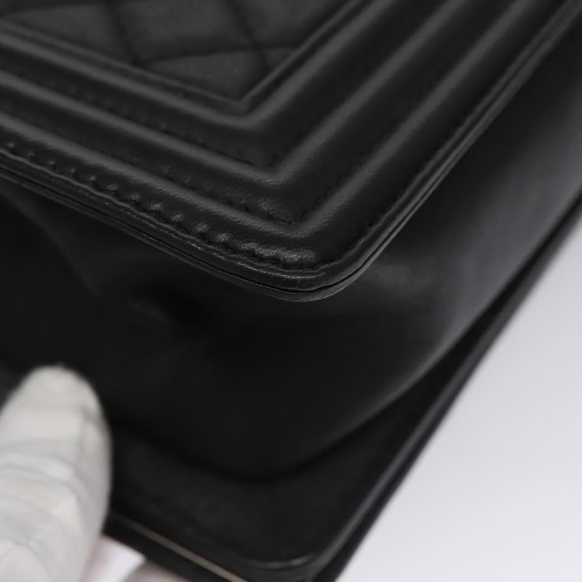 CHANEL Chain Matelasse Boy Chanel Shoulder Bag Lamb Skin Black CC Auth BA244S