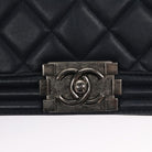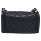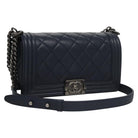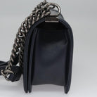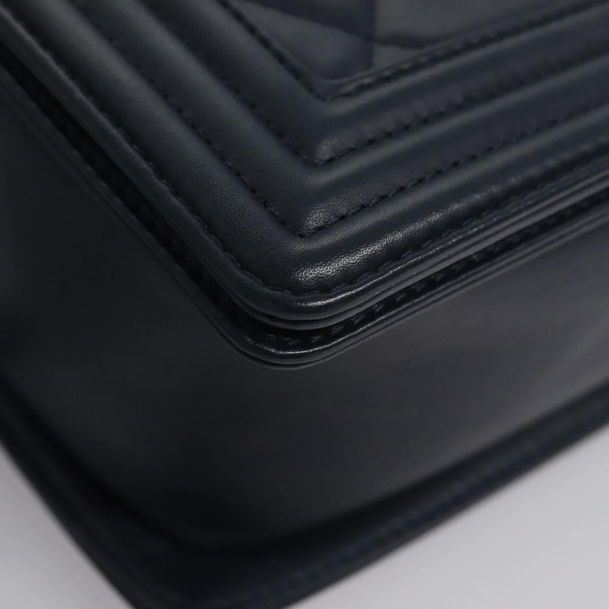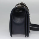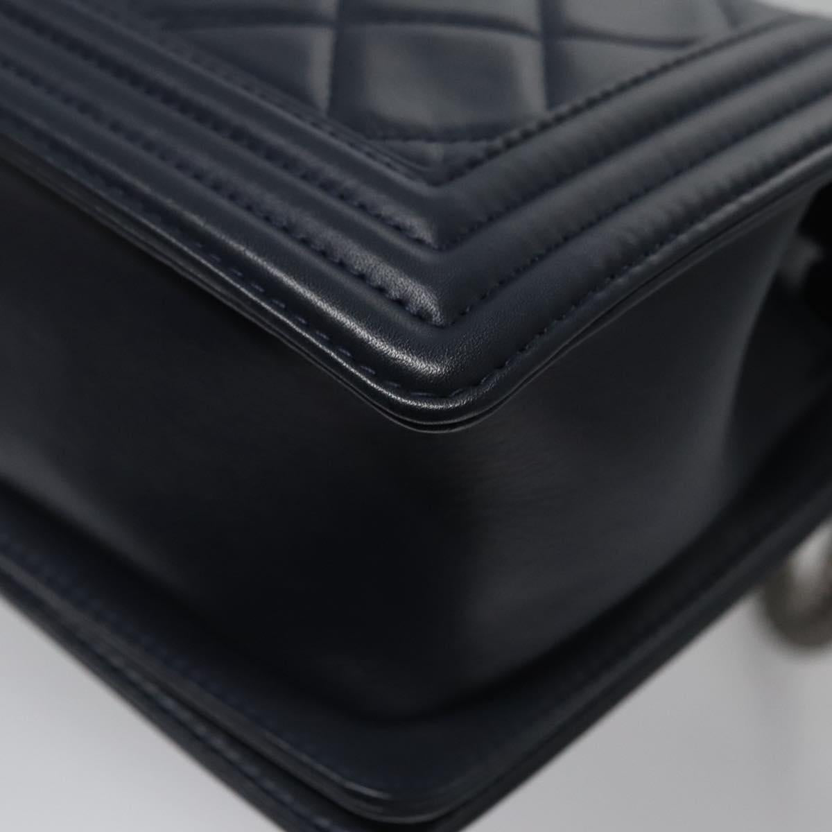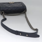CHANEL Chain Matelasse Boy Chanel Shoulder Bag Lamb Skin Navy CC Auth BA246AM