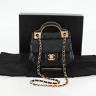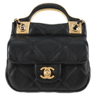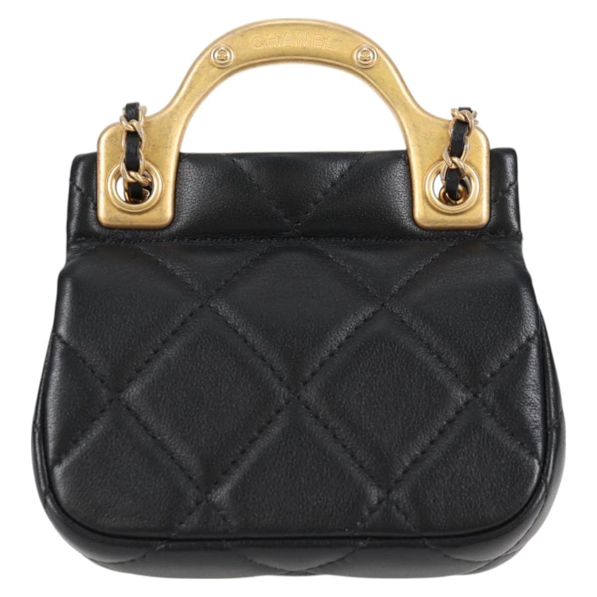 CHANEL Chain Pouch Shoulder Bag Lamb Skin Black Gold CC Auth 128104SM