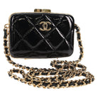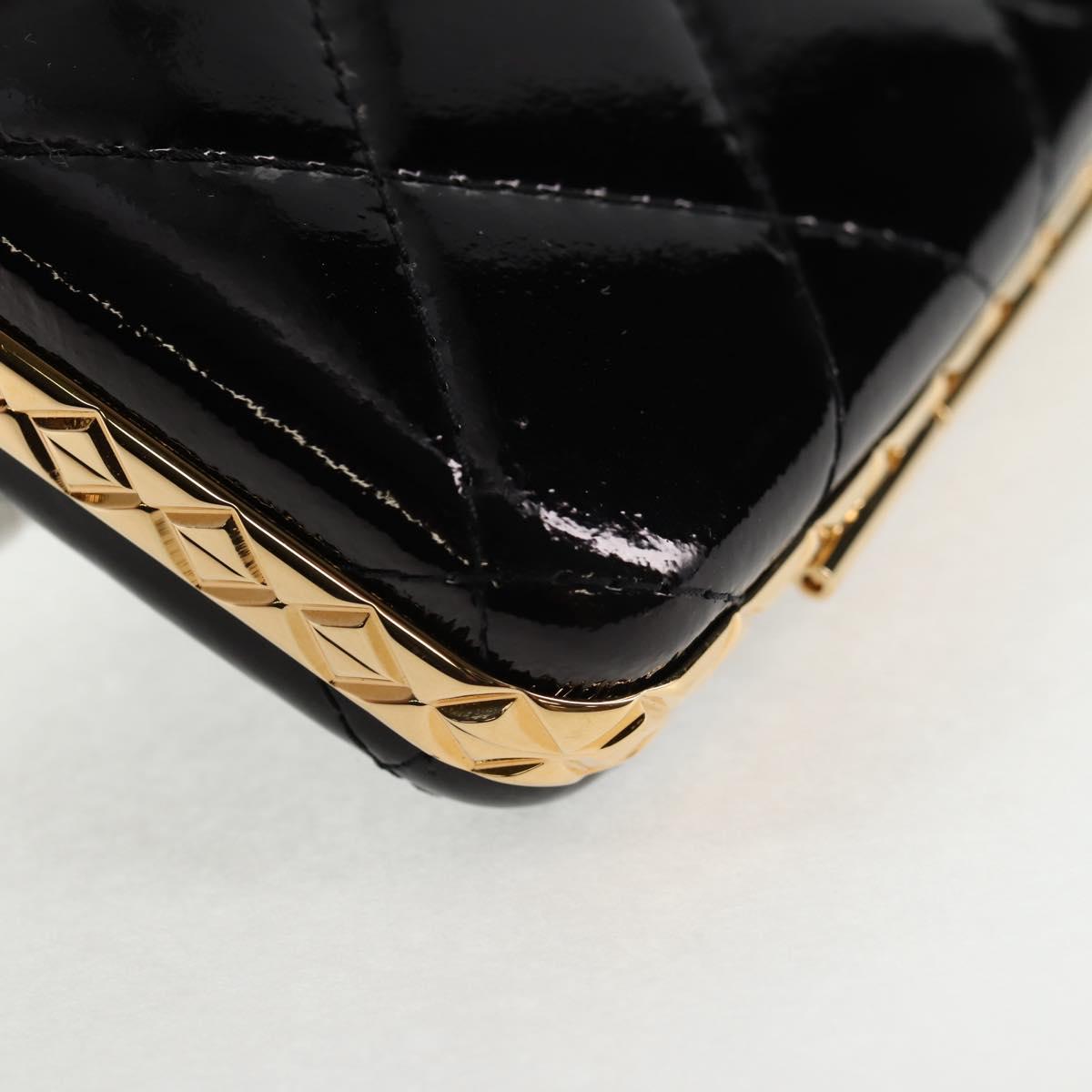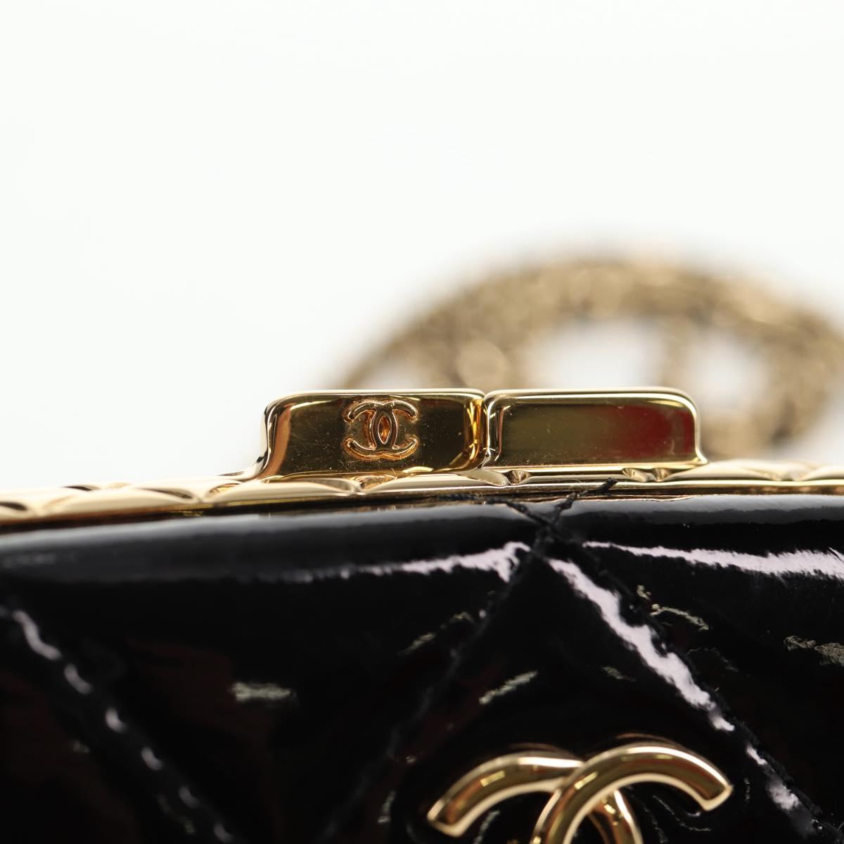 CHANEL Chain Shoulder Bag Patent leather Black Gold CC Auth 134911M