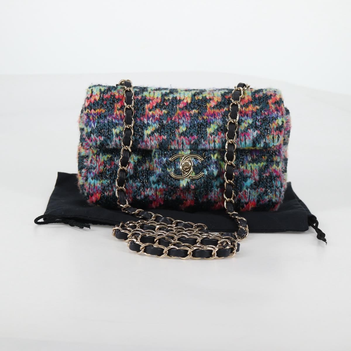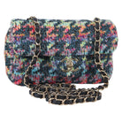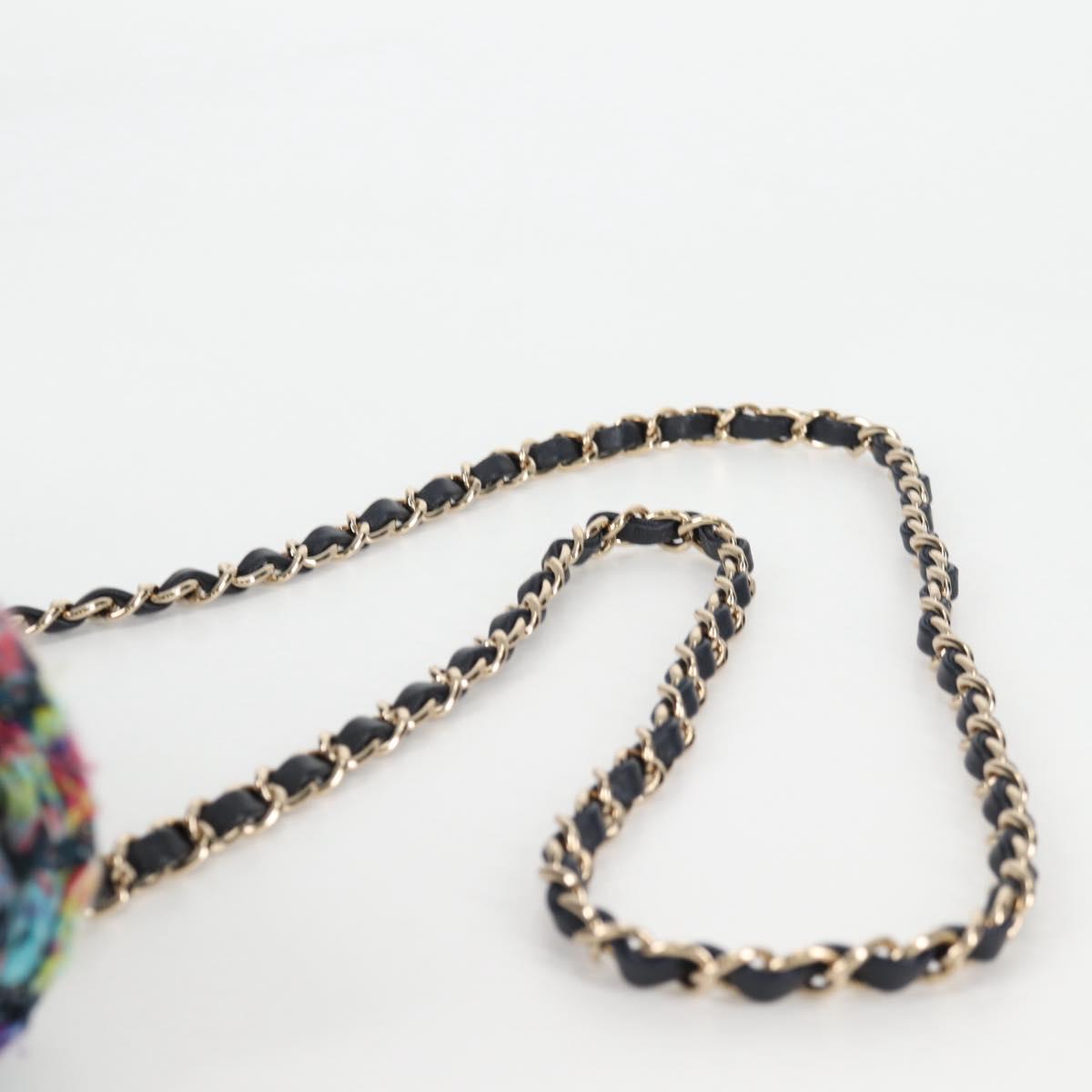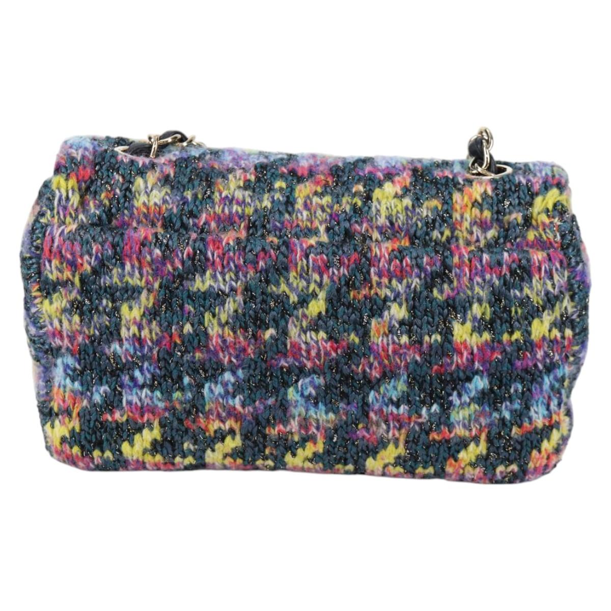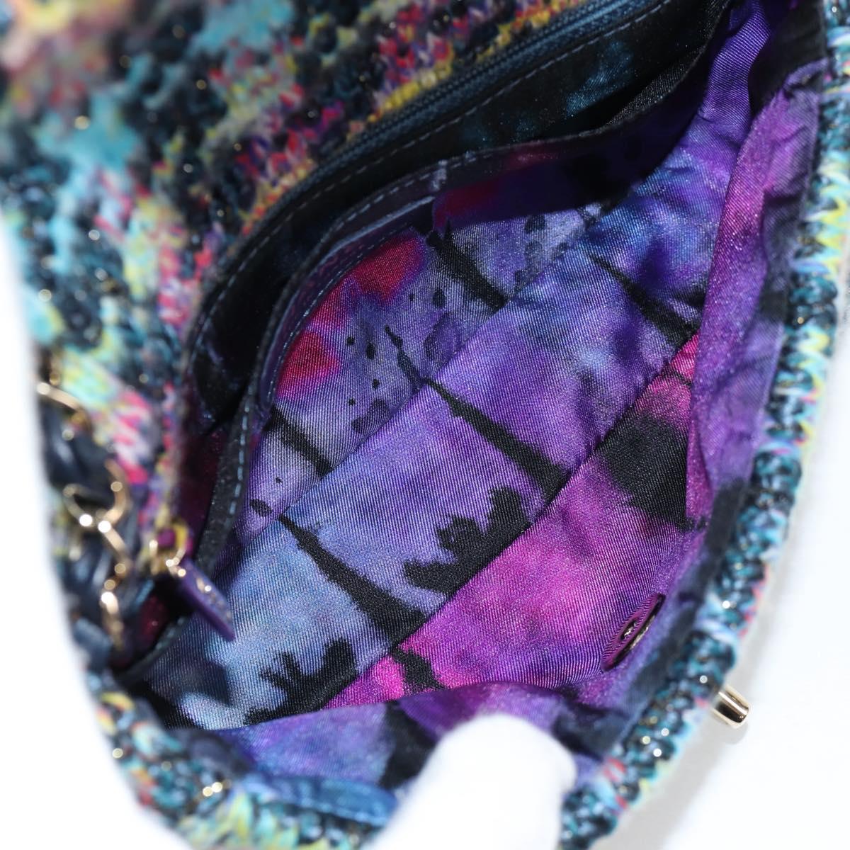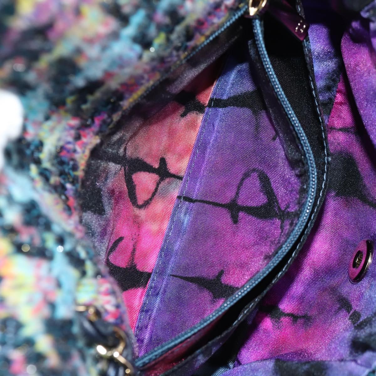 CHANEL Chain Shoulder Bag Tweed Blue Gold CC Auth 134856M