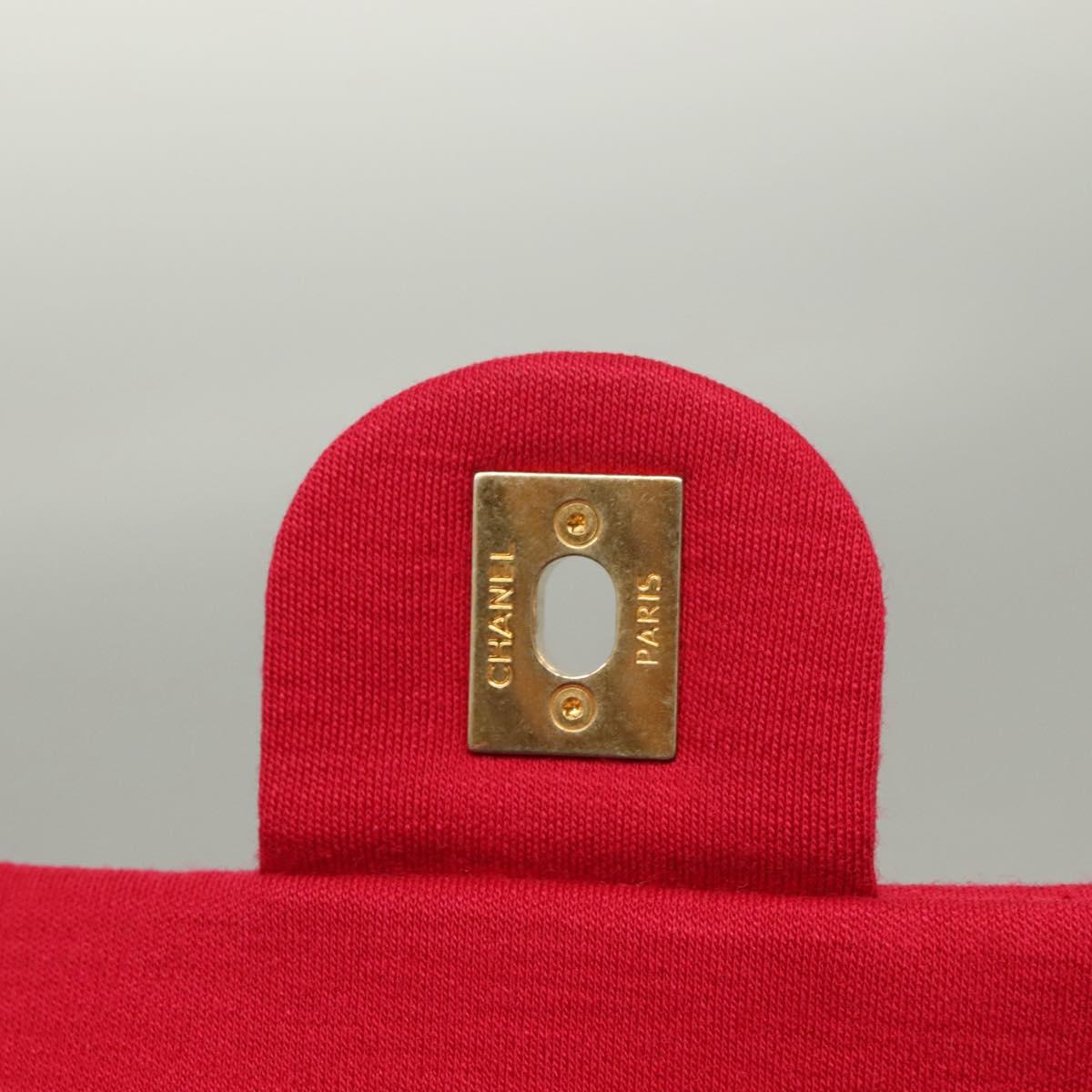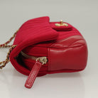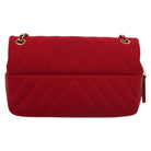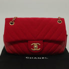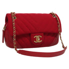 CHANEL Chain V Stitch Shoulder Bag Cotton Red Gold CC Auth 132418M