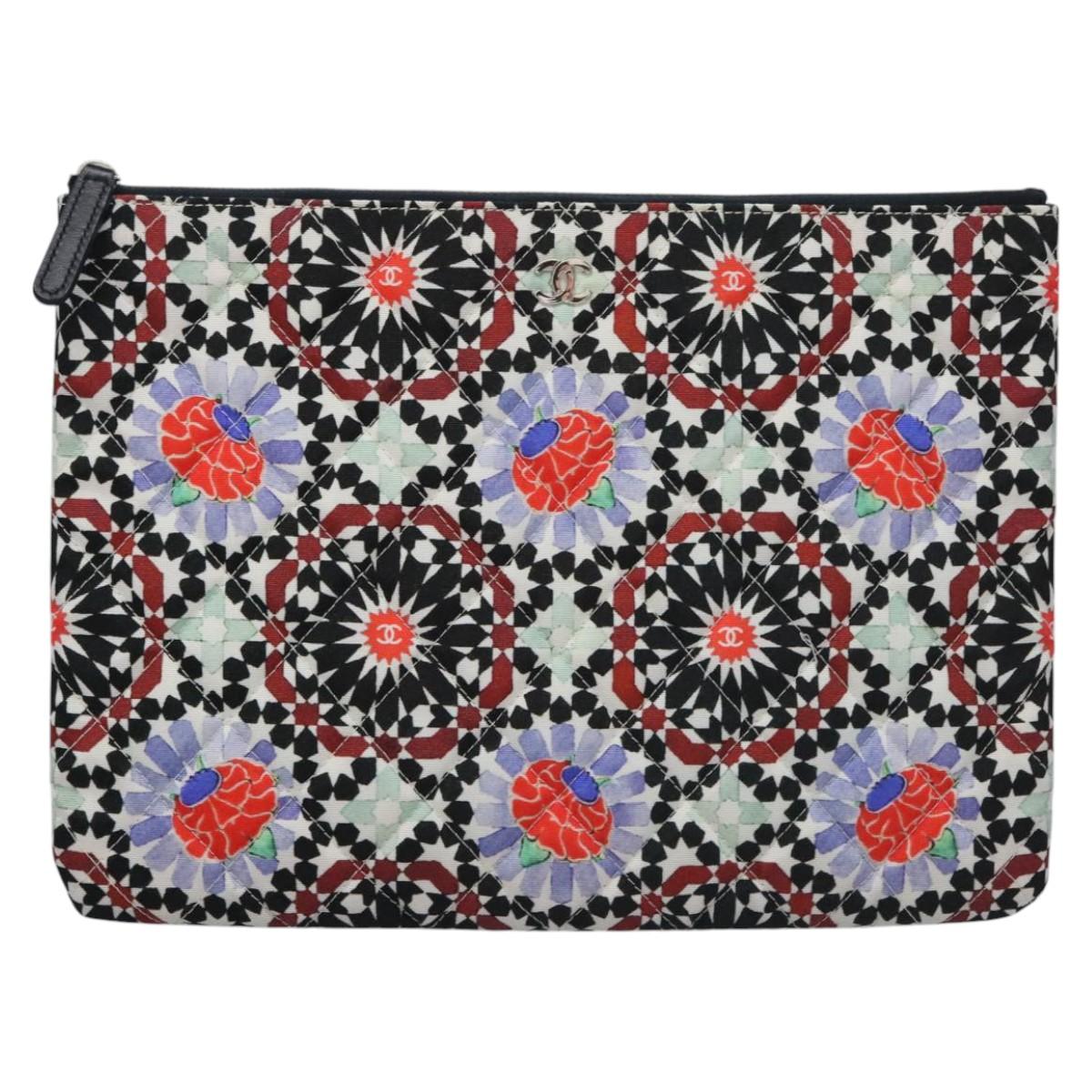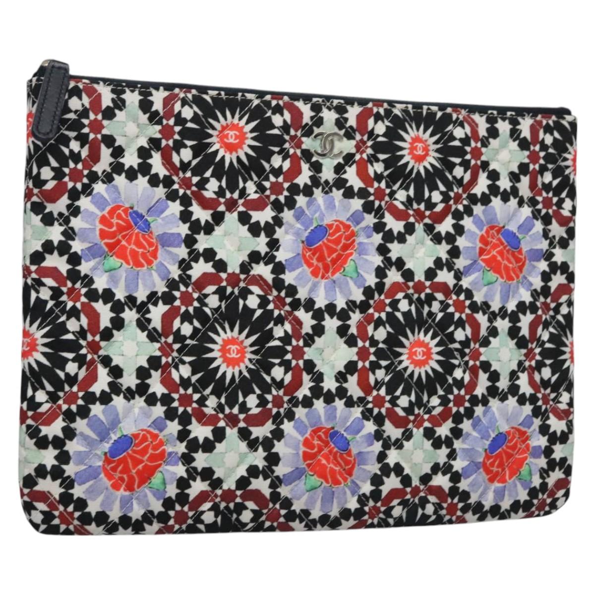 CHANEL Clutch Bag Cotton White CC Auth 113828AV