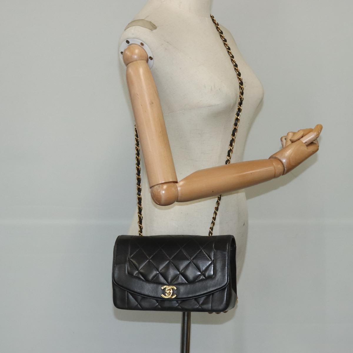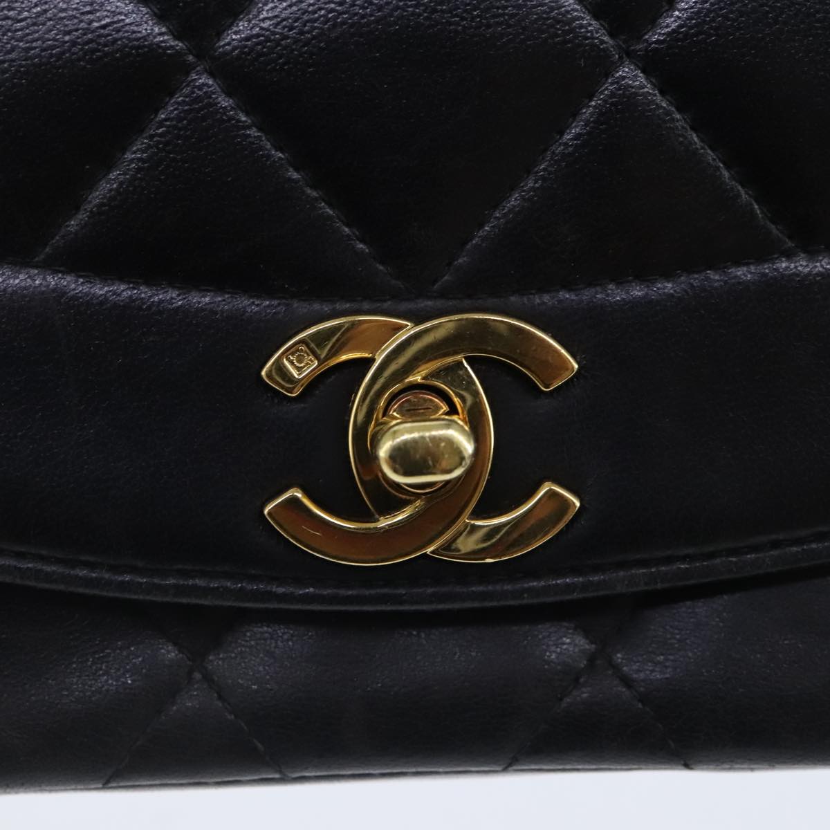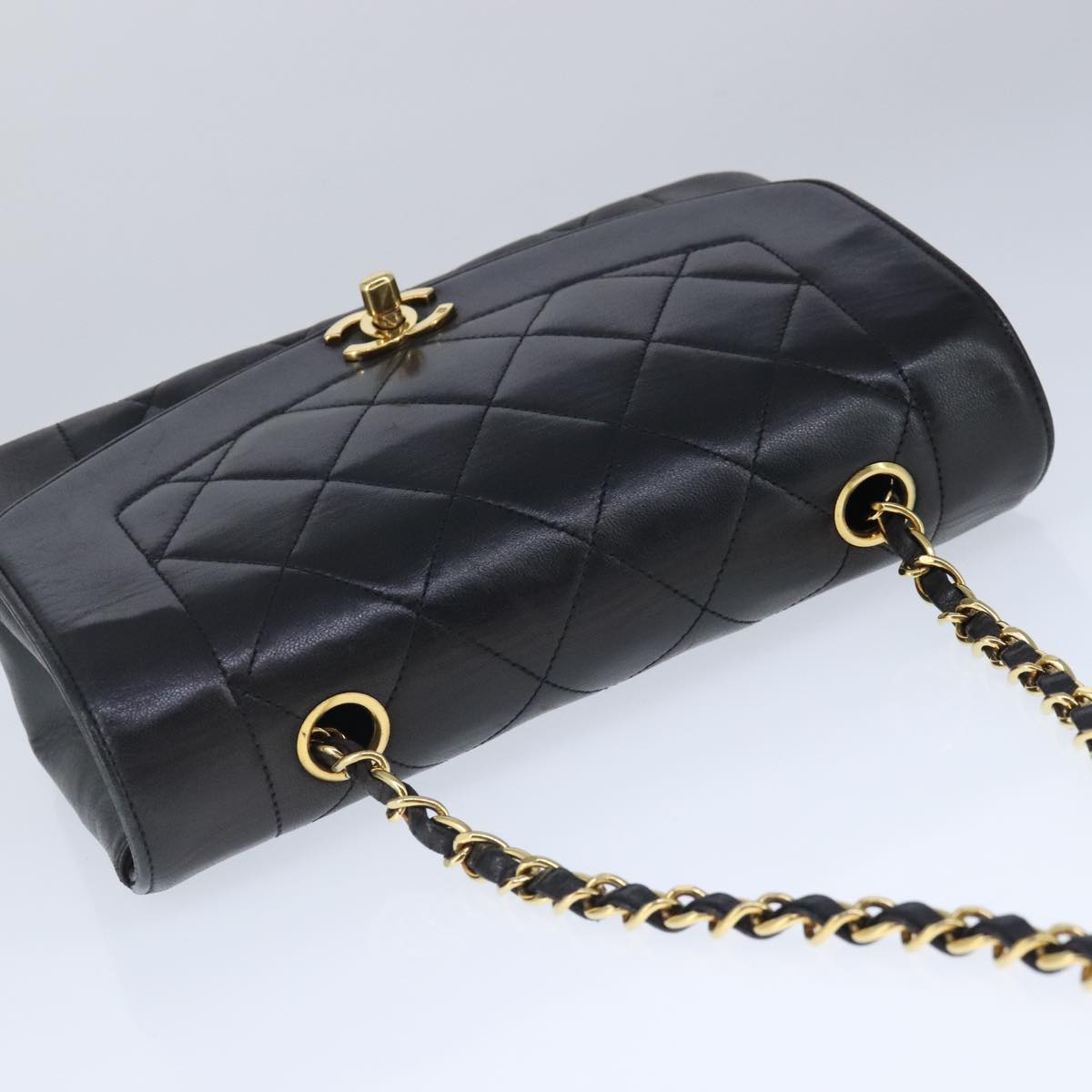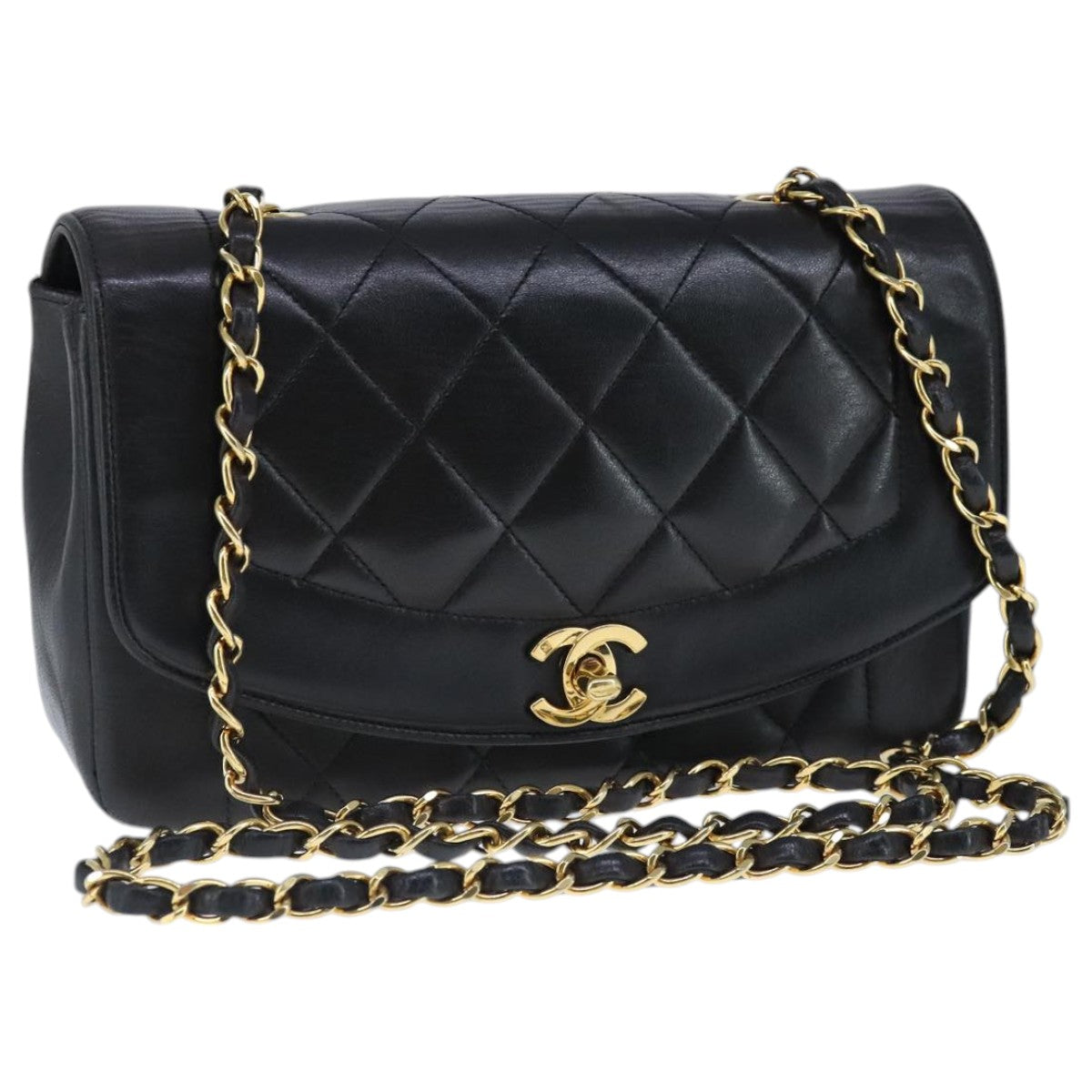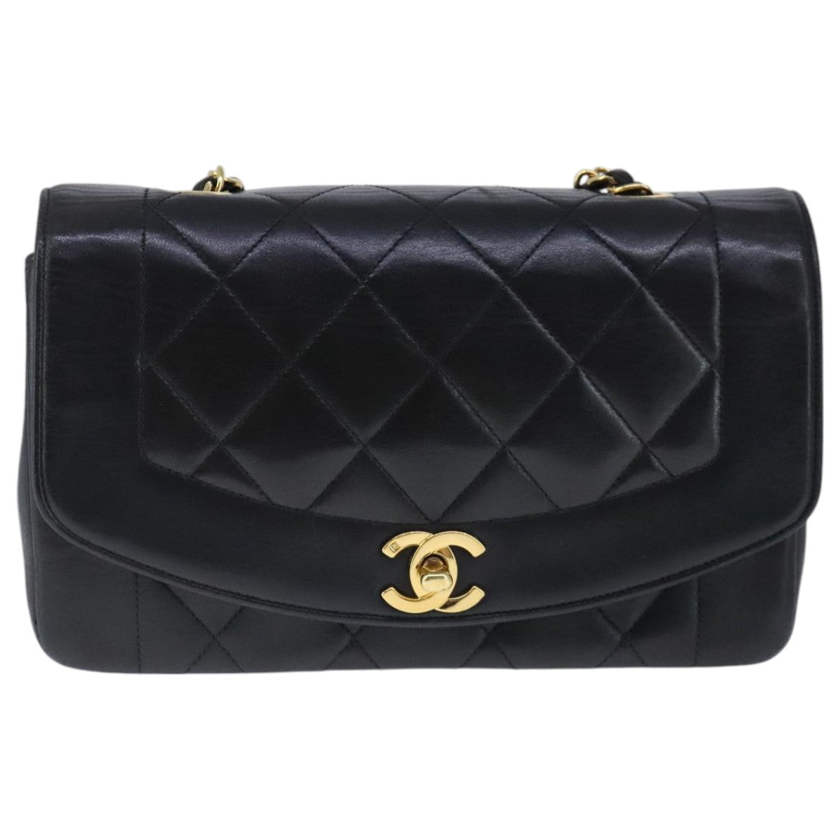 CHANEL Diana 22 Chain Shoulder Bag Lamb Skin Black Gold CC Auth PP029V